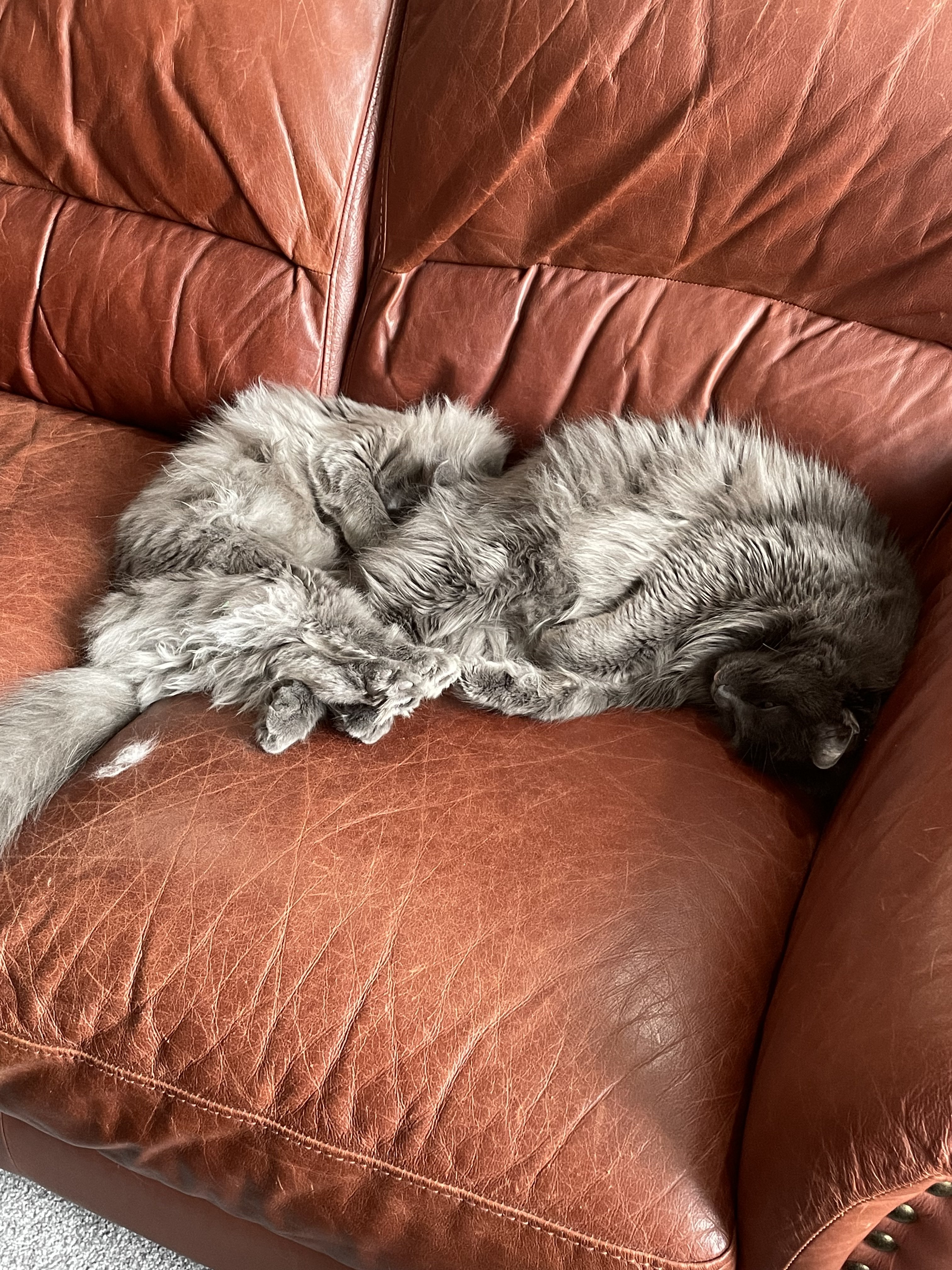 ·I have still been fraternising (not too much) as I seem to be the only one who retained a AAA pass for full belly grooming … and she was getting knotted. It has taken a few days but she is now knot free. I am sticking to the no feeding and no in the 'house', so she still heads back to her new home… we are just visited as the salon now I guess - Old boy remains unimpressed....