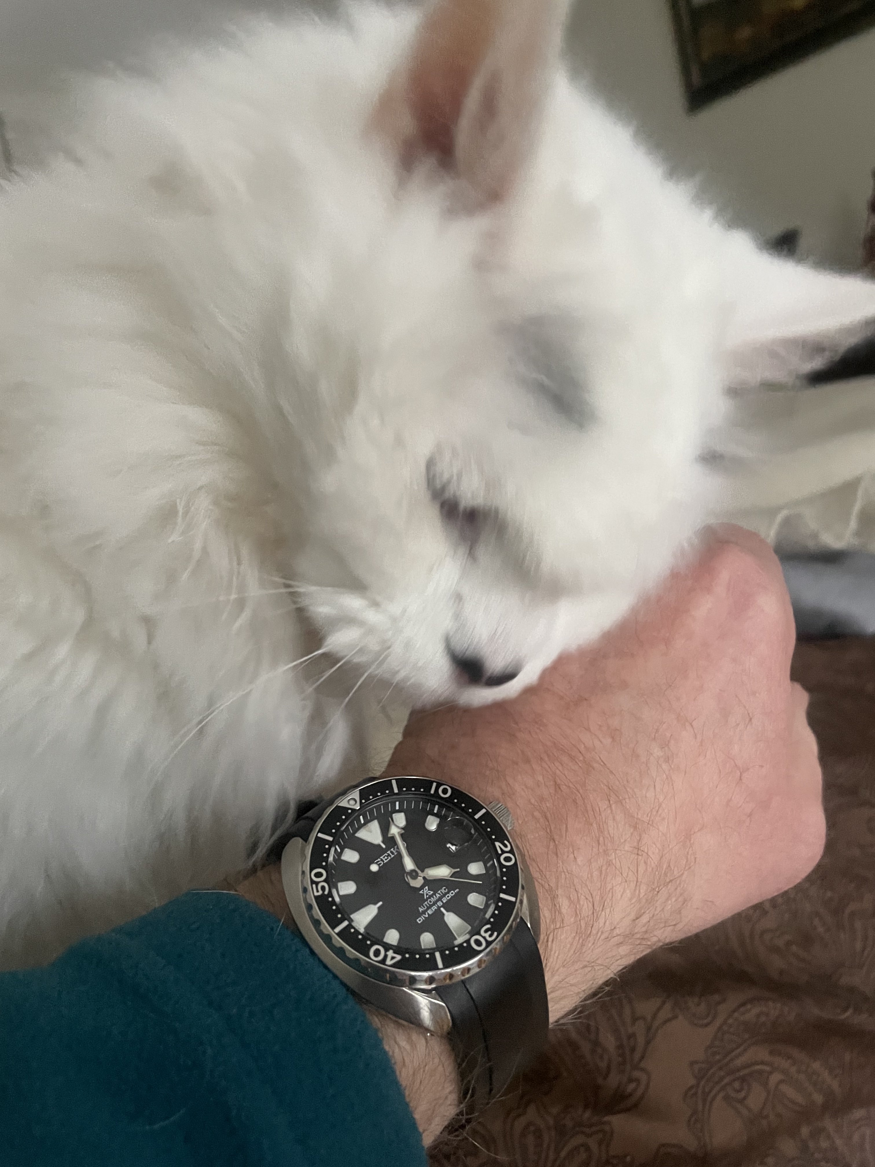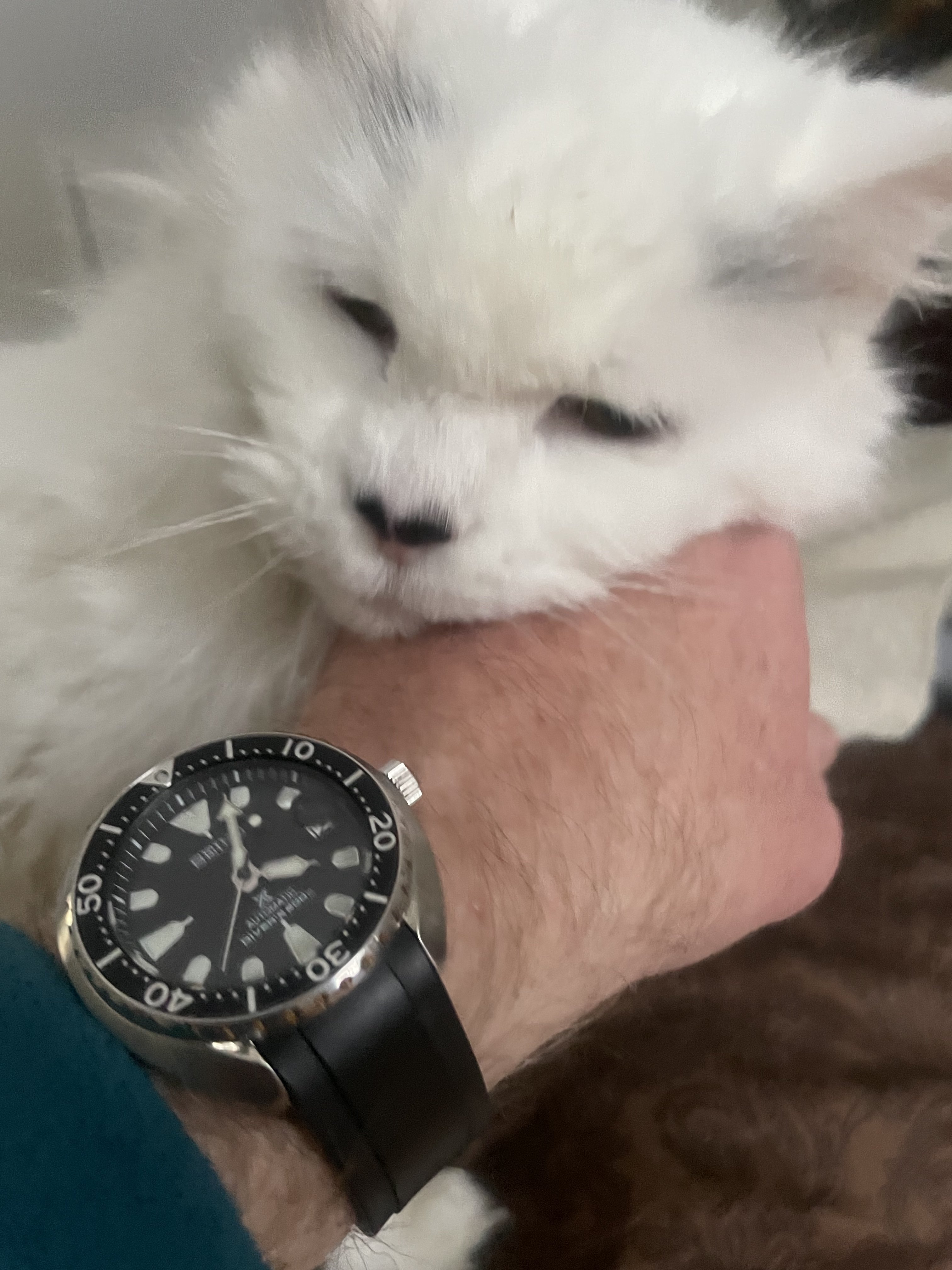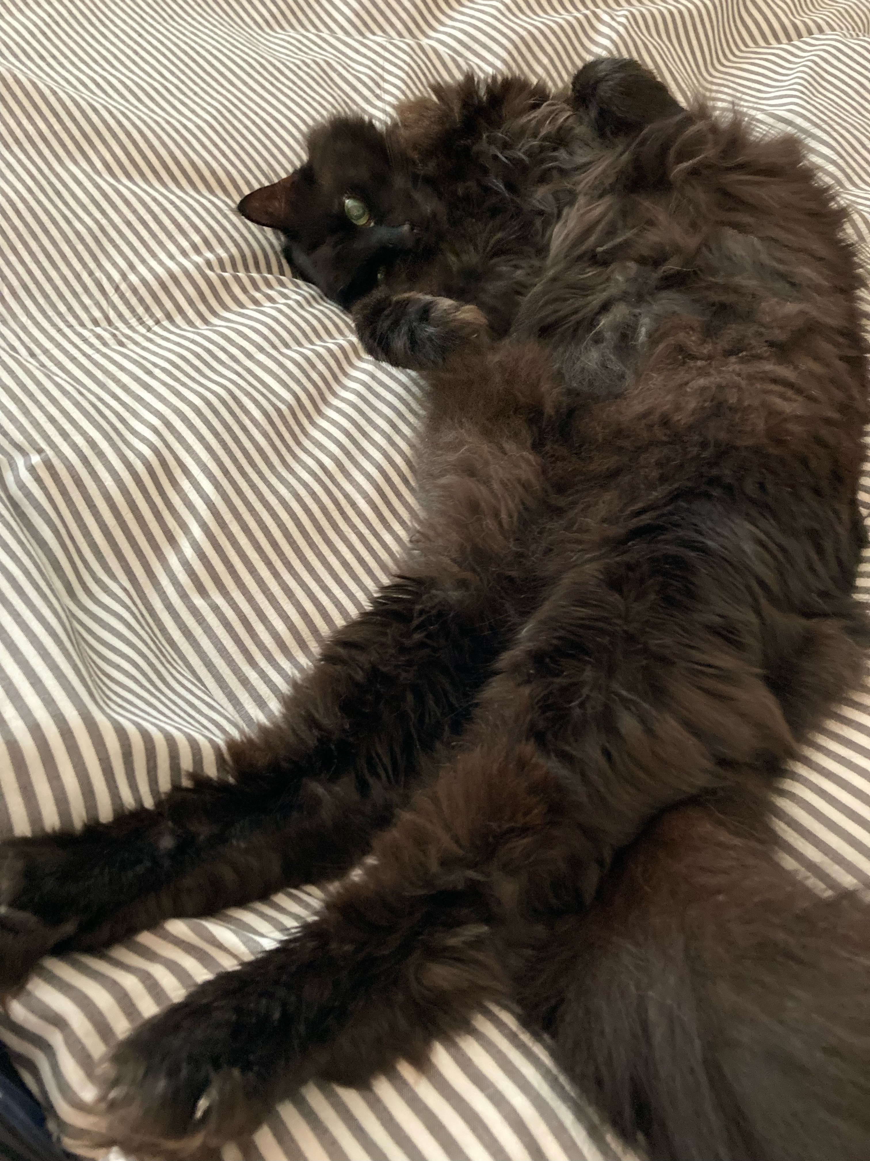 Darn I made coffee before feeding hairy and super I think they were appalled at my behavior they were in such shock they went into statue mode staring at me until I broke loose with the cat food