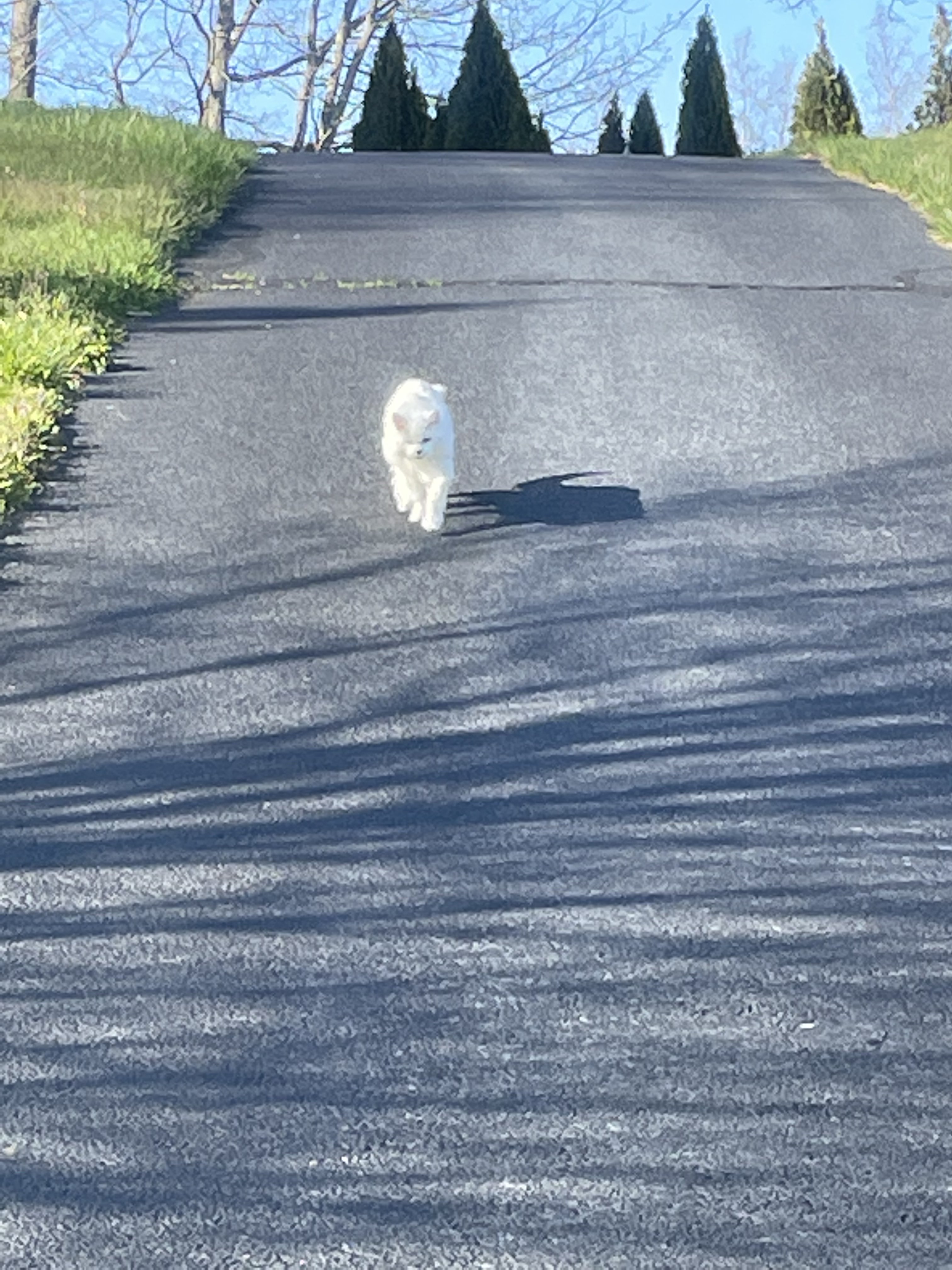 I had some tests done on hairy and got more bad news. So I鈥檓 just going to focus on the now with her. Her days with me might be limited. As for now she still likes to help me take out the garbage and recycle bins and when she sees me at the bottom of the driveway she runs full speed down to help me the races me back to the house.