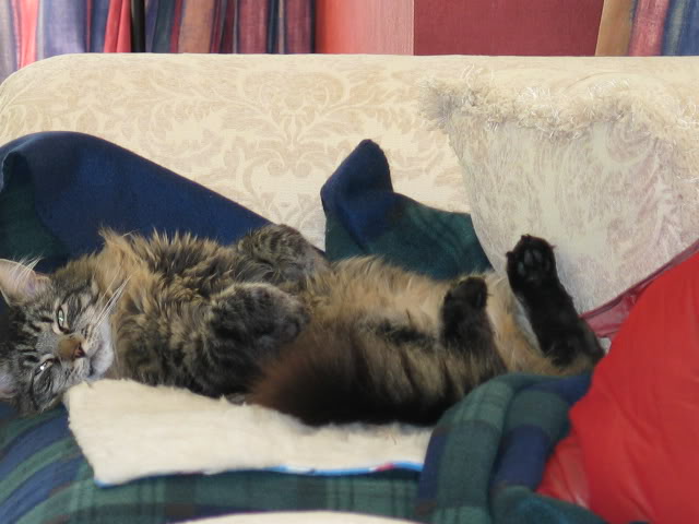 At the beginning of December this one got a diagnosis of terminal kidney failure, and told to prepare to lose her by January. She is almost 15 and we lost her brother to a cancer a year ago. She is still around but has lost about 4 lbs since then....she has her good days ripping around, and others where we are worried that she won't make it to tomorrow. Still seems pretty happy most of the time and is still taking time to go out in the back of the house to get the odd mouse....