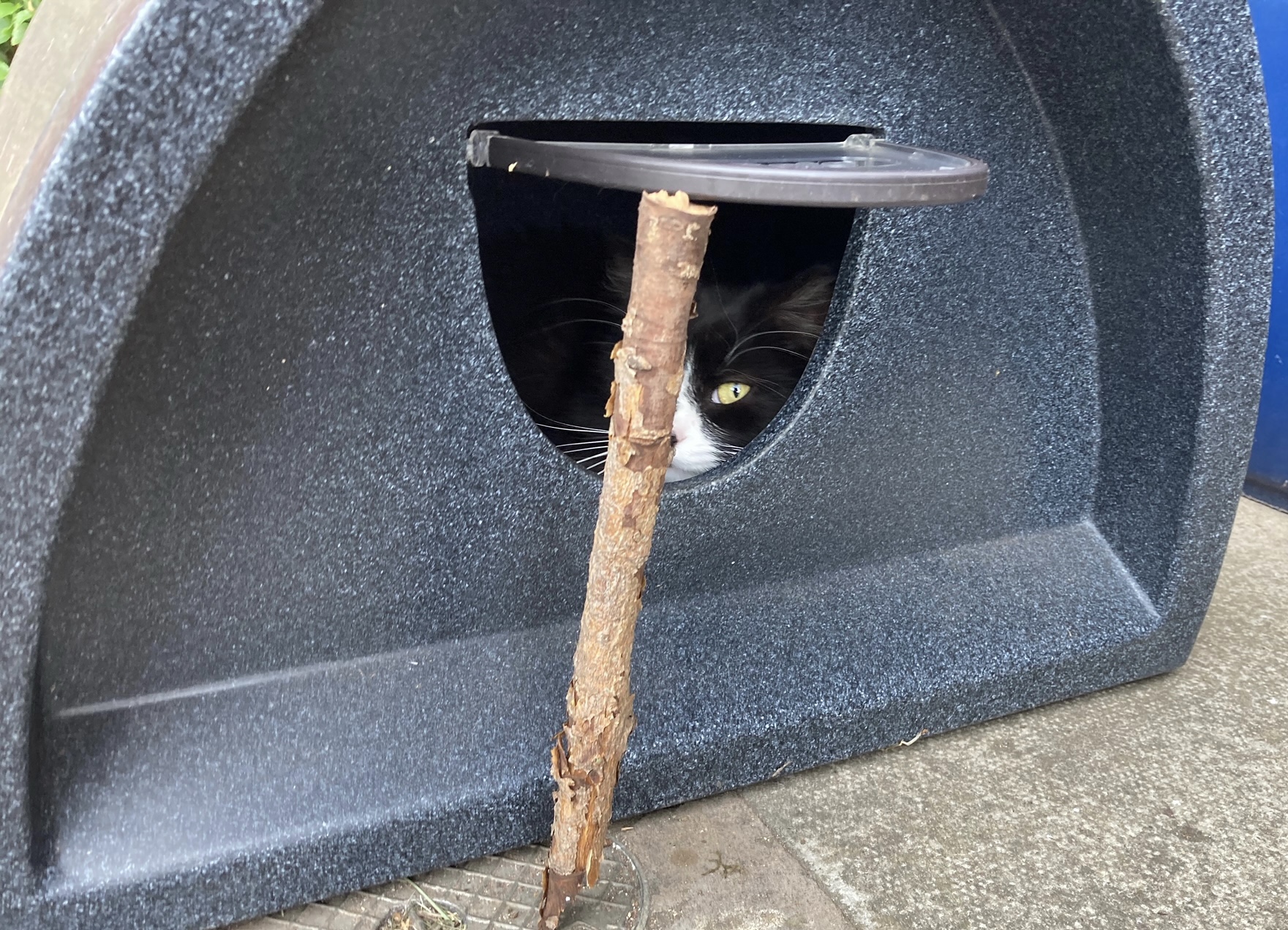 She spends all the daylight hours outside, winter and summer, only coming inside late at night when everyone else but me has gone to bed to sit next to me, purring away like she is a normal cat, which she definitely is not lol
