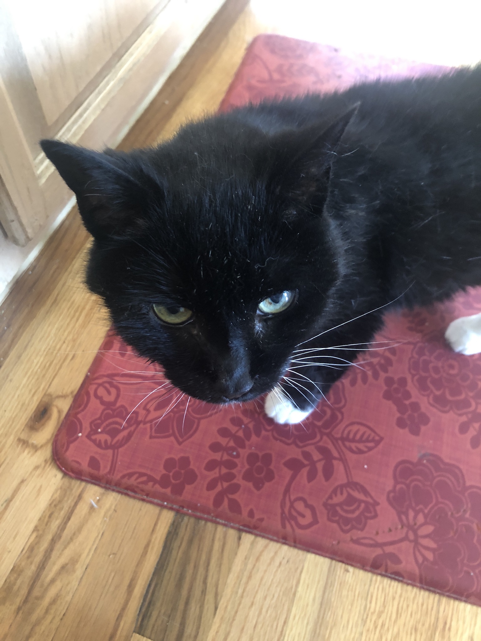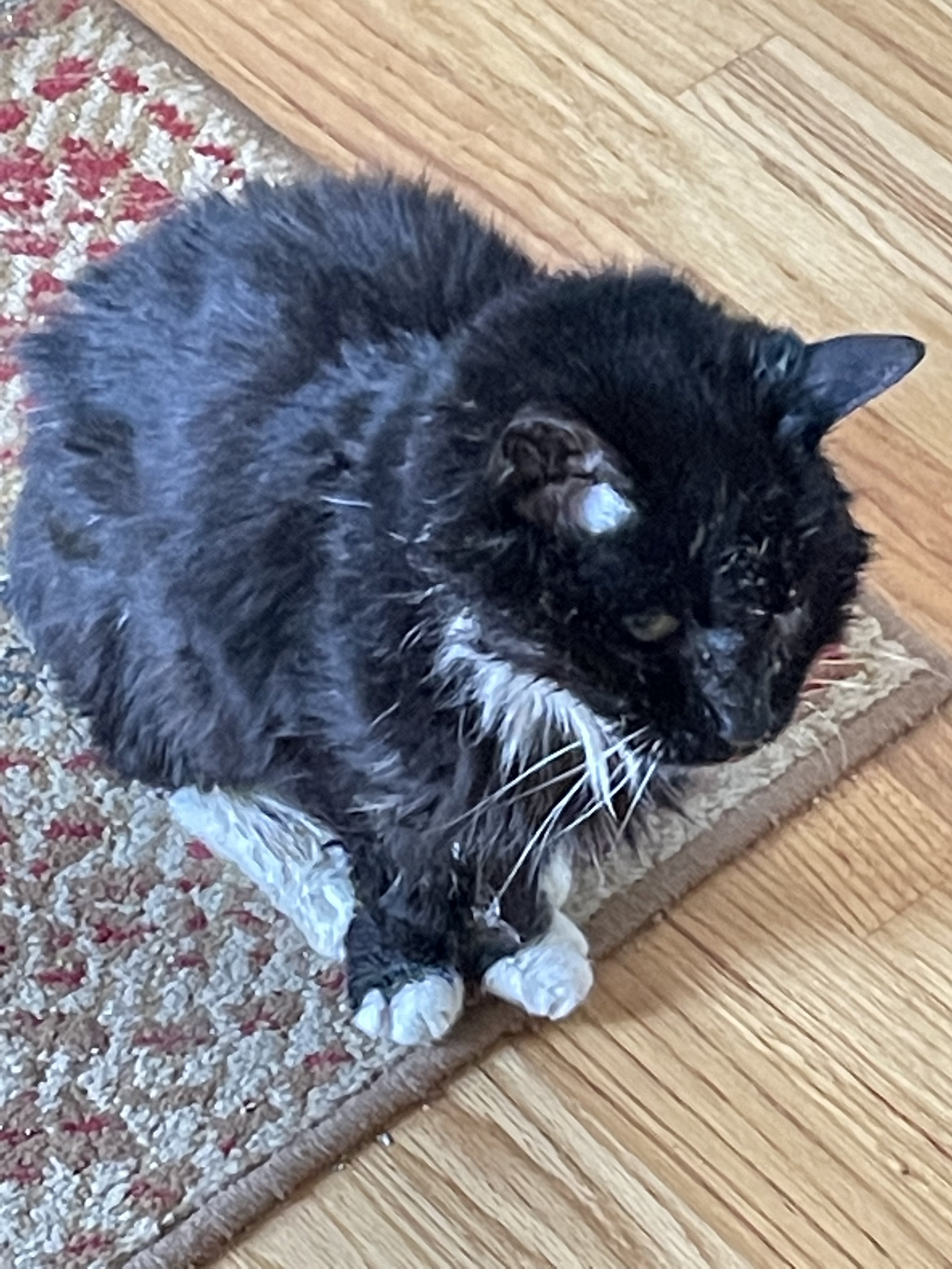 I was not going to post anymore pics of sooper. For two days she wasn’t moving much or eating. I got home yesterday and my heart skipped a few beats when she wasn’t laying under the kitchen table which is were she has spent the last two days. She had an appointment to be put down. I began looking around for her but she popped up behind me and meowed for food. Brought her to the vet and he sent her home with antibiotics. I’m bringing her back Monday so we aren’t in the clear but sooper now hit 25 years old and I just finished giving her meds and food