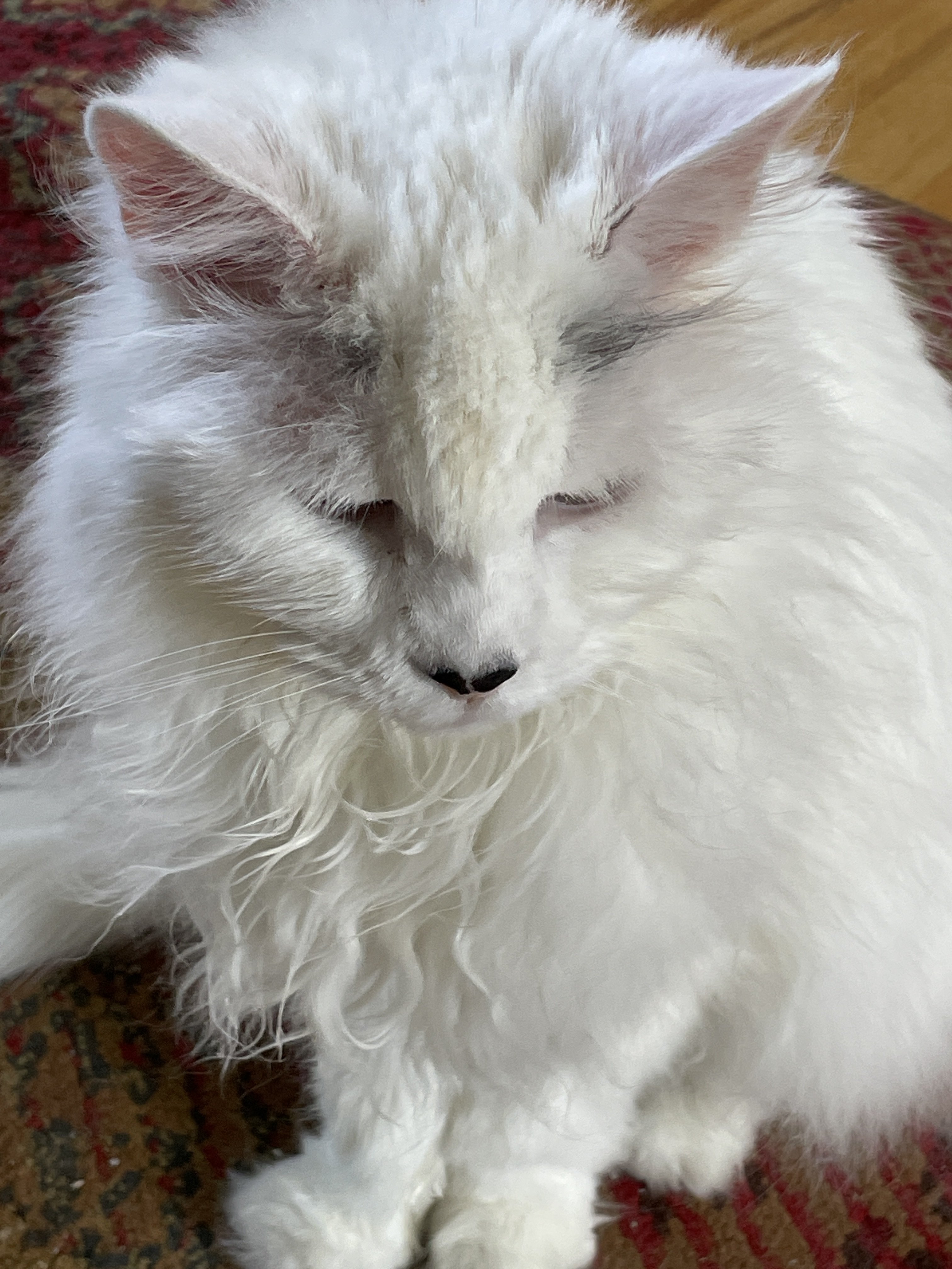 ··Color Commentator for the Hyperbole.Seizure muppet hairy has me working overtime. For two days she wouldn’t eat or move. I’m trying to manage her seizures and I got a little freaked cause she was acting quite similar to super right before her end. Anyway I’m pretty sure hairy dope fiended me and as now only accepting human food. Even her favorite treats are now unacceptable and she will only eat tuna. Notice the three treats she is ignoring. Hairy has me figured out to a T yet she remains a mystery to me. I’m beginning to think she had a tumble down the stairs as she was in a lot of pain and she was born with legs that pop out of joint. She is ok now But will be seeing the vet Friday. Weird past month for many reasons. Hairy is a very expensive princess cat right now but adapted to the rather sudden onset of seizure D/O much better than I would have.