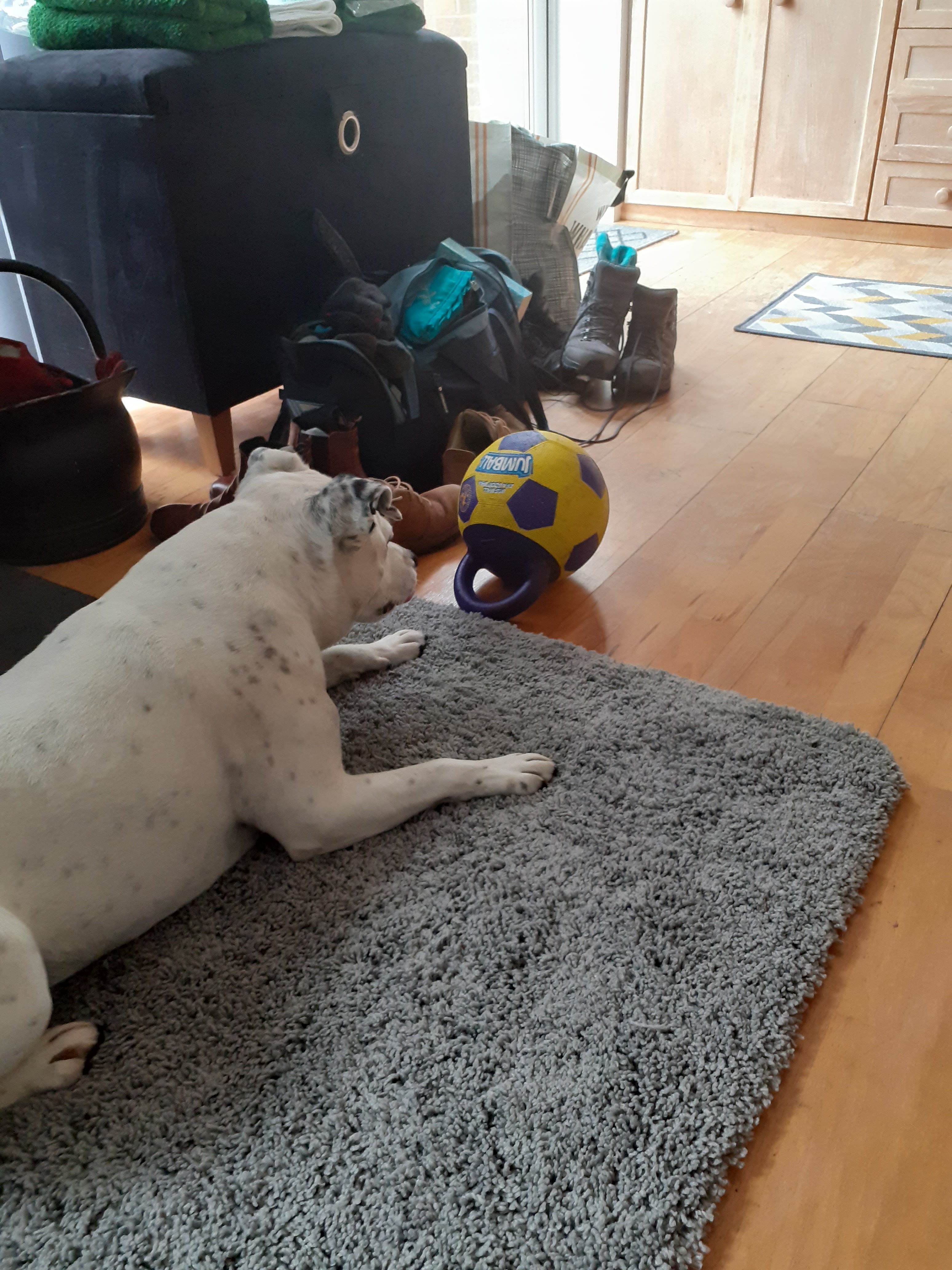 Anyway I was thinking of cute pups and (hope you don’t mind) I sent her a picture of yours. Of course she said “what a cute puppy” but then dared add “the dogs head is shaped like an egg.” I could not stand for such an insult and told her “your head is shaped like a watermelon.” (It isn’t she is actually rather attractive) but I will not stand for such blatant insults to your doggo. Your welcome.