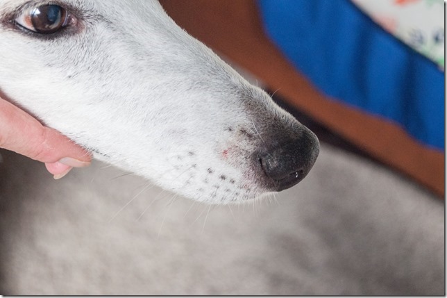 So...dogs had a bit of a dust up over a toy...Remi is the Alpha dog, but Maeve can still inflict some damage...puncture on his snout...