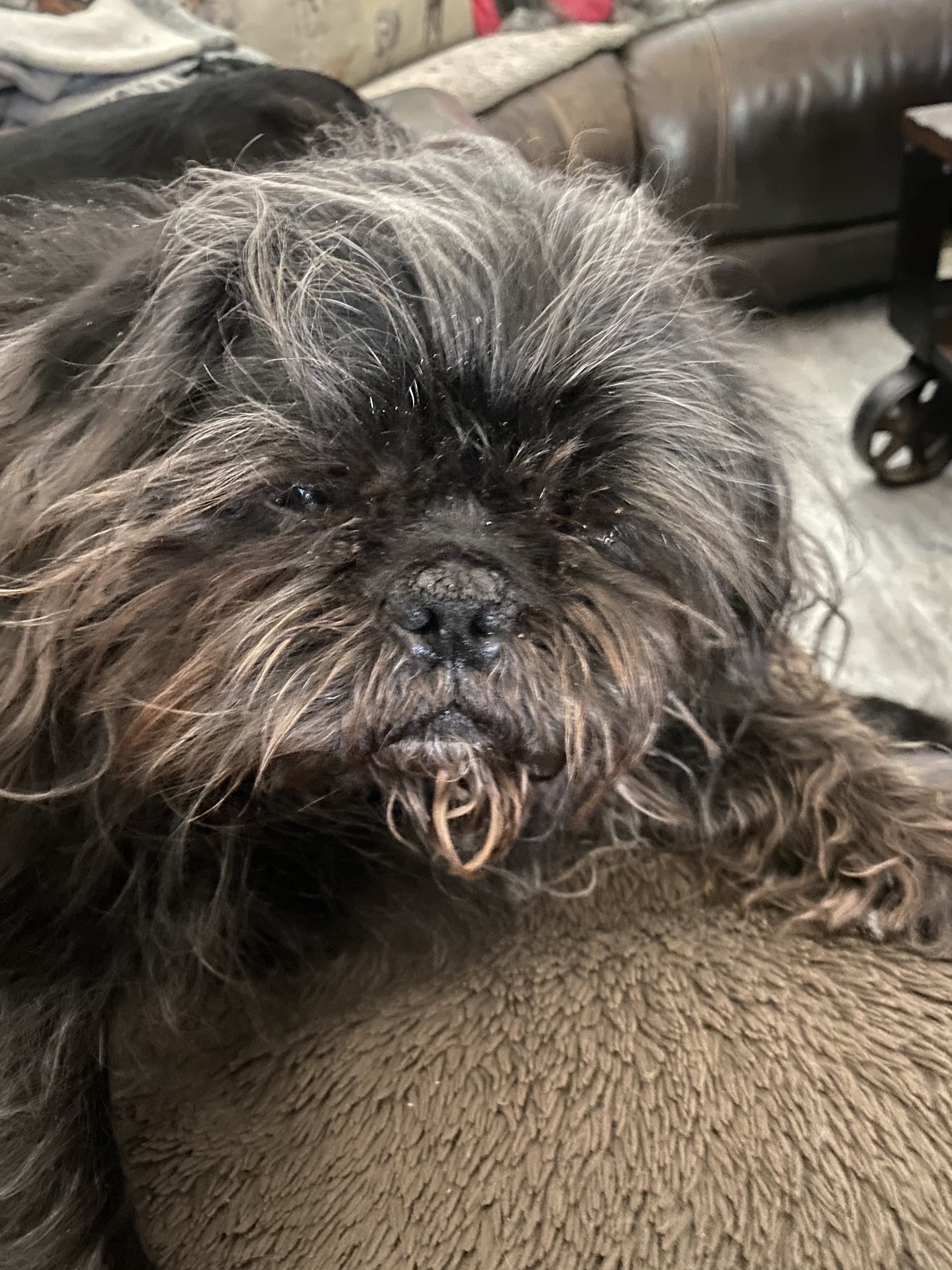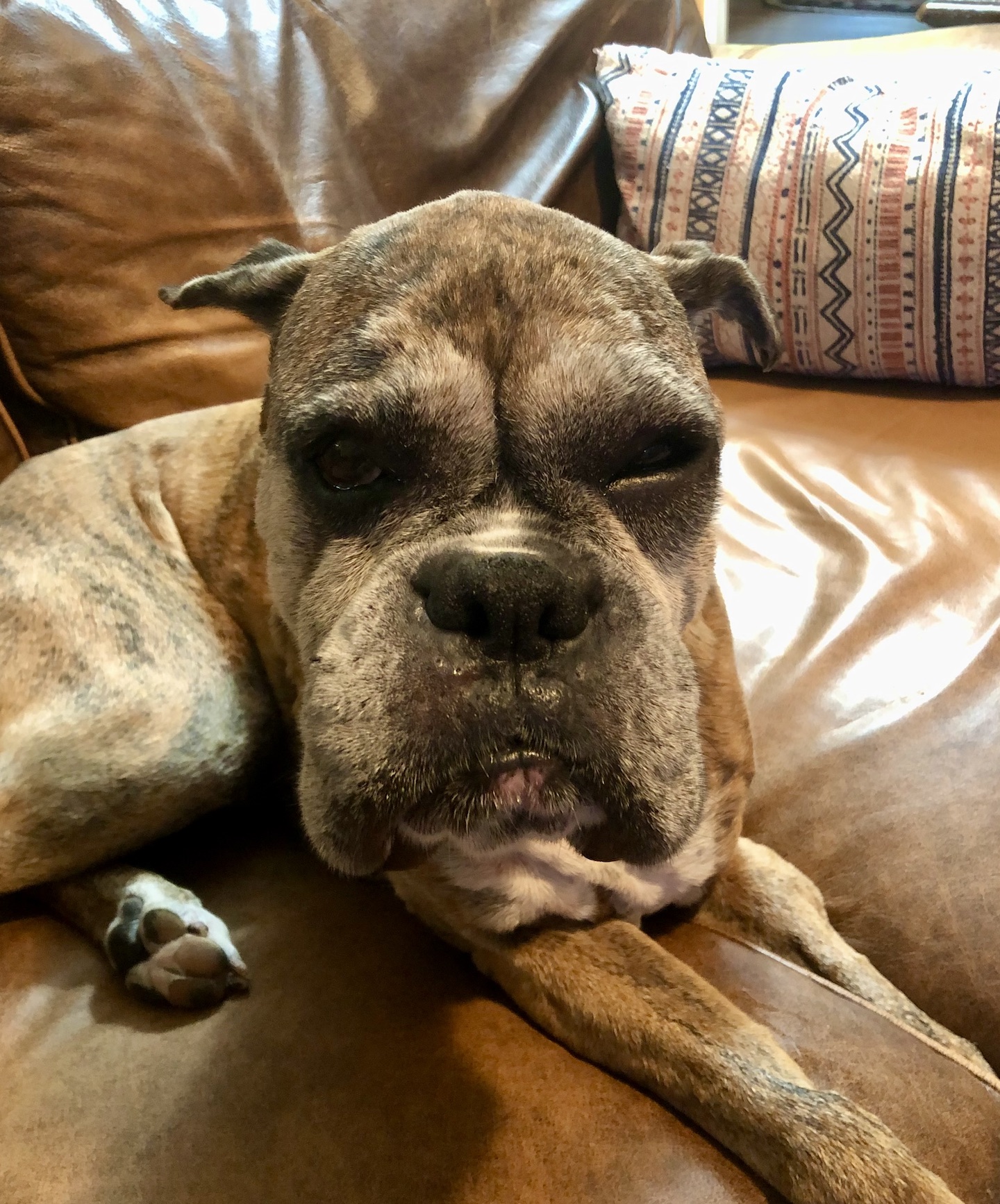 Poor Zelda had a tough day. At about 7am, she broke out in huge hives and her face swelled up incredibly, especially her lips and jowls. However, she was in good spirits and ate well, so I figured it was just a dramatic reaction to a bee sting or bug bite, and gave her some Benadryl. After a couple of hours it seemed to be getting better.