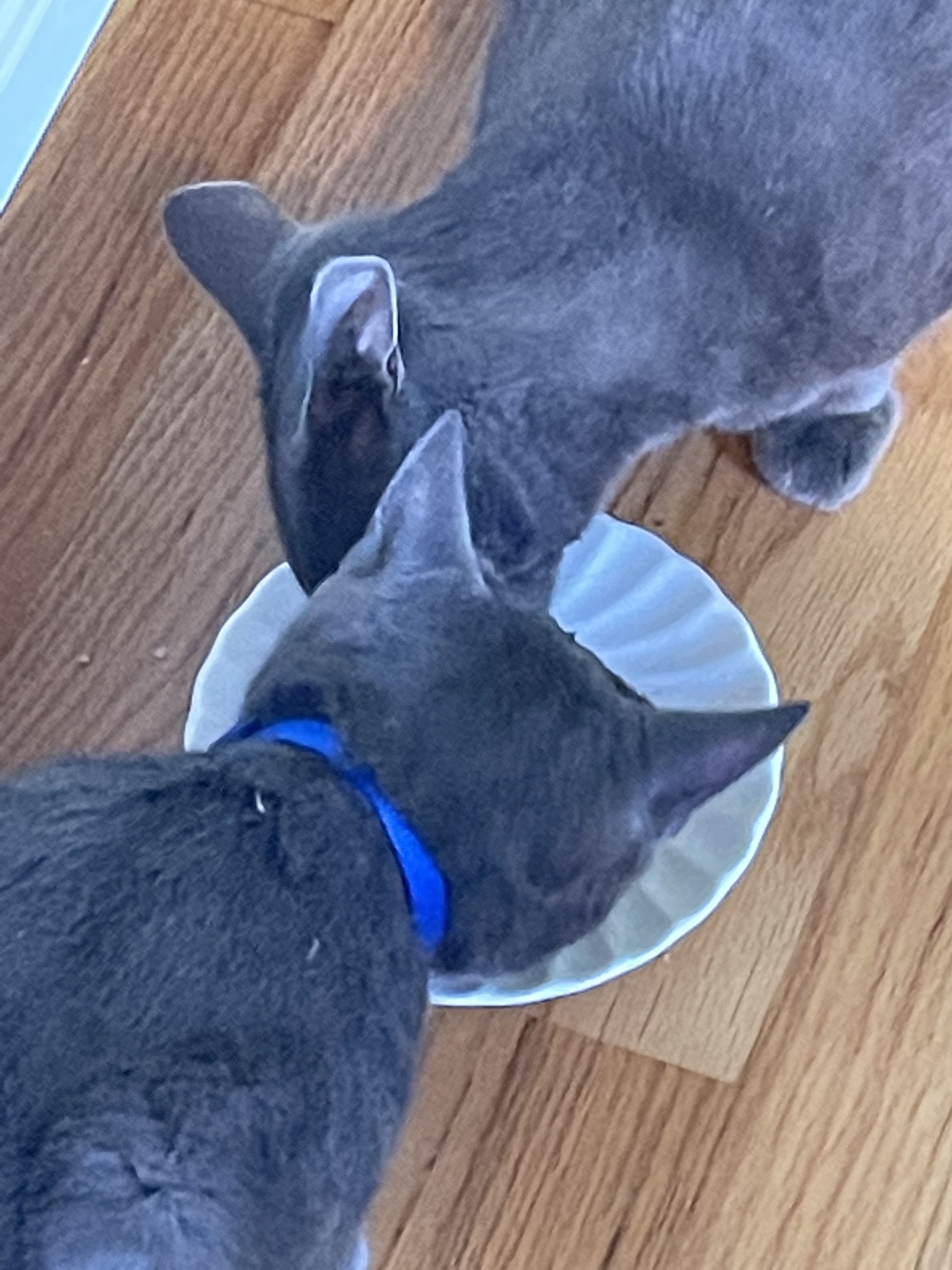 Omegafanster I was looking at your brushing thread I’m im quite surprised how little these guys shed. I brushed them two days after they arrived and they liked it but after sooper and hairy who filled the brush these guys hardly shed. Now they could be Russian blue or another one @Duracuir1 duracuir fine leather goods suggested they resemble but I do not think they are purebred the only way to prove that are DNA and papers anyway but they meet many of the characteristics listed. I don’t know if light shedding is another or perhaps it’s just their kitten coats.