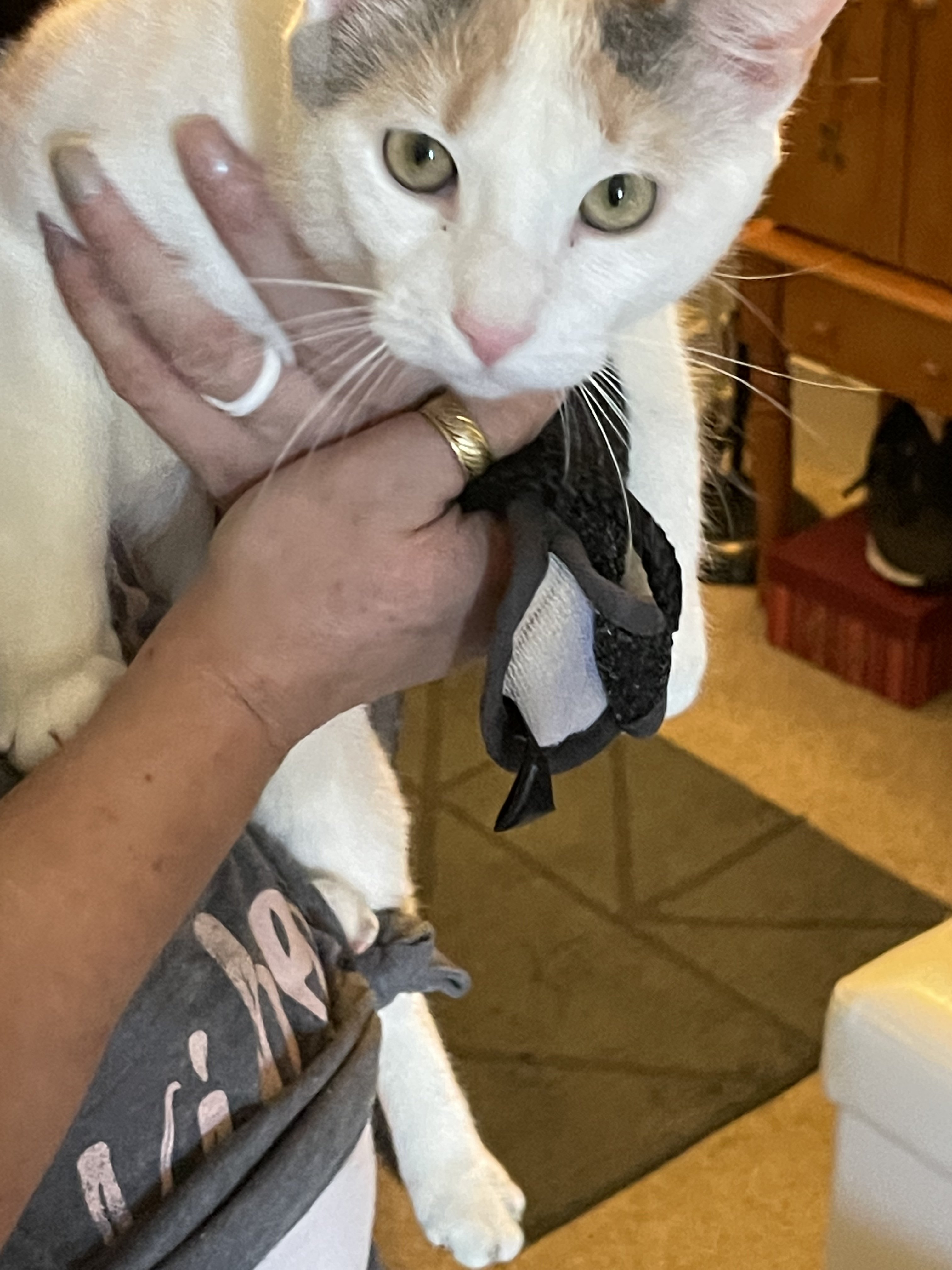 Assuming the bell was in good shape it appears to have taken a pretty good beating. In all the years of having bells on all our cats never have I seen that. The bell almost appears to have been wedged in something and forcibly removed and/or compressed by something pretty significant. Is his collar loose enough to slip over his head should the bell become wedged? The clasp does not appear to be a quick release safety clasp.
