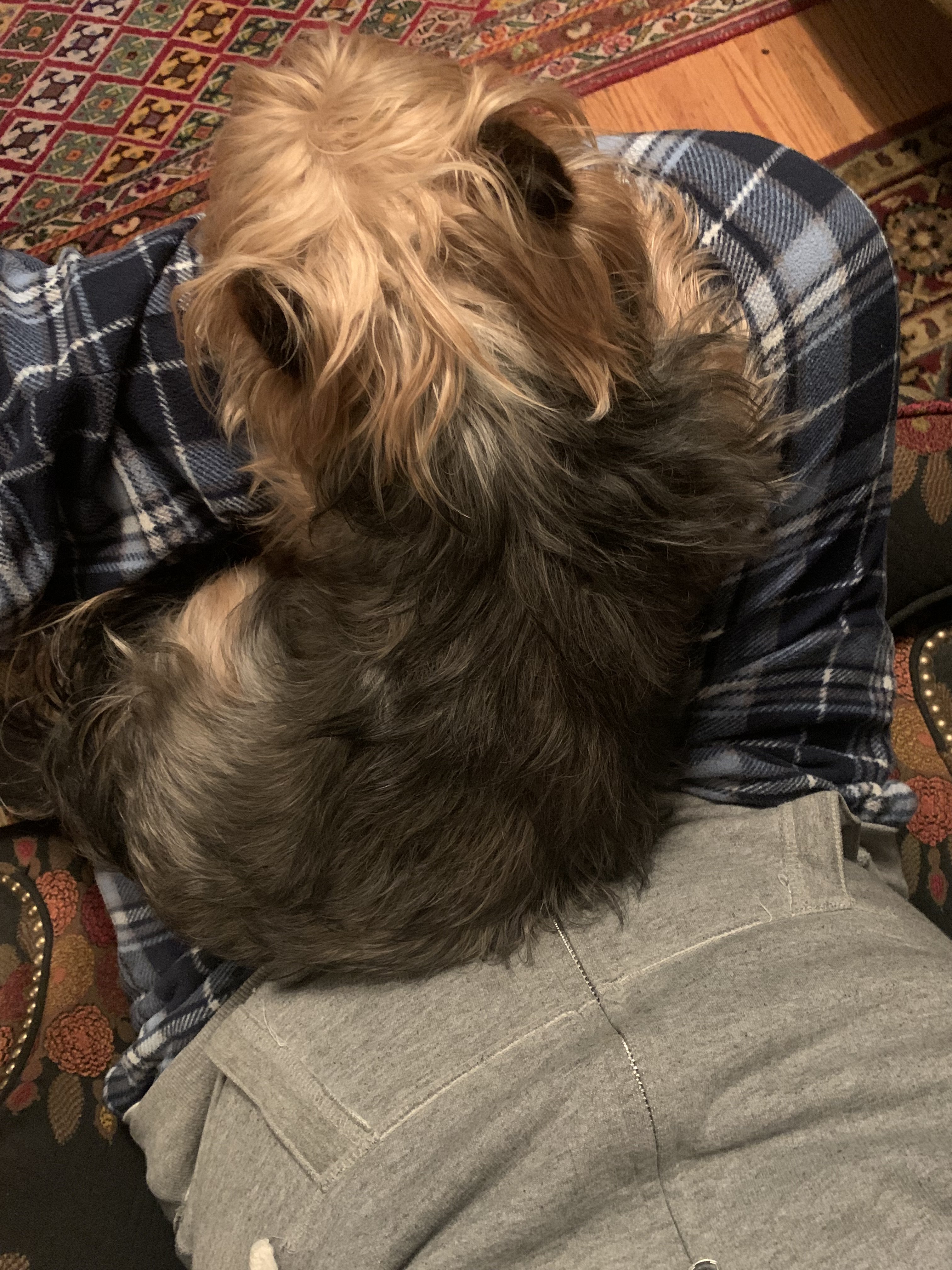So, for the moment, his overall health seems to improve. Which I really hope it does as I have been sleeping in the couch next to him for the last month, waking up 3/4 times per night to calm him down and clean him when he starts bleeding.
