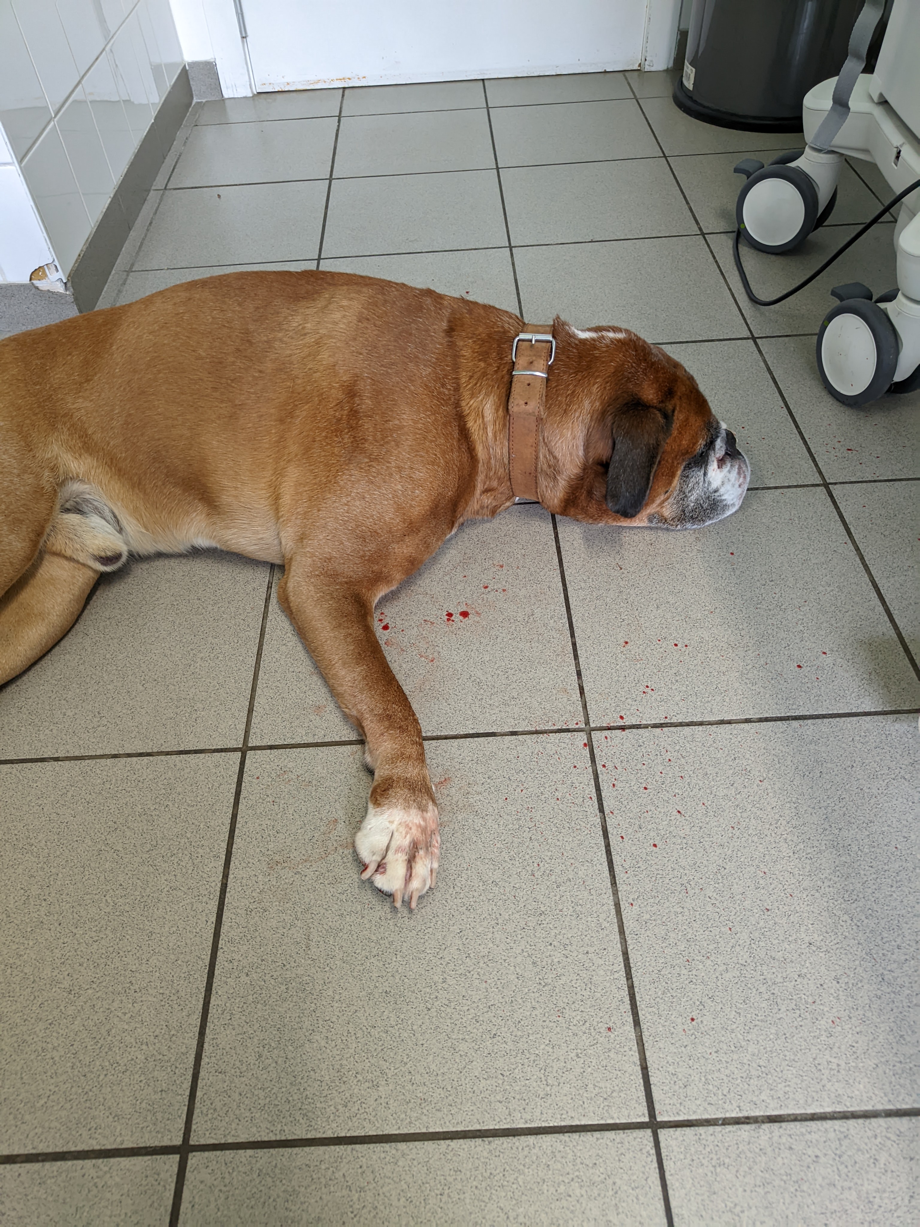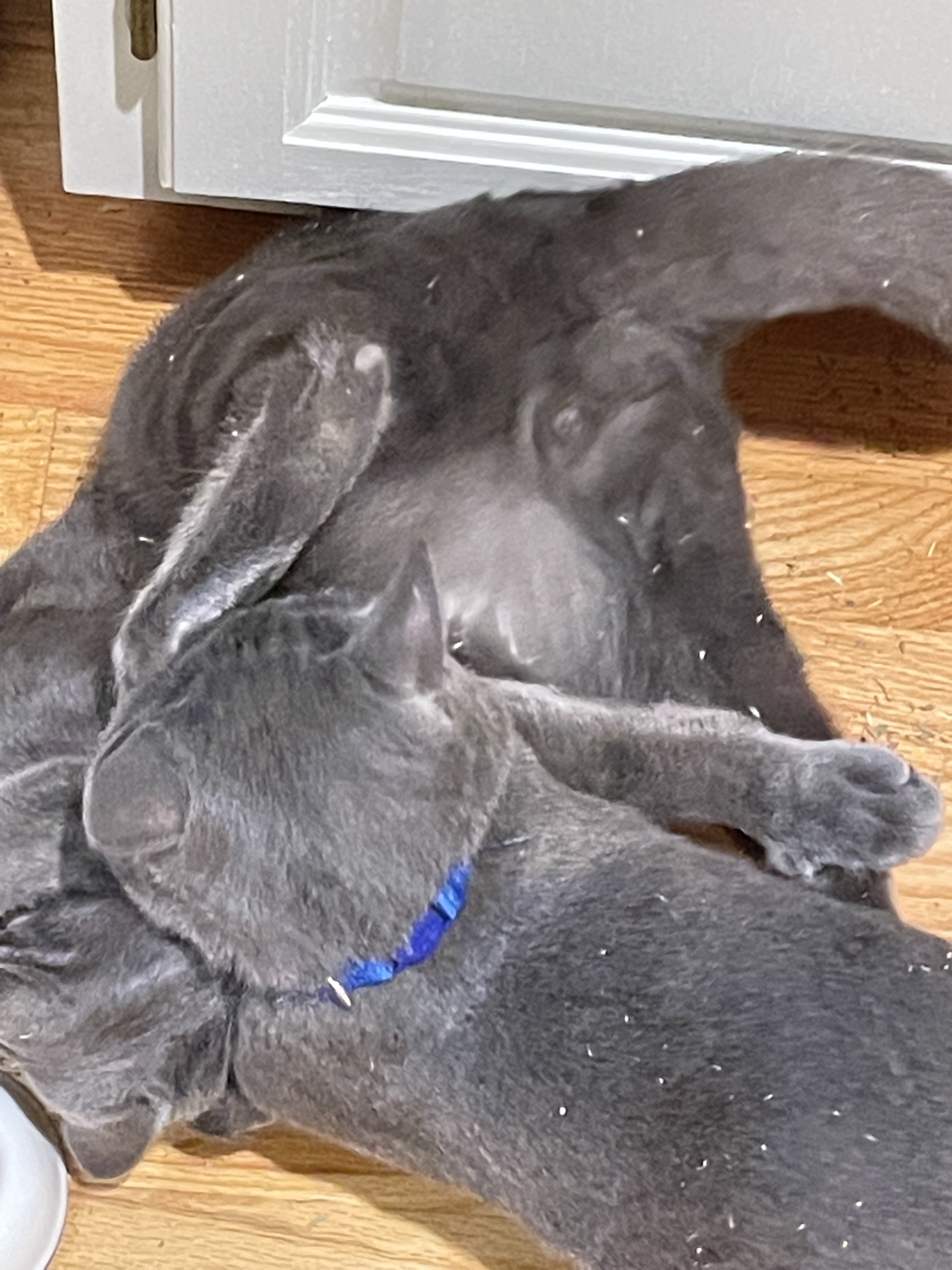 wife was at class and I was watching TV with the pups (I’ve been on the couch sick all week). I got up to take a phone call from my brother and when I came back, the cookies were gone and Murphy was nowhere to be found.