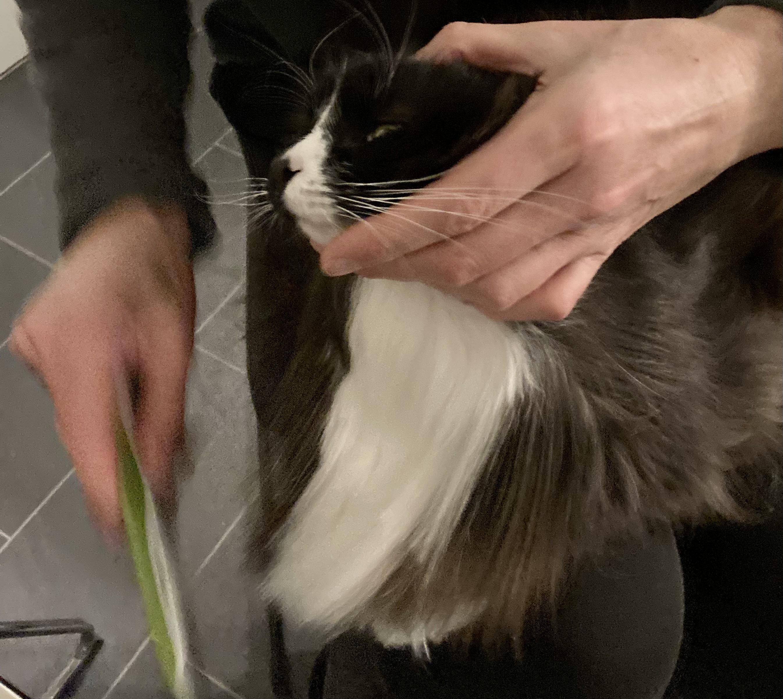 Unfortunately, we learned recently that Zelda is nearing the end (X-rays showed a large abdominal mass and metastases in her lungs), but she is still having good days thanks to the miracle of prednisone. We are giving her lots of attention and love, and Mrs. S is even letting her sleep in our bed! 😲