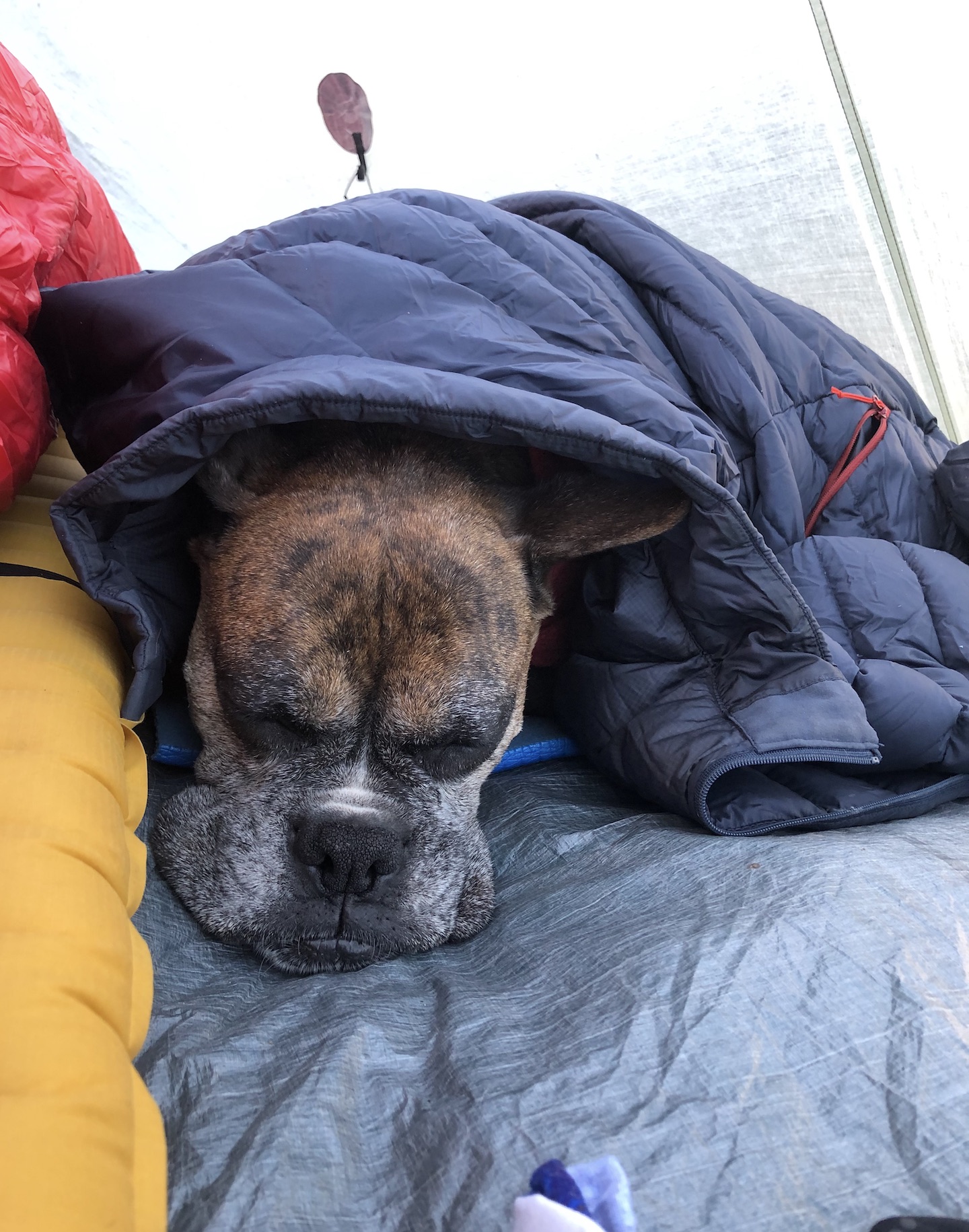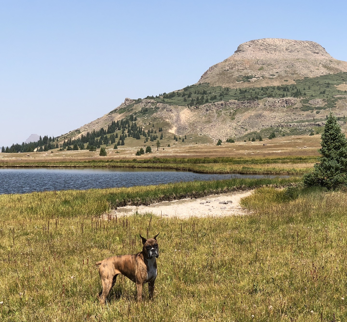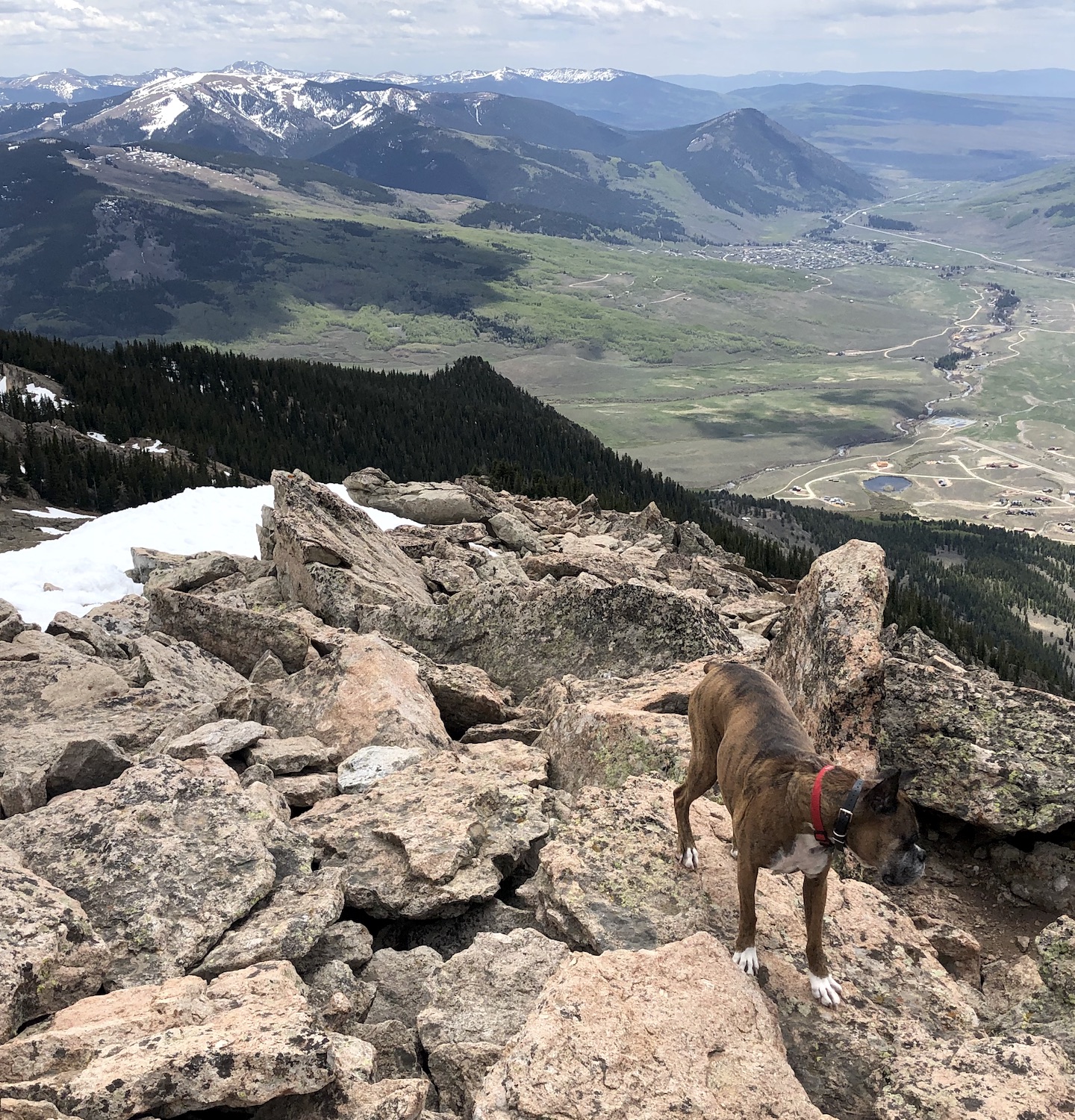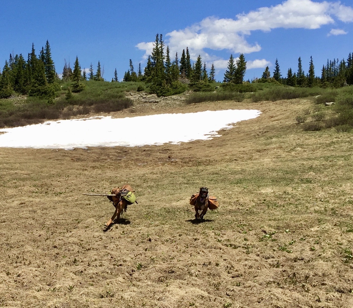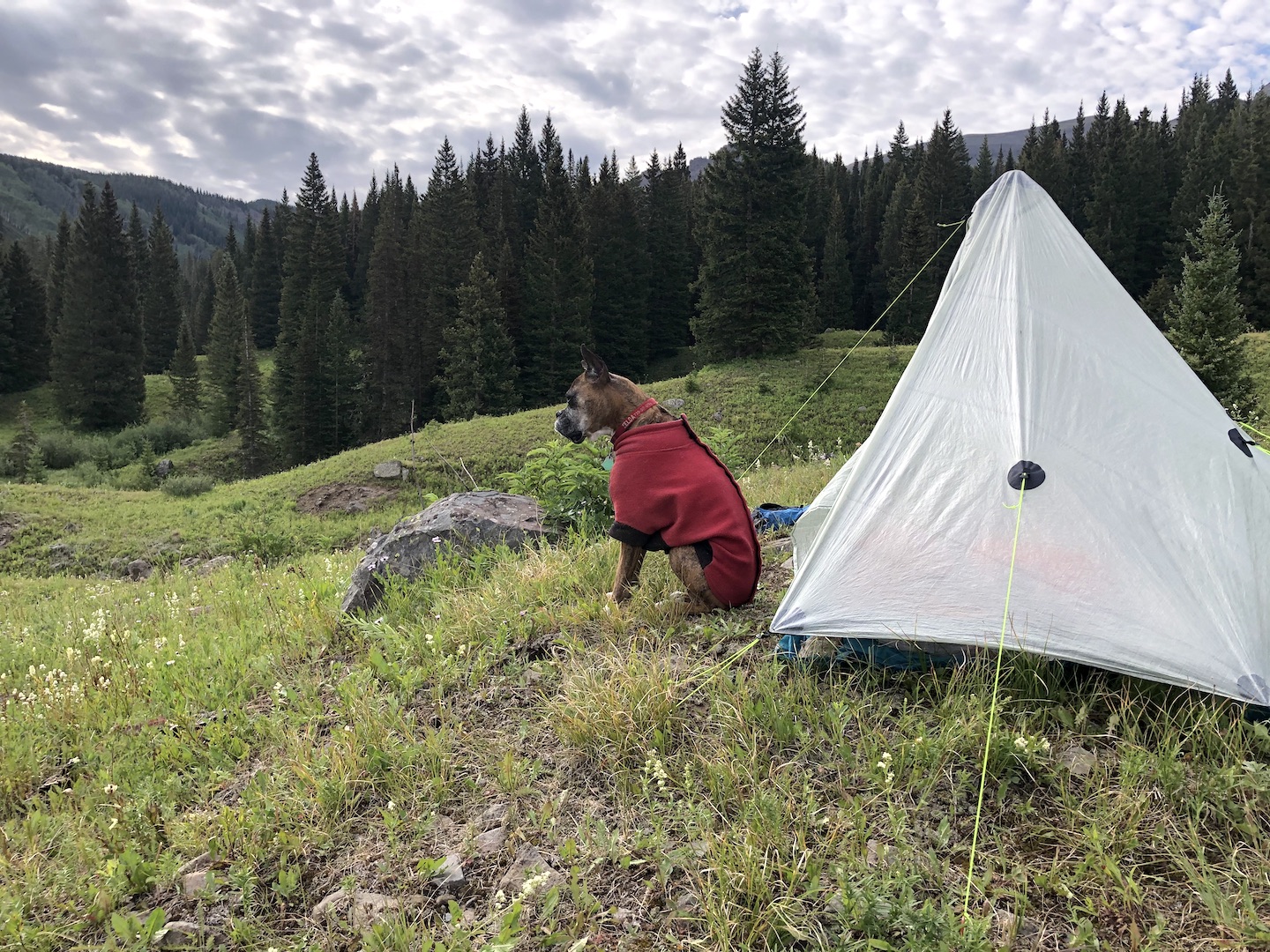 Zelda had an adventurous spirit and lived life with enthusiasm. She had an infectious personality and often made strangers smile with her eye contact and her goofy "jumpies" on our walks around the neighborhood. We traveled thousands of miles together, including hundreds of nights in the Colorado mountains, where she summited peaks, scrambled over boulder fields, forged swollen creeks, bushwhacked through dense forests, and plowed through deep snow. Zelda was our "try-hard" dog, and would not be stopped by any obstacle. She was athletic and agile, but sometimes a bit reckless, resulting in some memorable events, including a double "cut by ski" incident on Christmas Day 2019. I will never forget a heart-stopping moment when she tumbled down a 40-foot cliff, landing hard on a narrow ledge above a sheer 500-foot drop. True to her breed, she was fearless, with a strong prey-drive, and was always on the lookout for wildlife. On a few occasions, these interactions did not go in her favor, most notably with a porcupine, a rattlesnake, a skunk, and a grumpy bull moose. A few years ago, she successfully chased down a mouse on a high alpine ridge, swallowed it whole, and promptly fainted - causing her to keel over and slide down the tundra, fortunately coming to a stop before she reached the edge of a cliff. Terrifying at the time, but funny in retrospect.