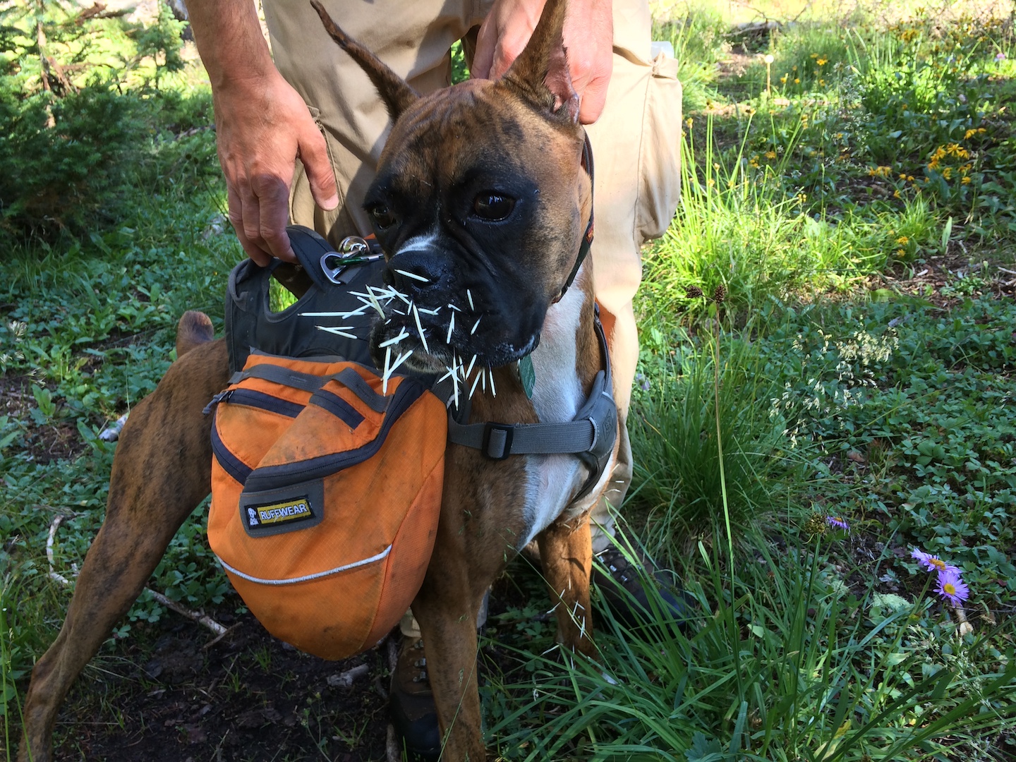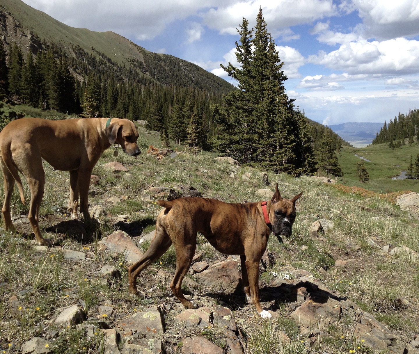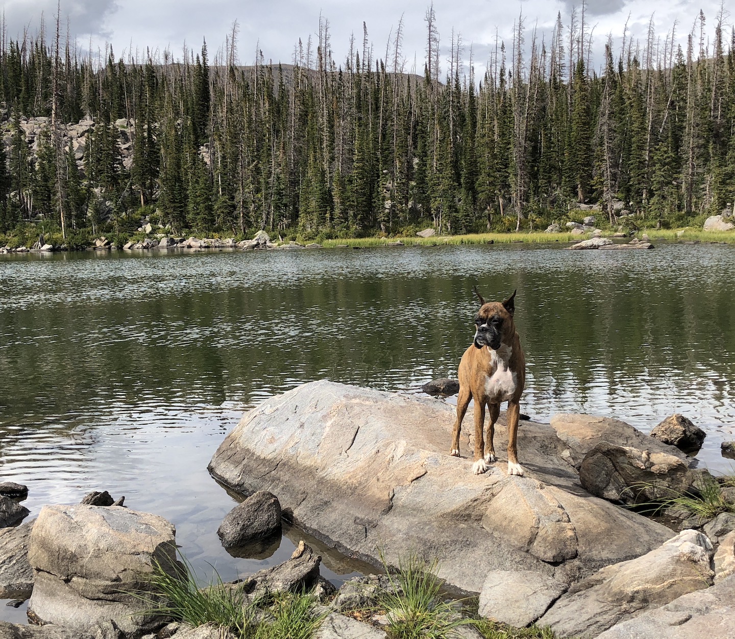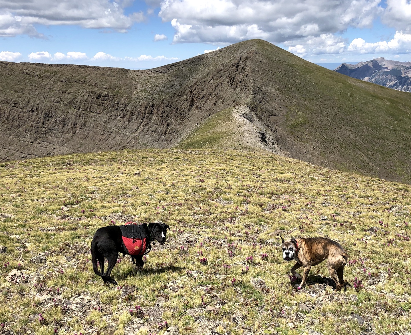 Zelda had an adventurous spirit and lived life with enthusiasm. She had an infectious personality and often made strangers smile with her eye contact and her goofy "jumpies" on our walks around the neighborhood. We traveled thousands of miles together, including hundreds of nights in the Colorado mountains, where she summited peaks, scrambled over boulder fields, forged swollen creeks, bushwhacked through dense forests, and plowed through deep snow. Zelda was our "try-hard" dog, and would not be stopped by any obstacle. She was athletic and agile, but sometimes a bit reckless, resulting in some memorable events, including a double "cut by ski" incident on Christmas Day 2019. I will never forget a heart-stopping moment when she tumbled down a 40-foot cliff, landing hard on a narrow ledge above a sheer 500-foot drop. True to her breed, she was fearless, with a strong prey-drive, and was always on the lookout for wildlife. On a few occasions, these interactions did not go in her favor, most notably with a porcupine, a rattlesnake, a skunk, and a grumpy bull moose. A few years ago, she successfully chased down a mouse on a high alpine ridge, swallowed it whole, and promptly fainted - causing her to keel over and slide down the tundra, fortunately coming to a stop before she reached the edge of a cliff. Terrifying at the time, but funny in retrospect.