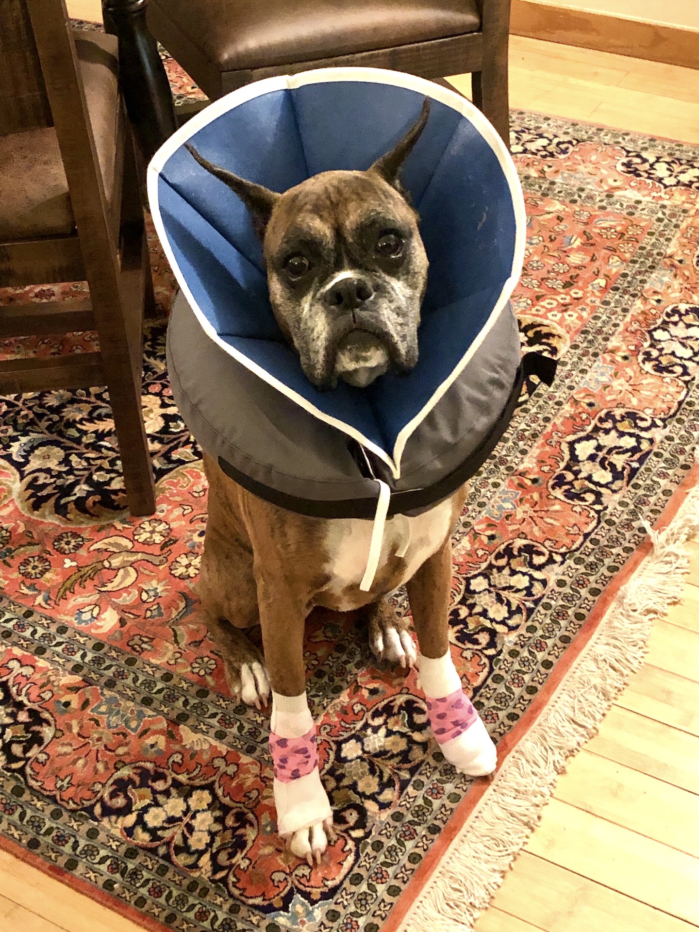 After her diagnosis last month, she benefitted from palliative care, and we enjoyed 5 happy weeks with her before the disease finally caught up to her. We are all (humans and dogs) struggling with her loss. She was very special to us, and her absence leaves a huge and un-fillable hole in our lives. She goes to join her friends Piper and Lola, and leaves behind Opus, Max, my wife, and me ... who will miss her forever.