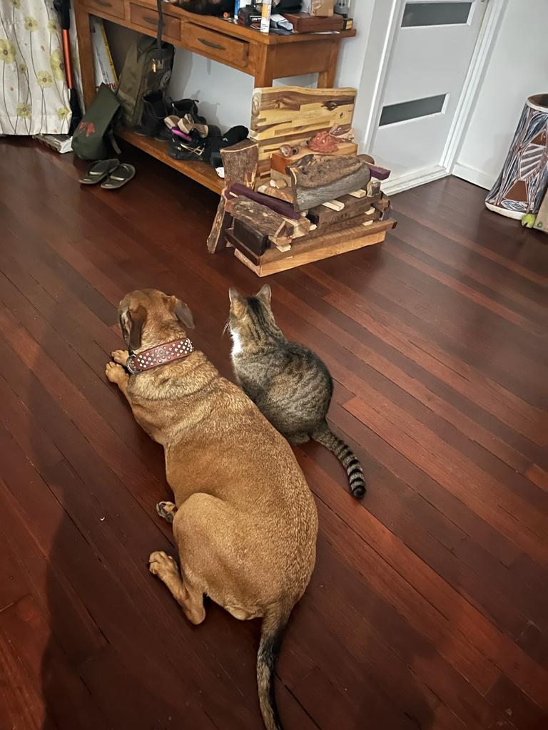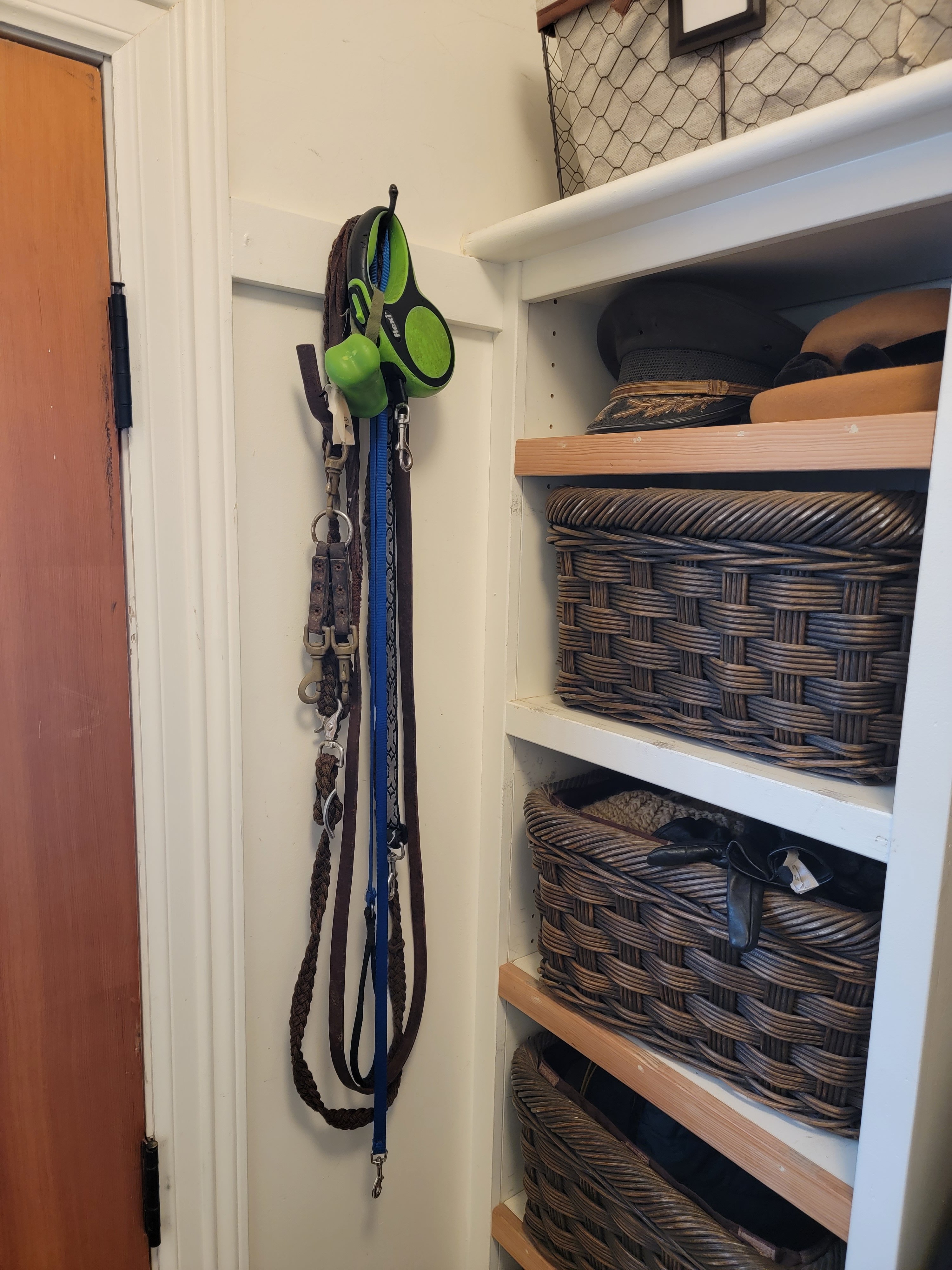 It helps. Leashes from our three previous dogs with one for the living.