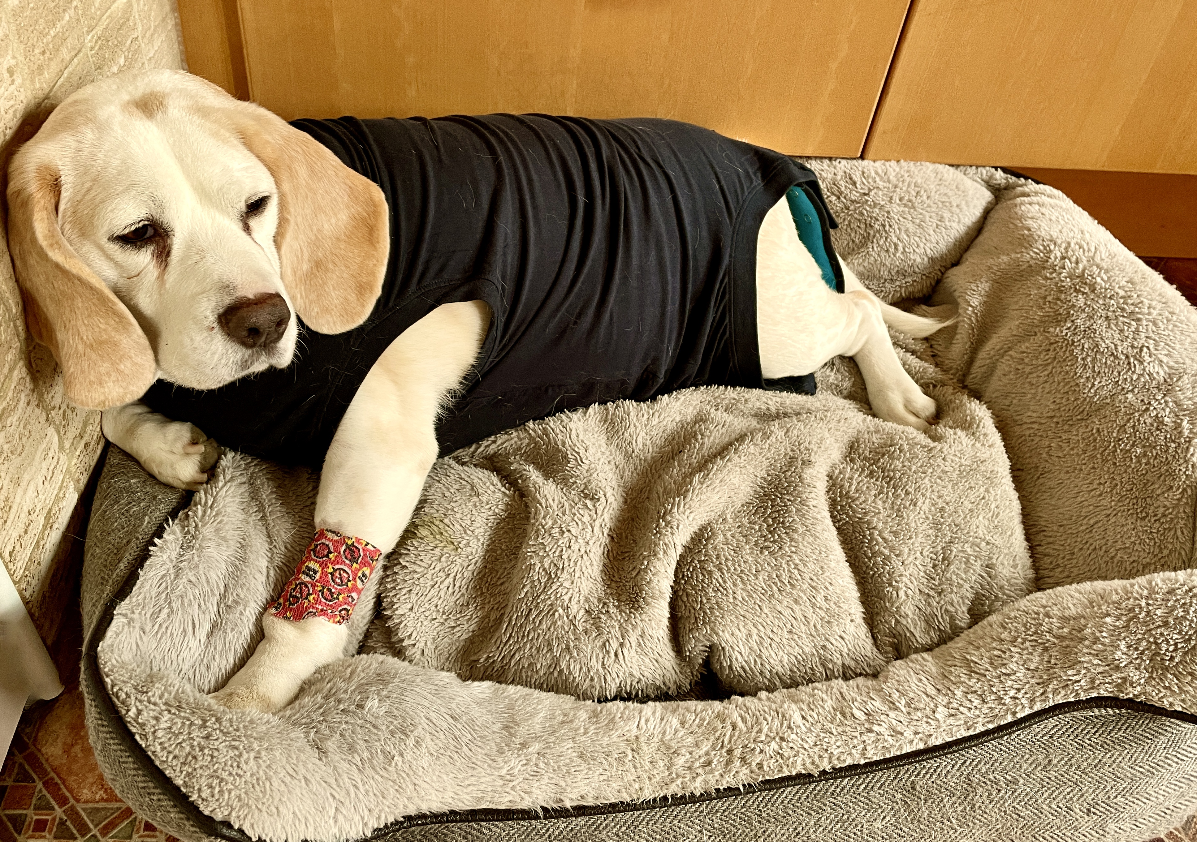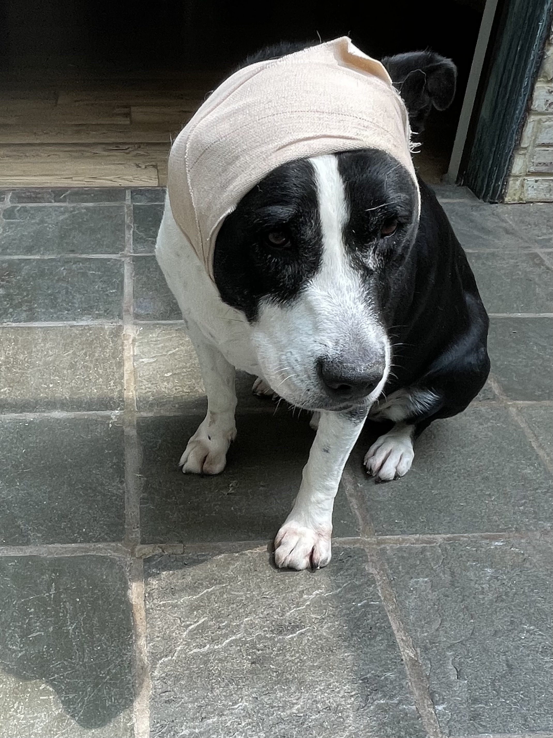 One unhappy pup….Fergus had surgery this morning to remove a hematoma that swelled his right ear to more than an inch thick. He’s a tough little guy - well at 84lbs not really that little - and will get through this.