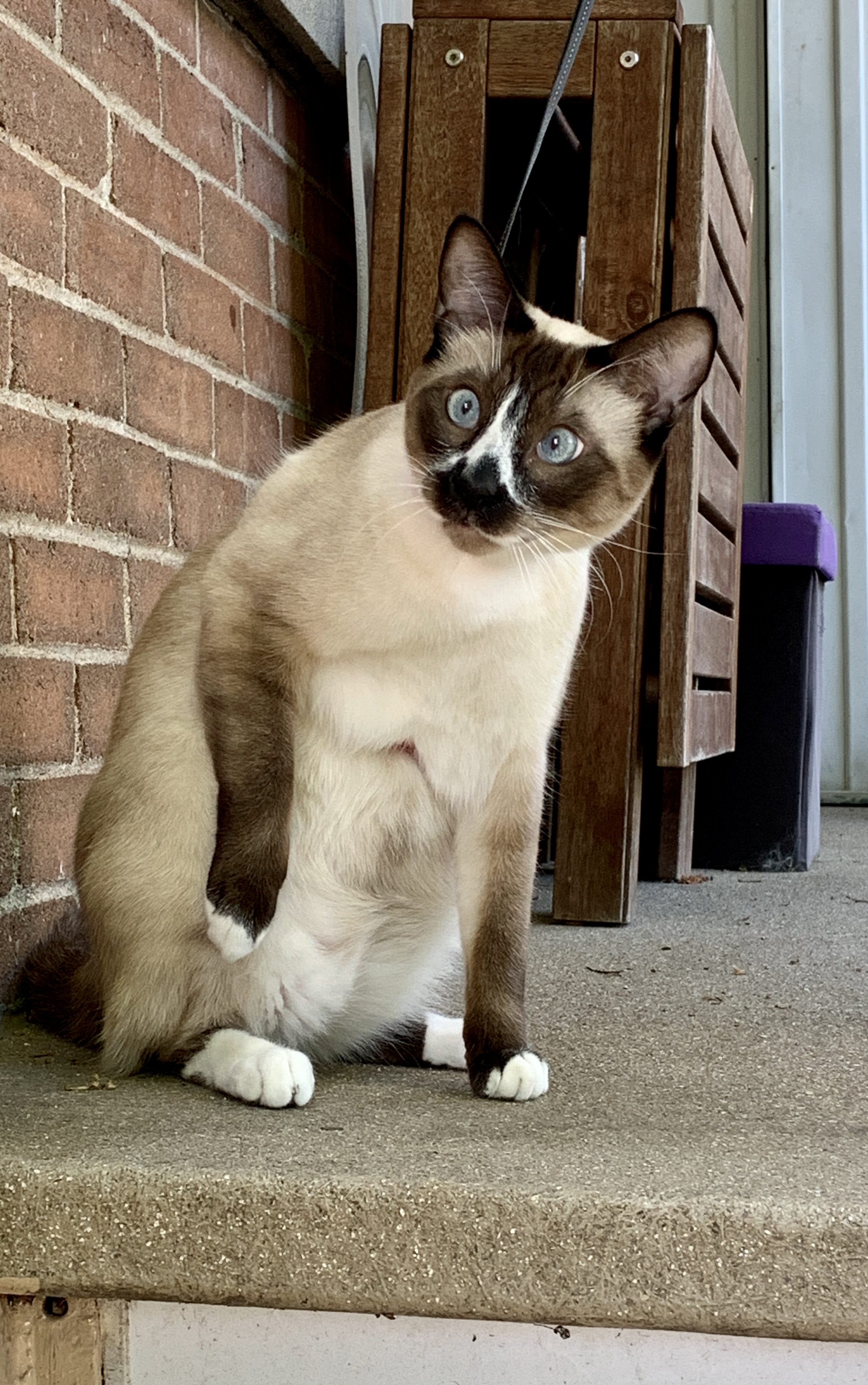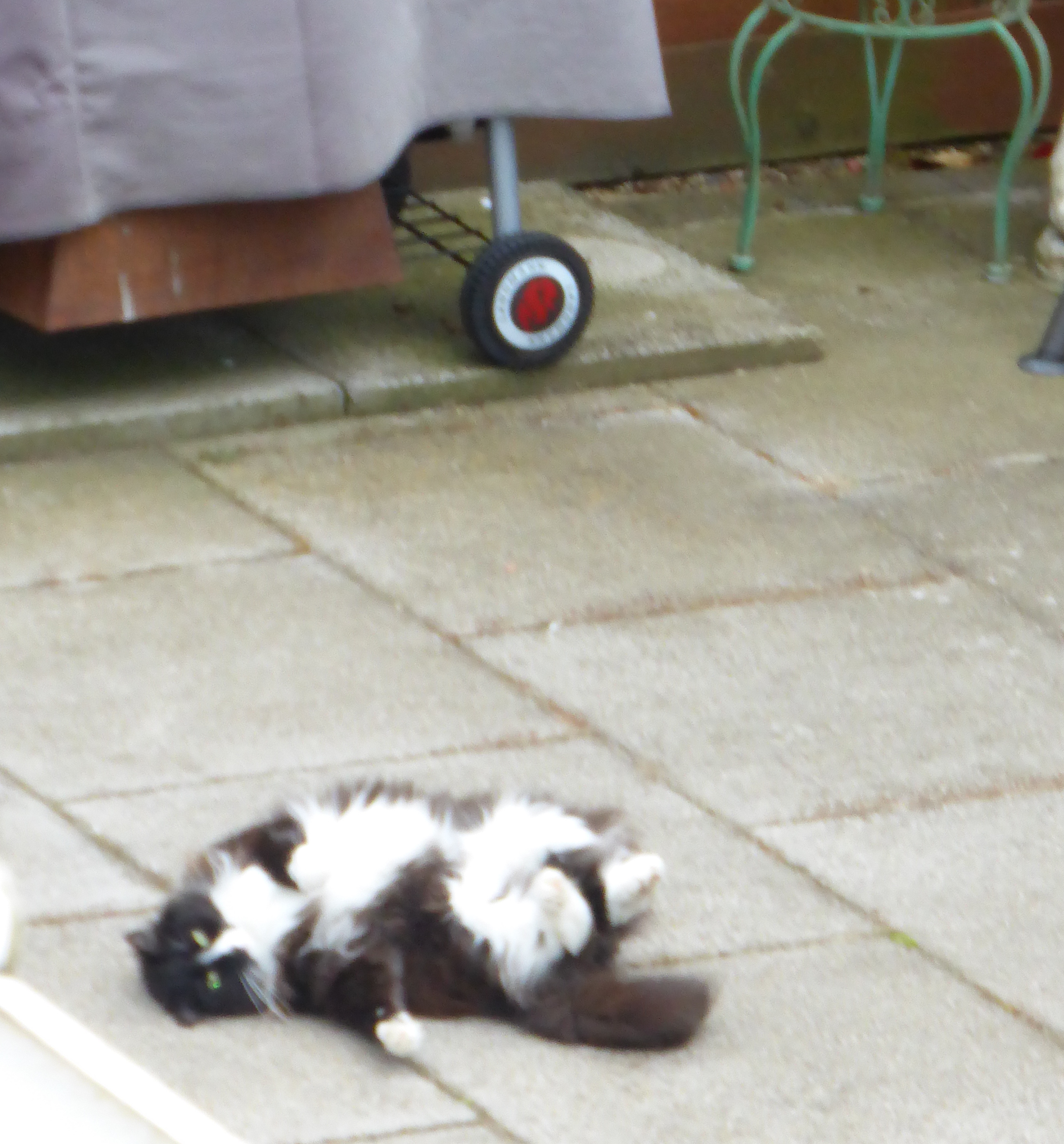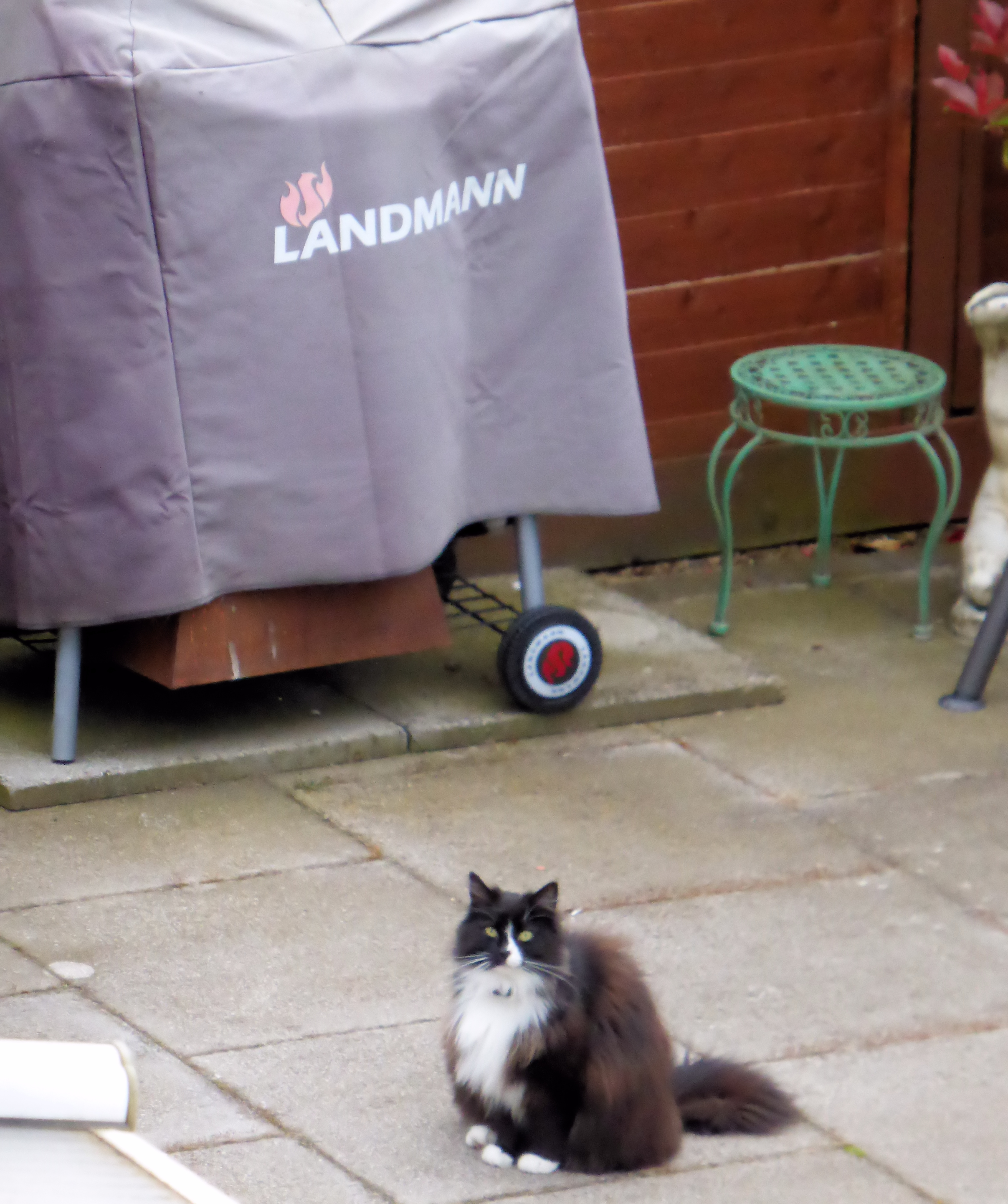 Caught young Girl posing for chips by a neighbours BBQ am today. Hoomans I am cute and starving.... fire up the foood machine again.......