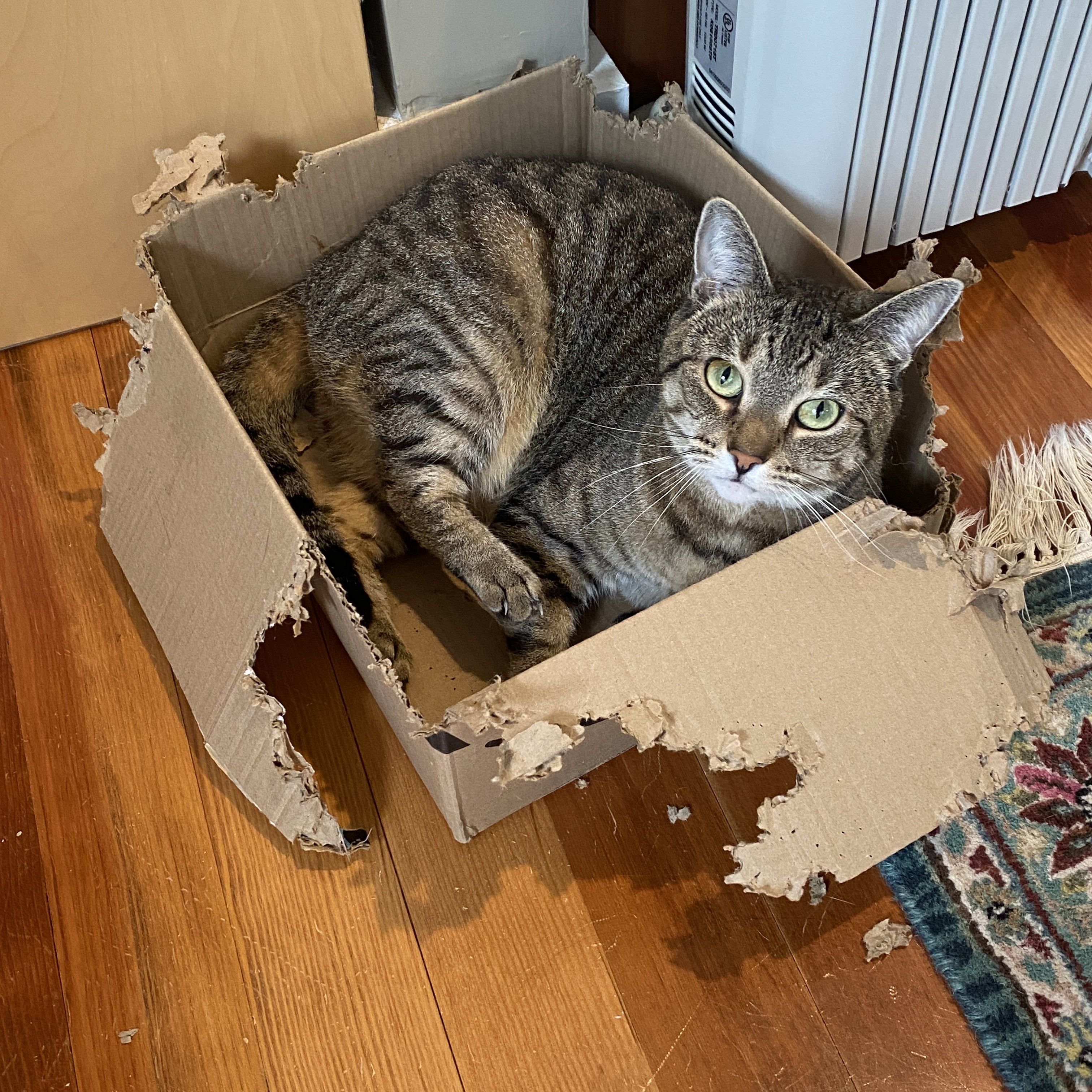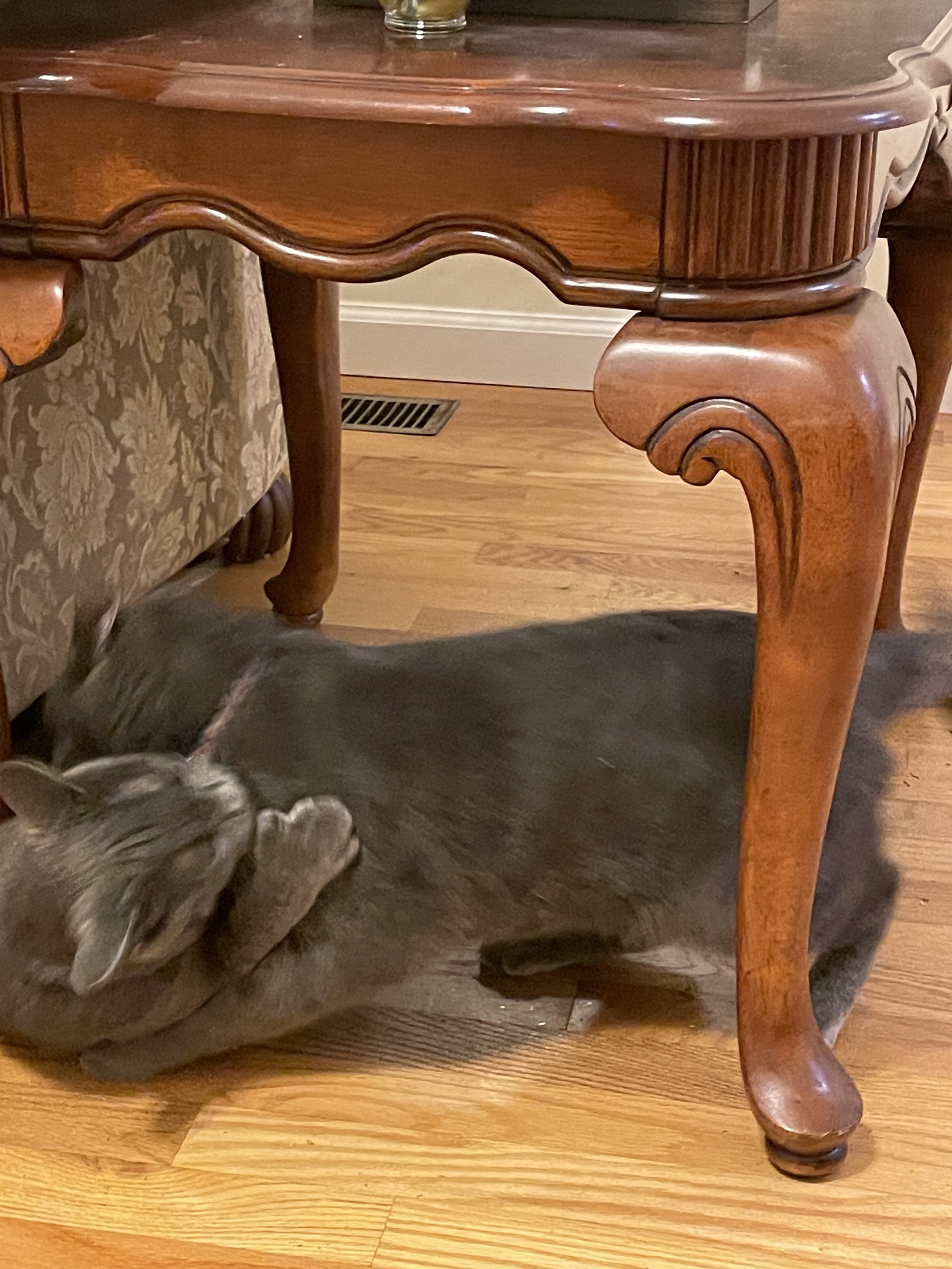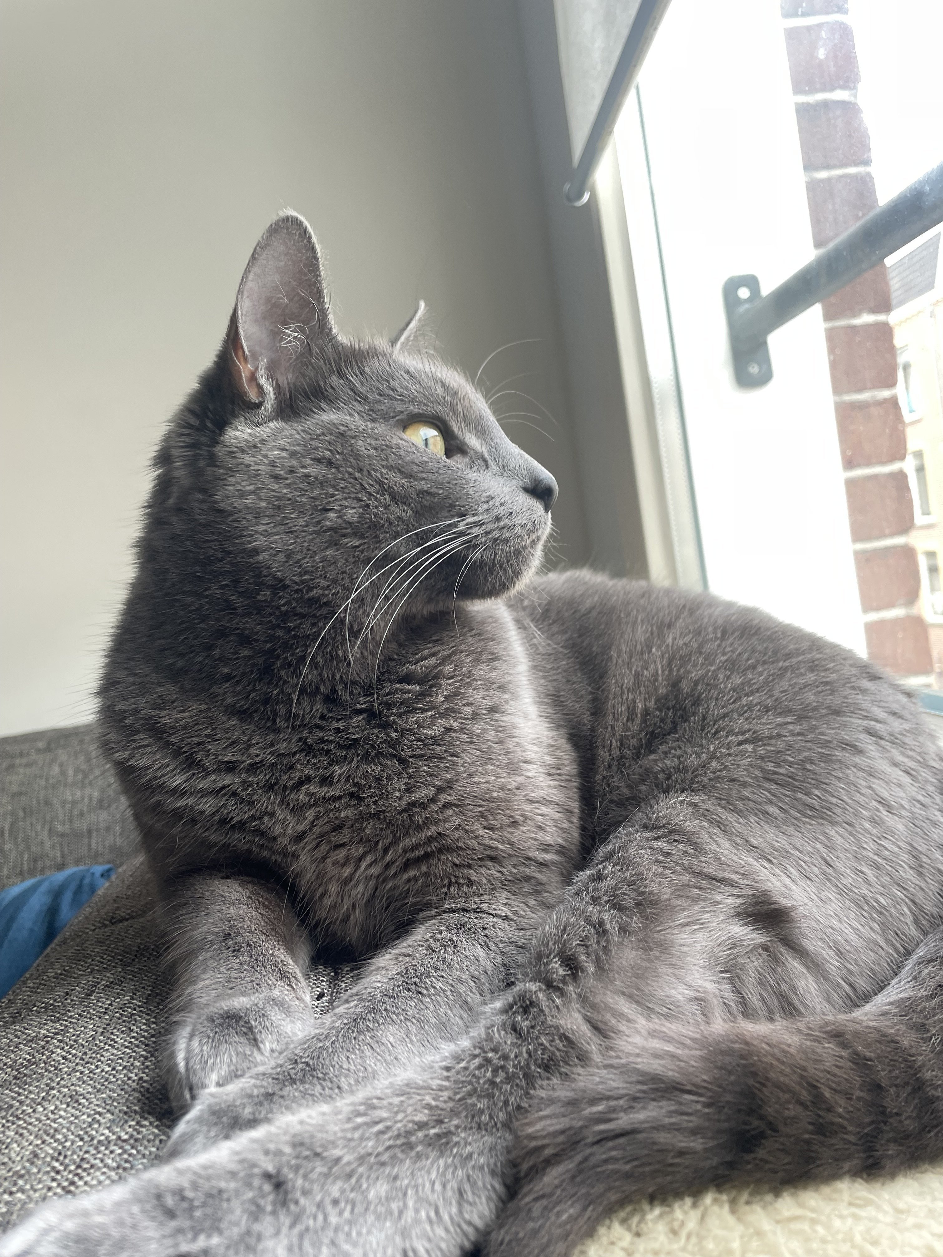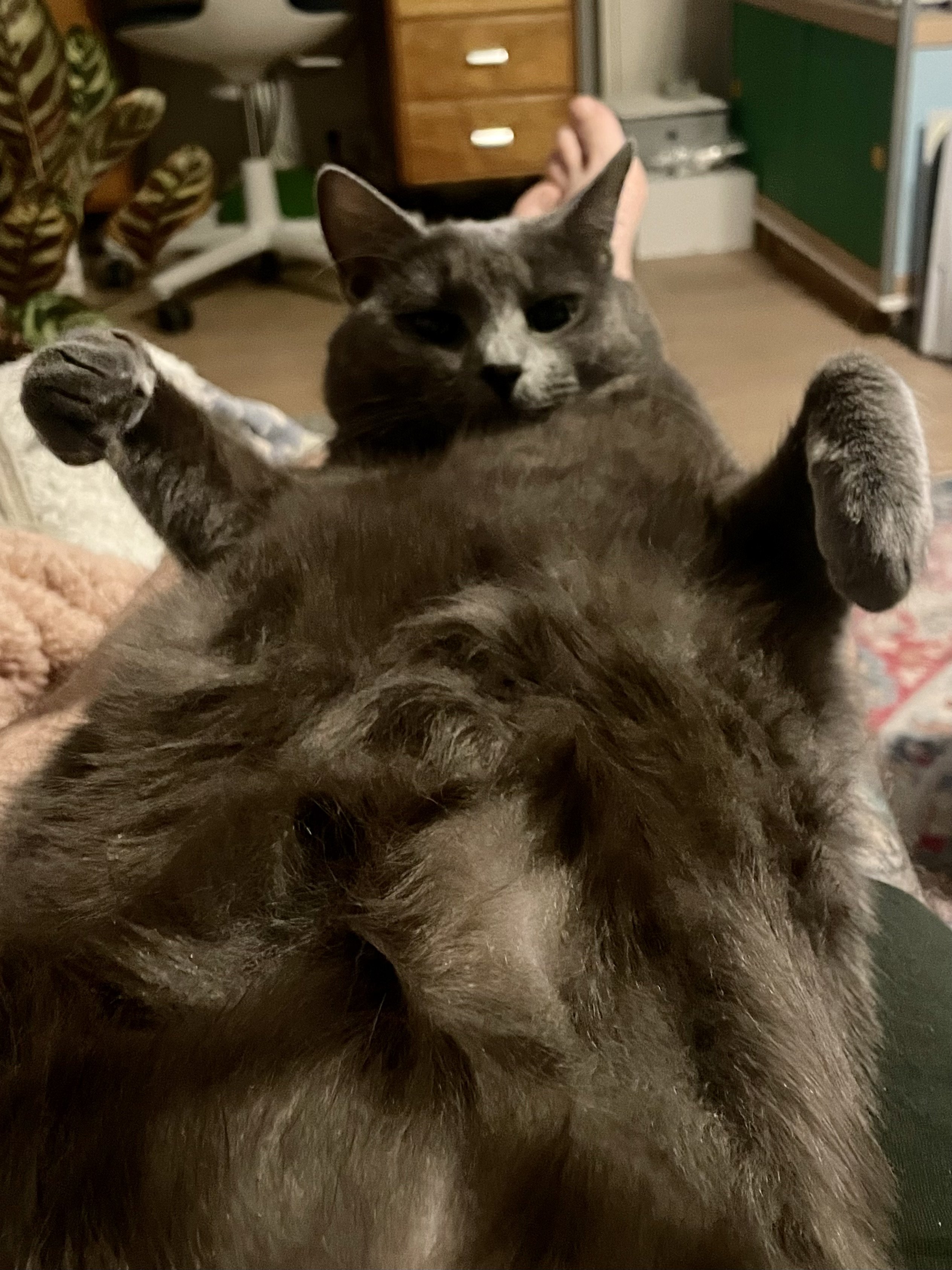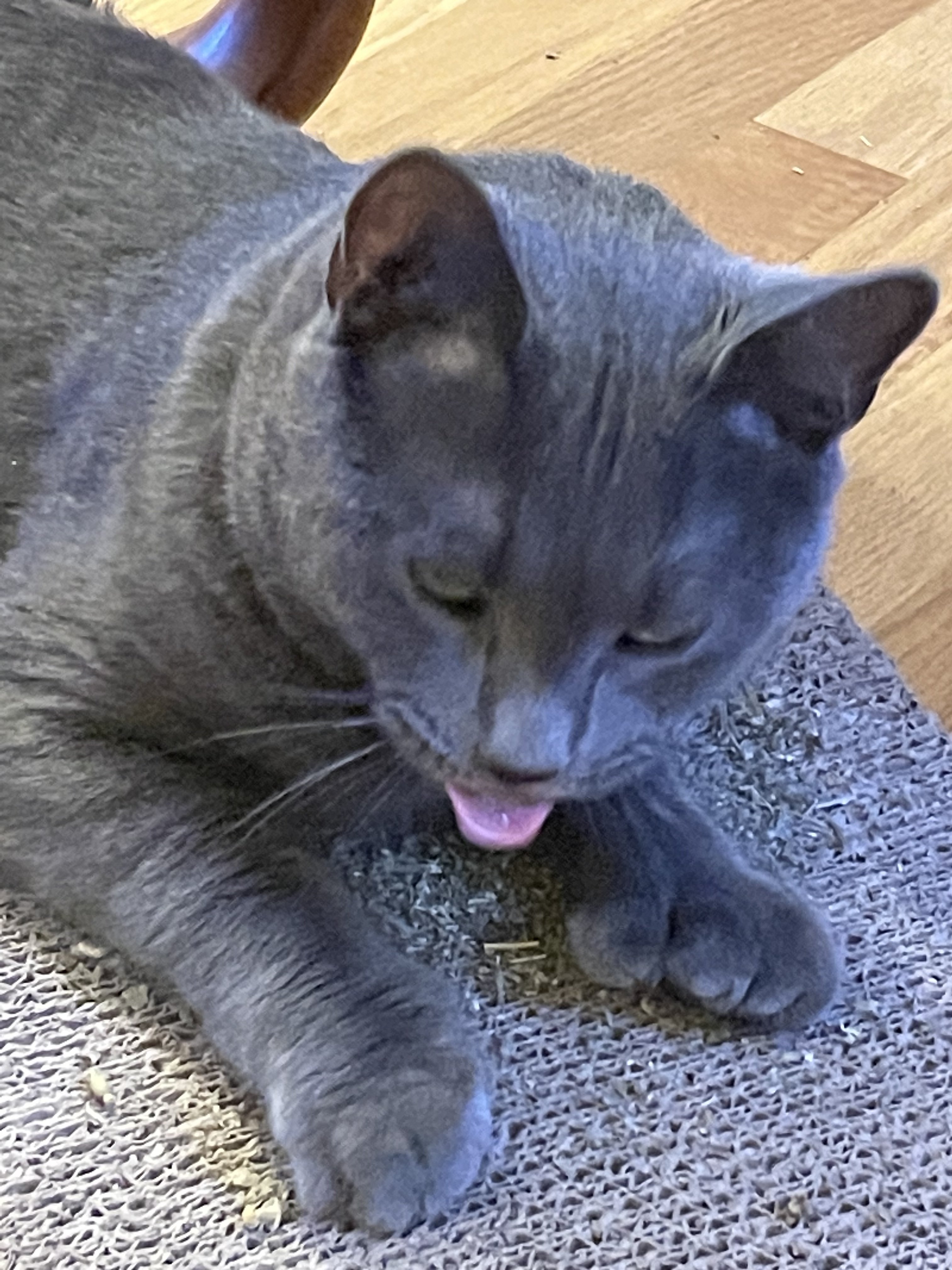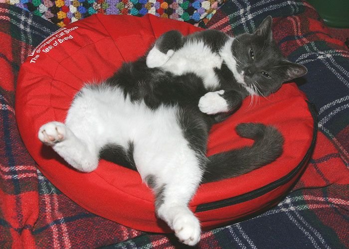 ·It’s hard for me to get a photo of the brothers trolling the neighbors dog. Here is a cropped blurry photo of Maharishi Yogi sitting on the fence and if the dog tries to get a hold of him doggy gets seven claws to the nose. This is a barrel chested dog who probably is five times the weight of Maharishi so if he screws up is timing this could go South fast but they both seem to enjoy this activity.