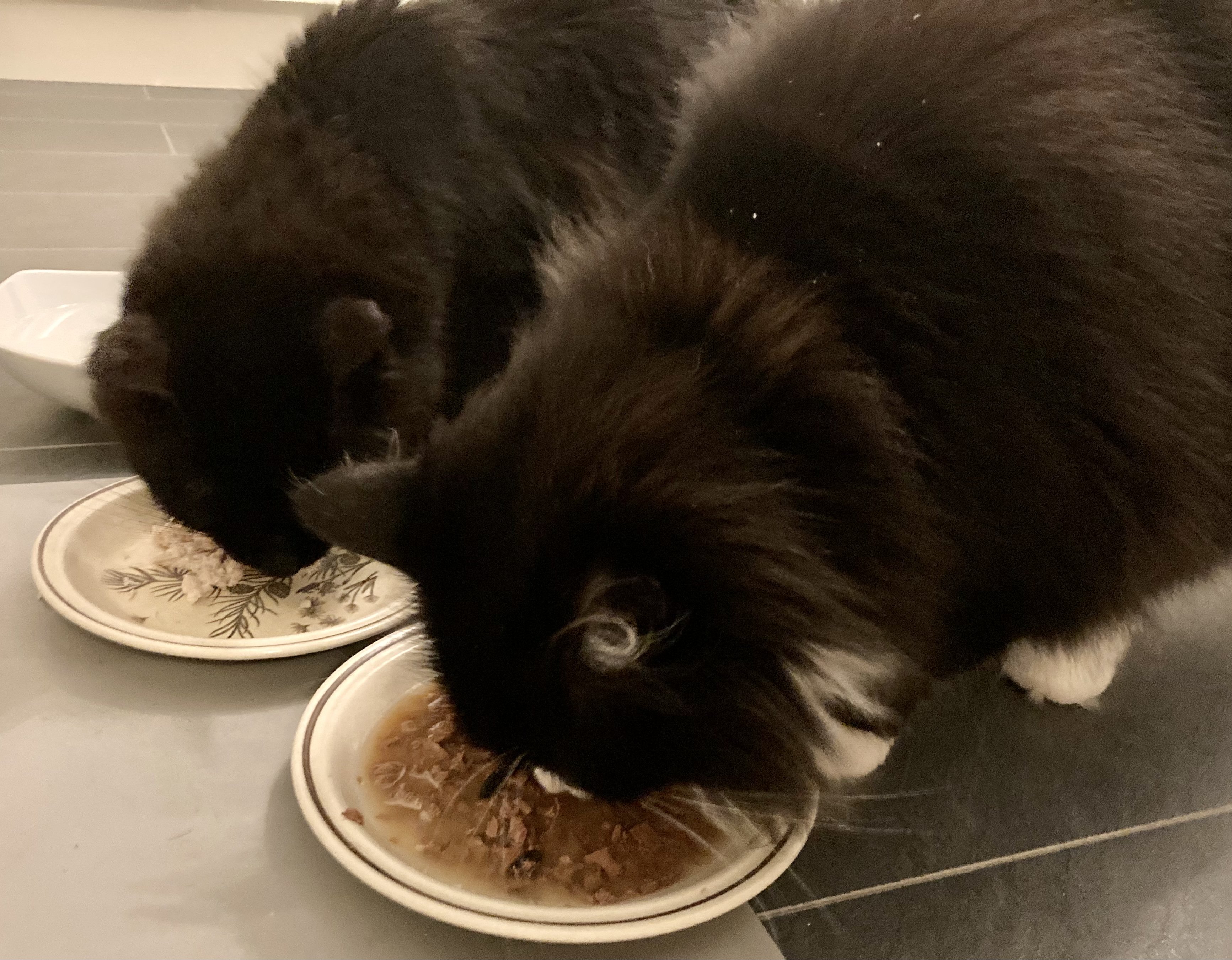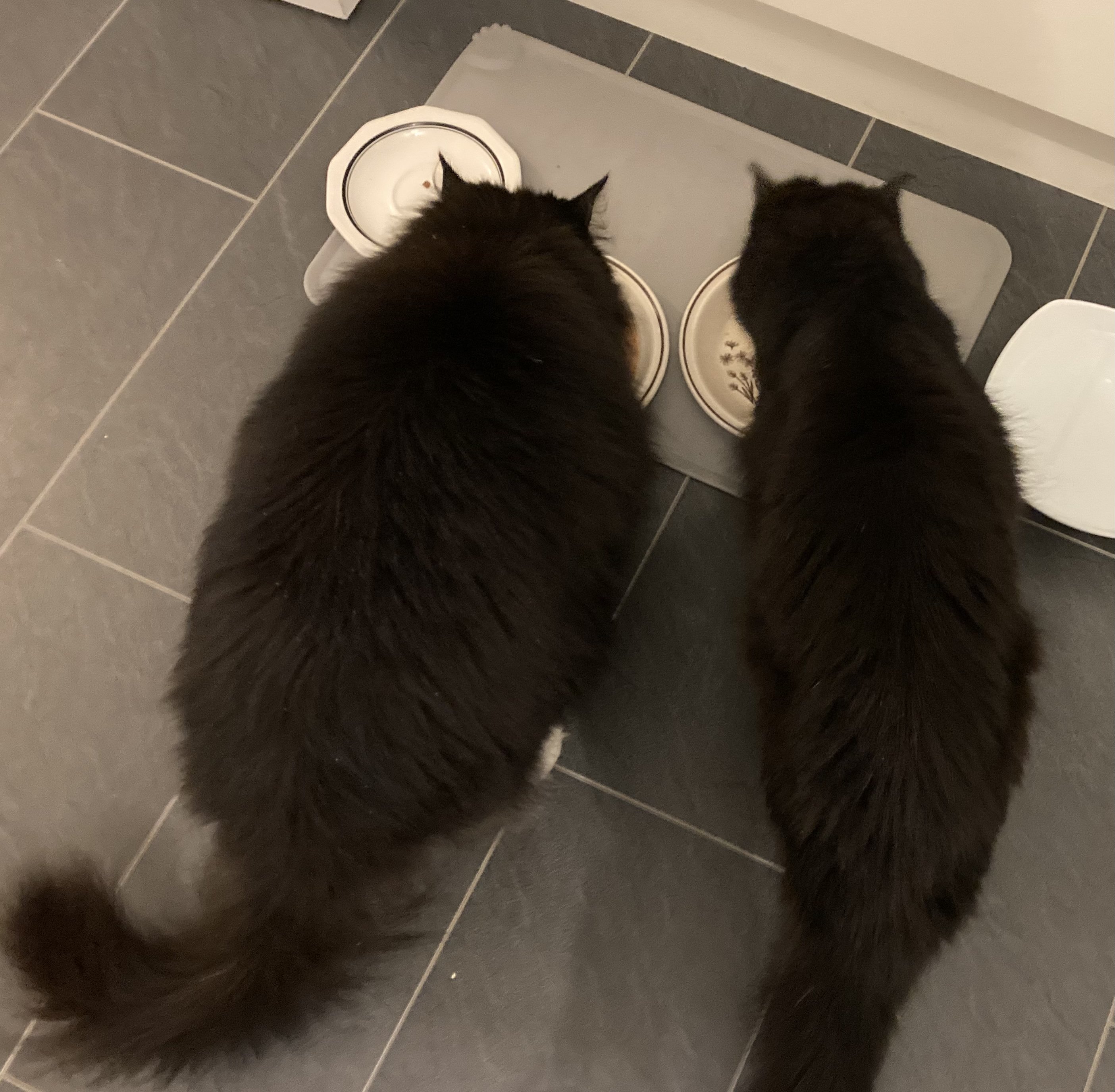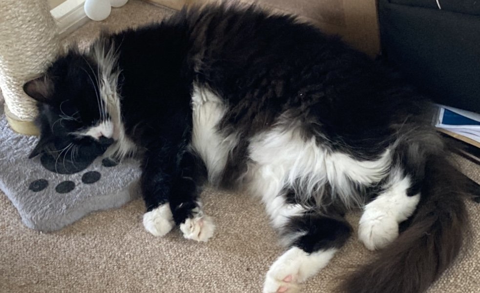 Been a hectic few months so not posting much. Old boy is doing ok, stable with some chronic conditions and daily treatments. From a low point in March we think we might get another summer at least. Something to celebrate.Winter is a test as he hates it. Molverine has her paws well and truly under the table. He just about tolerates her now. She is a big girl now so he can’t push her around, the competition seems to be good for him (he would argue that point). Old boy wakes us up at 6:30am (or before) caterwauling under the window. He is a bit deaf so I have a supply of ping-pong balls to hurl down, so that he knows the breakfast call has been acknowledged and stops annoying the neighbours. Molverine is queen of the night and gets lots of shut eye in the day… when she is not making mischief around the house chasing papers and attacking towels etc :0). Bonus photo is one of two local brothers. He did not know the dog so it was nice to see them all getting along. Molverine hates dogs after bad experiences in her rescue / shelter days, so we won’t be trying that with her. Maybe a puppy would be ok. She likes watching a panther on TV….. delusions of grandeur.