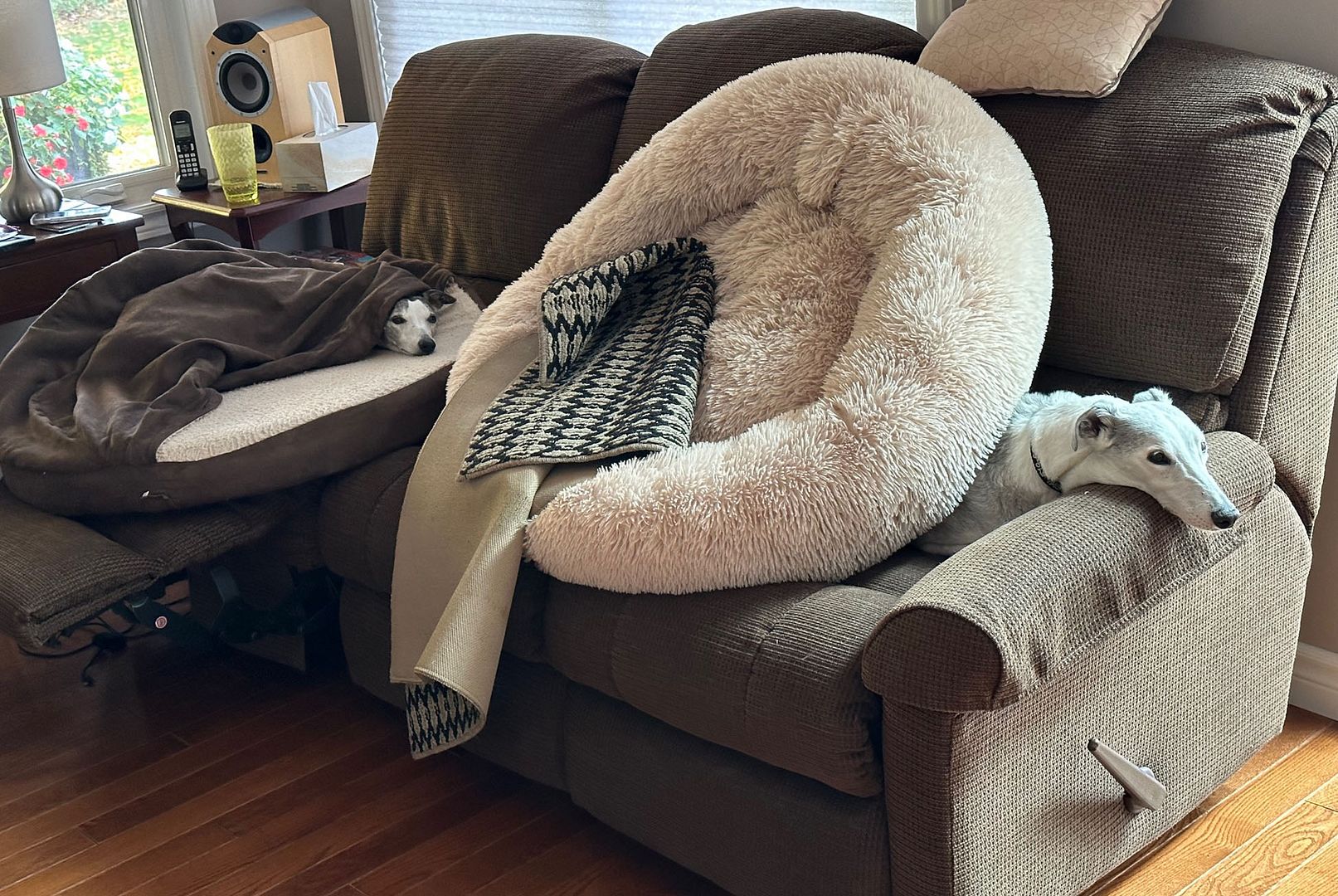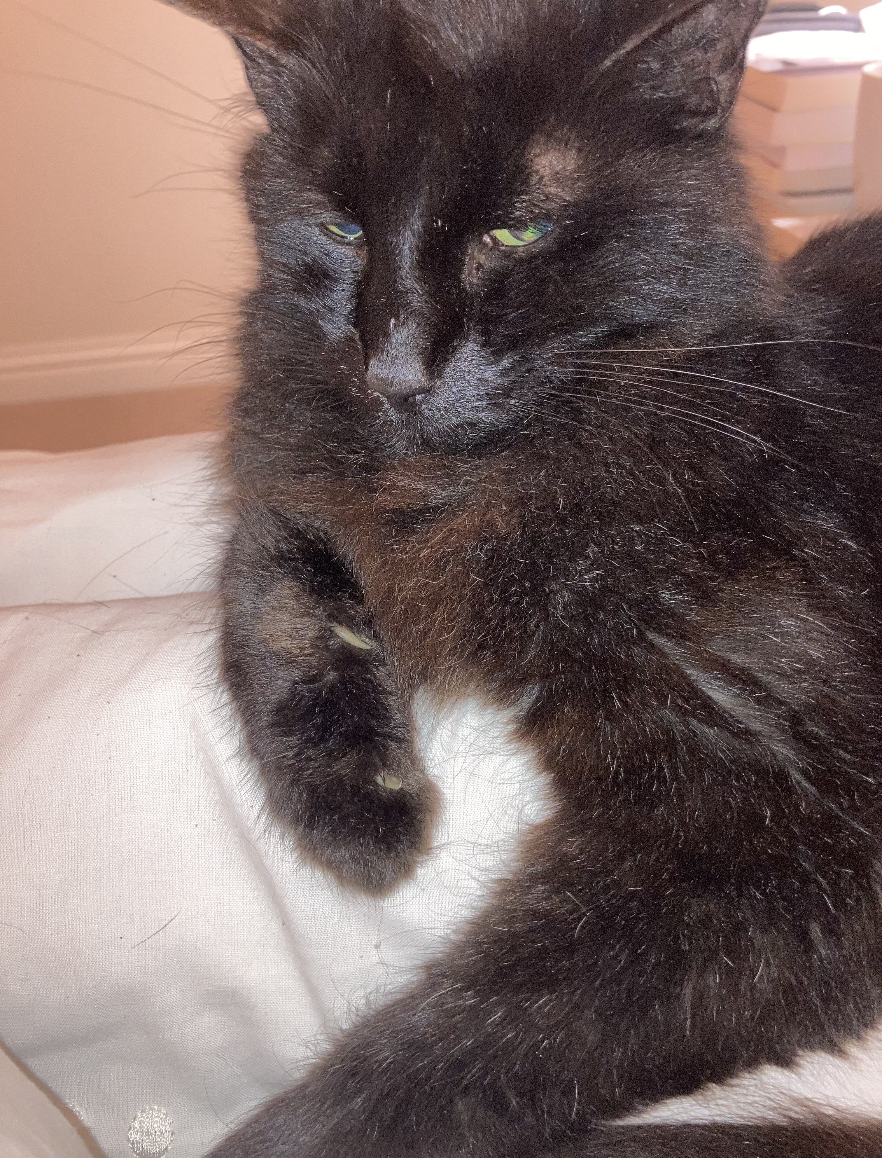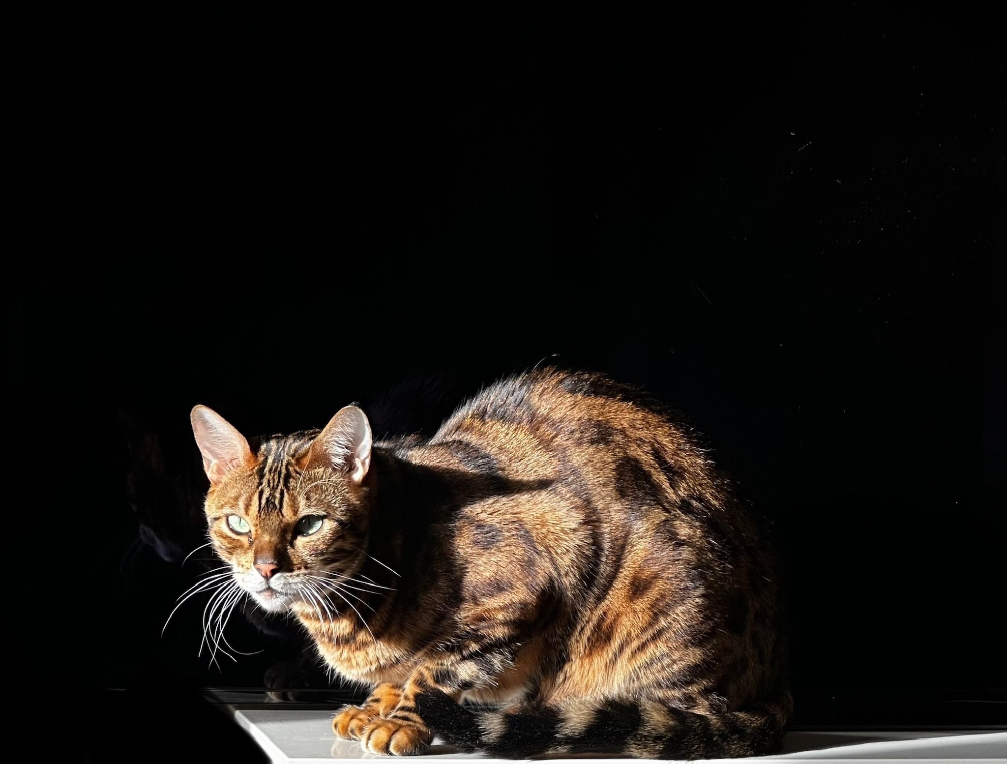 Been a hectic few months so not posting much. Old boy is doing ok, stable with some chronic conditions and daily treatments. From a low point in March we think we might get another summer at least. Something to celebrate.Winter is a test as he hates it. Molverine has her paws well and truly under the table. He just about tolerates her now. She is a big girl now so he can’t push her around, the competition seems to be good for him (he would argue that point). Old boy wakes us up at 6:30am (or before) caterwauling under the window. He is a bit deaf so I have a supply of ping-pong balls to hurl down, so that he knows the breakfast call has been acknowledged and stops annoying the neighbours. Molverine is queen of the night and gets lots of shut eye in the day… when she is not making mischief around the house chasing papers and attacking towels etc :0). Bonus photo is one of two local brothers. He did not know the dog so it was nice to see them all getting along. Molverine hates dogs after bad experiences in her rescue / shelter days, so we won’t be trying that with her. Maybe a puppy would be ok. She likes watching a panther on TV….. delusions of grandeur.