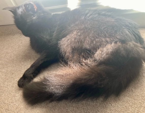 Old boy paid a visit to the home office today just after some ear treatment and a head wash (don’t ask :0) we seem to be keeping the nose up and he is doing even better this week. Maybe chasing the mouse Molverine bought in perked him up. We did not think he would make this year and now paws crossed we think he could see another summer. He loves the better weather so hopefully…