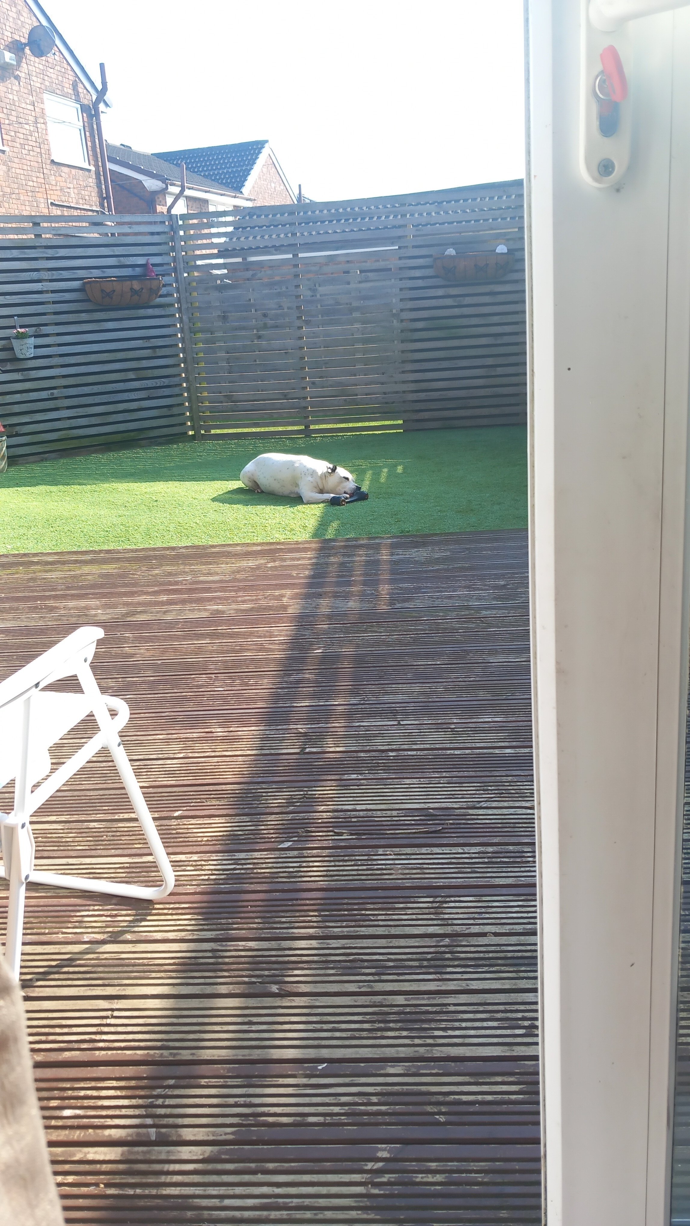 Because of his balance problems we haven't been out walking, he's restricted to the artificial grass back garden and decking as well as downstairs in the house
