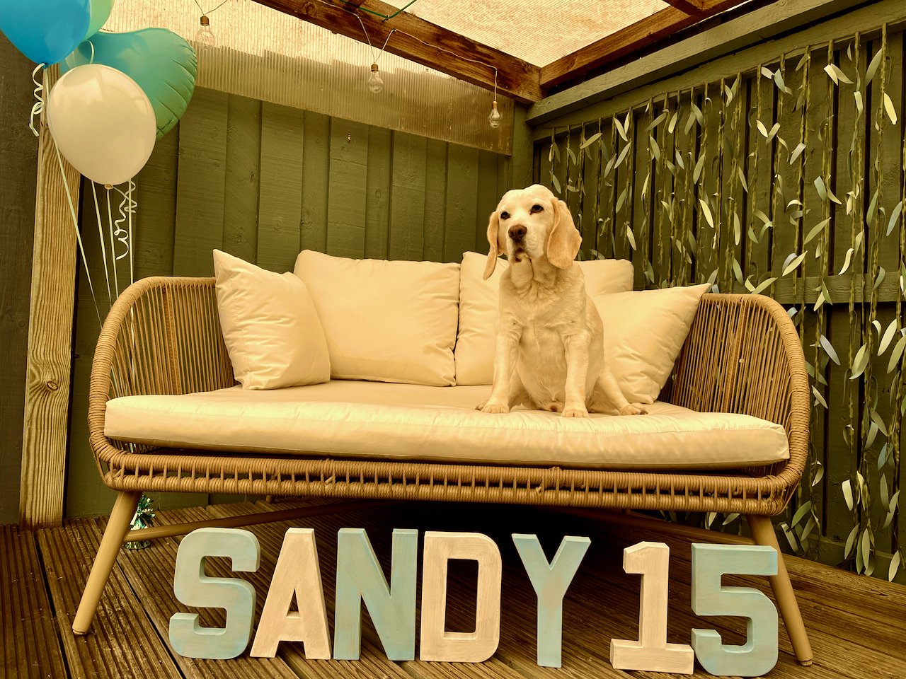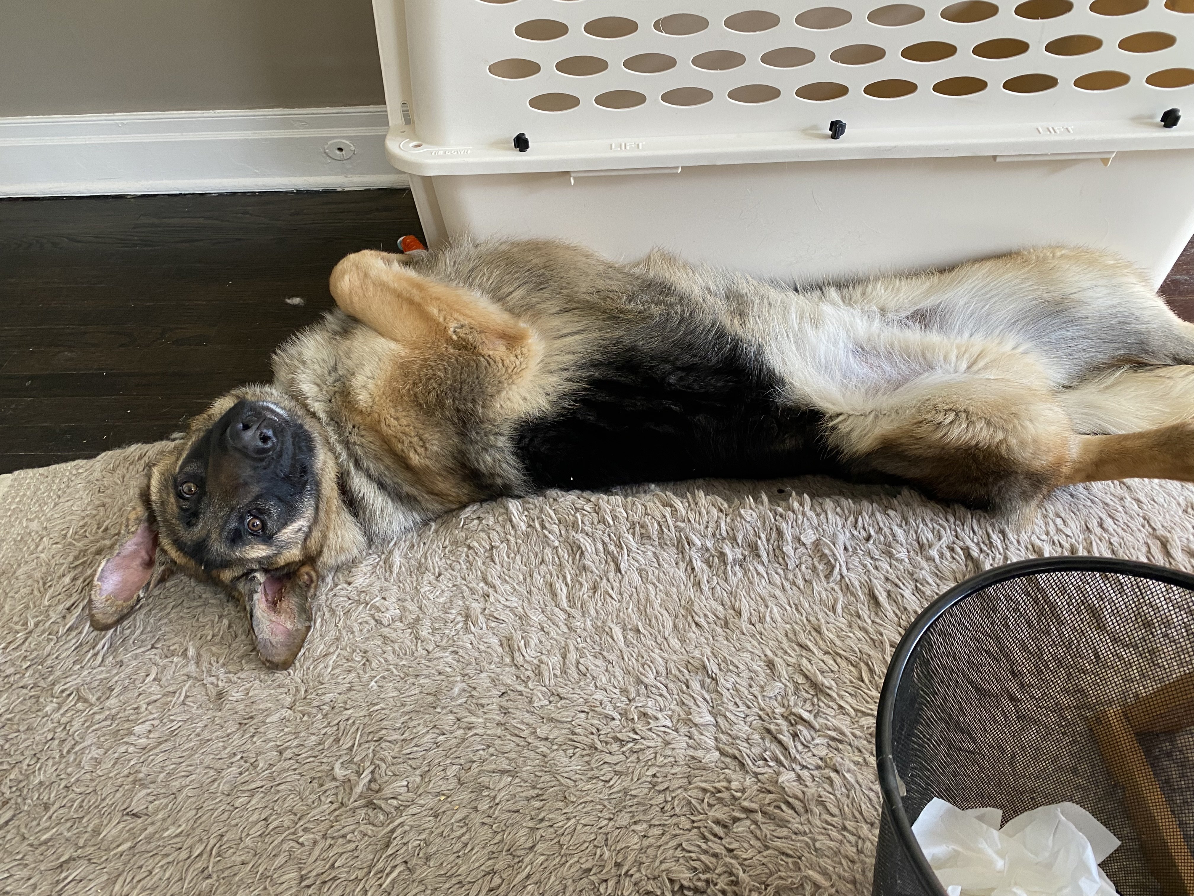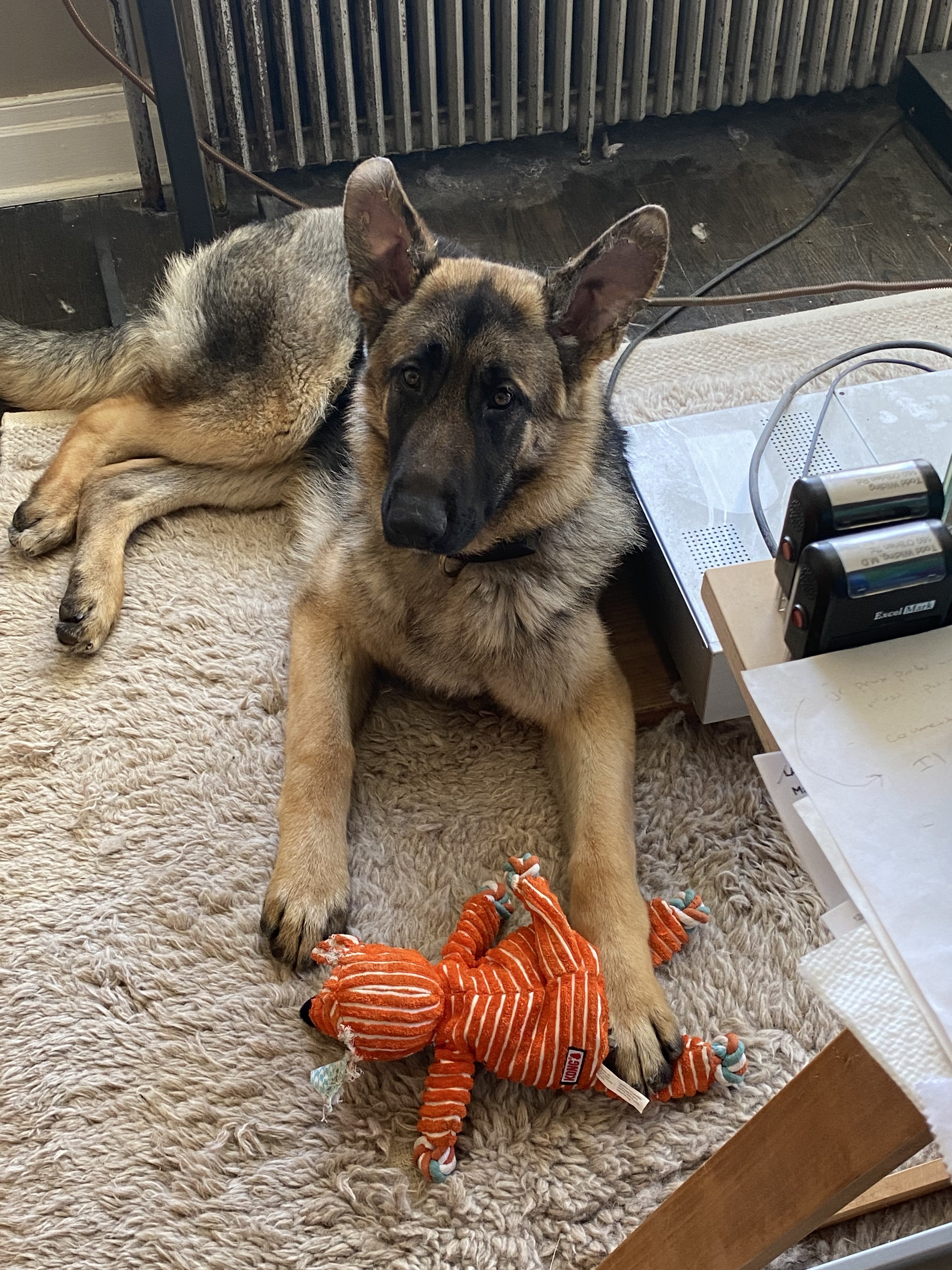 Well...after nearly four years of doglessness we're back in business. A big boy at 6 months and 72 pounds. Very very loving. Not that my seven cats are terribly impressed....