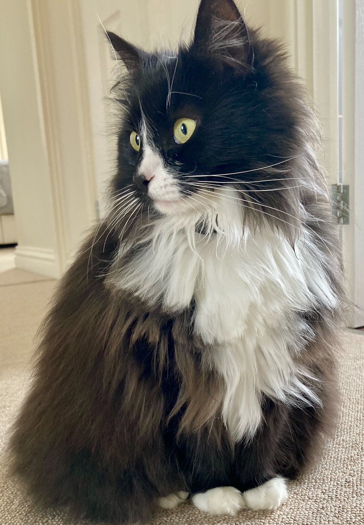 Molverine is also in good health and just hit 5…. Well and truly has her paws under the table. Her and Old Boy still have an edgy relationship but they seem to rub along better with time. She has a habit of dunking her bib / ruff in her dinner but I think my hairdressing skills leave a bit to be desired.