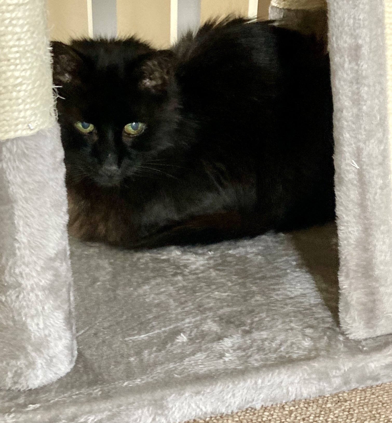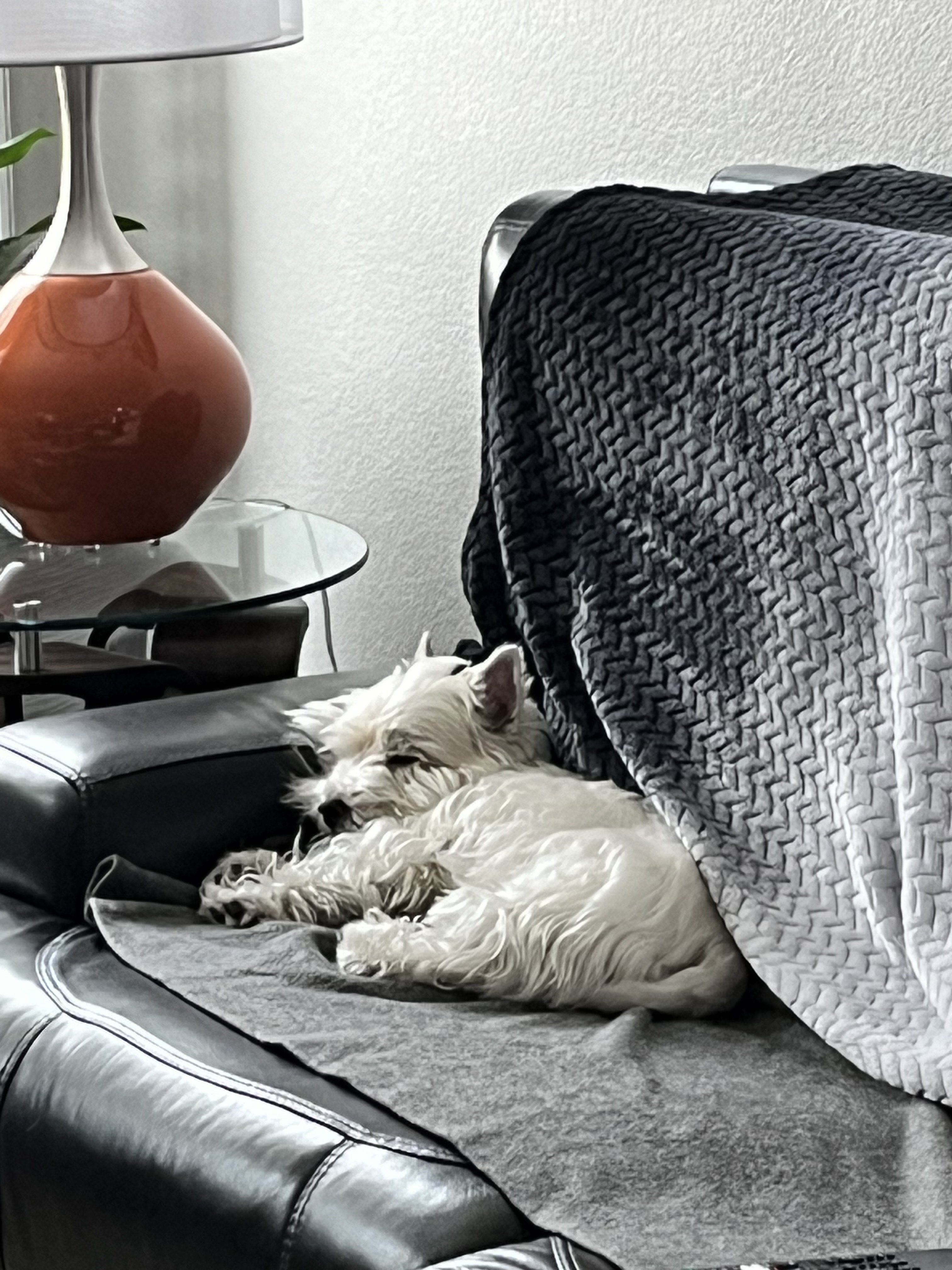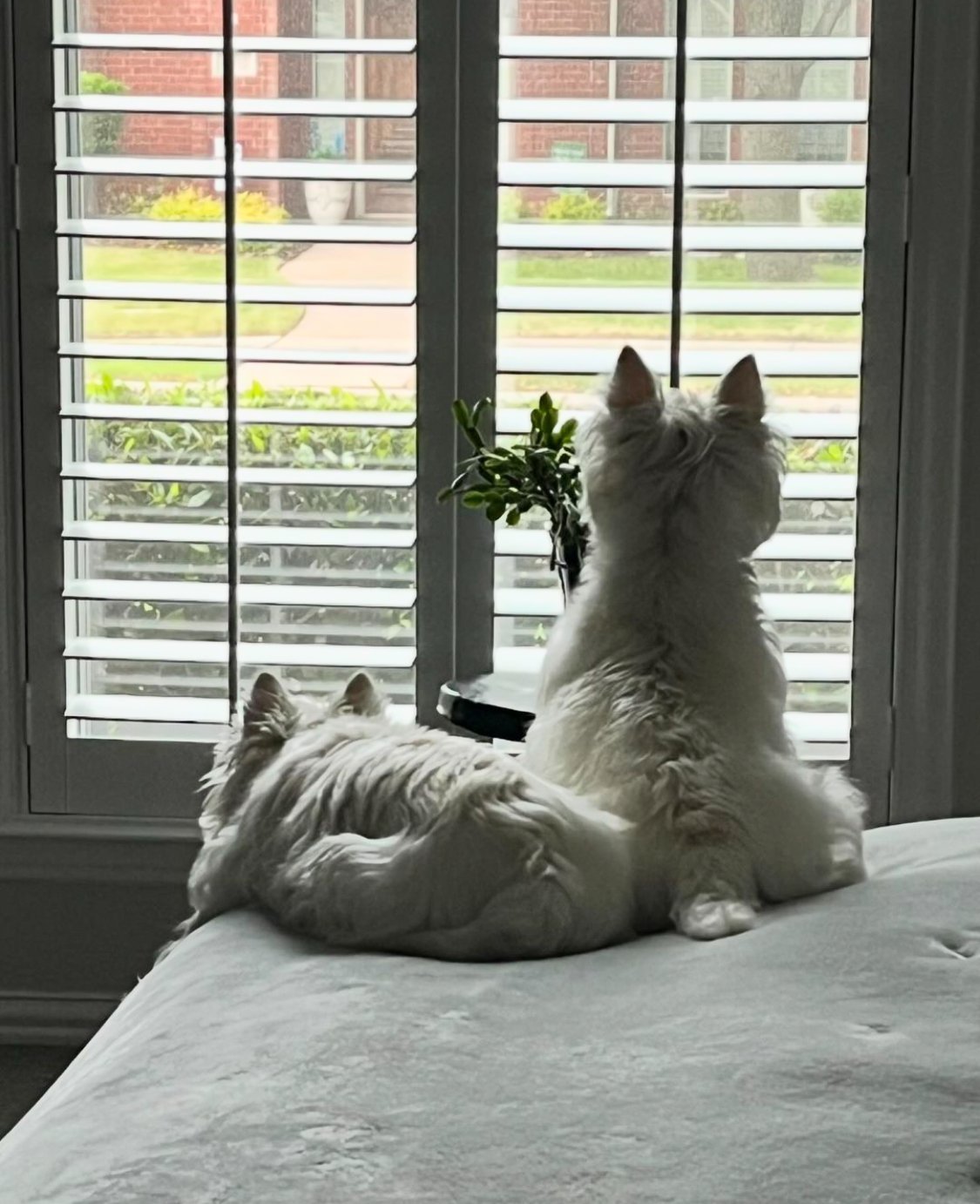 Fiona’s daily chore is to keep an eye out for squirrel activity in the back garden. The top of the loveseat is also a convenient place for taking brief naps between shifts.