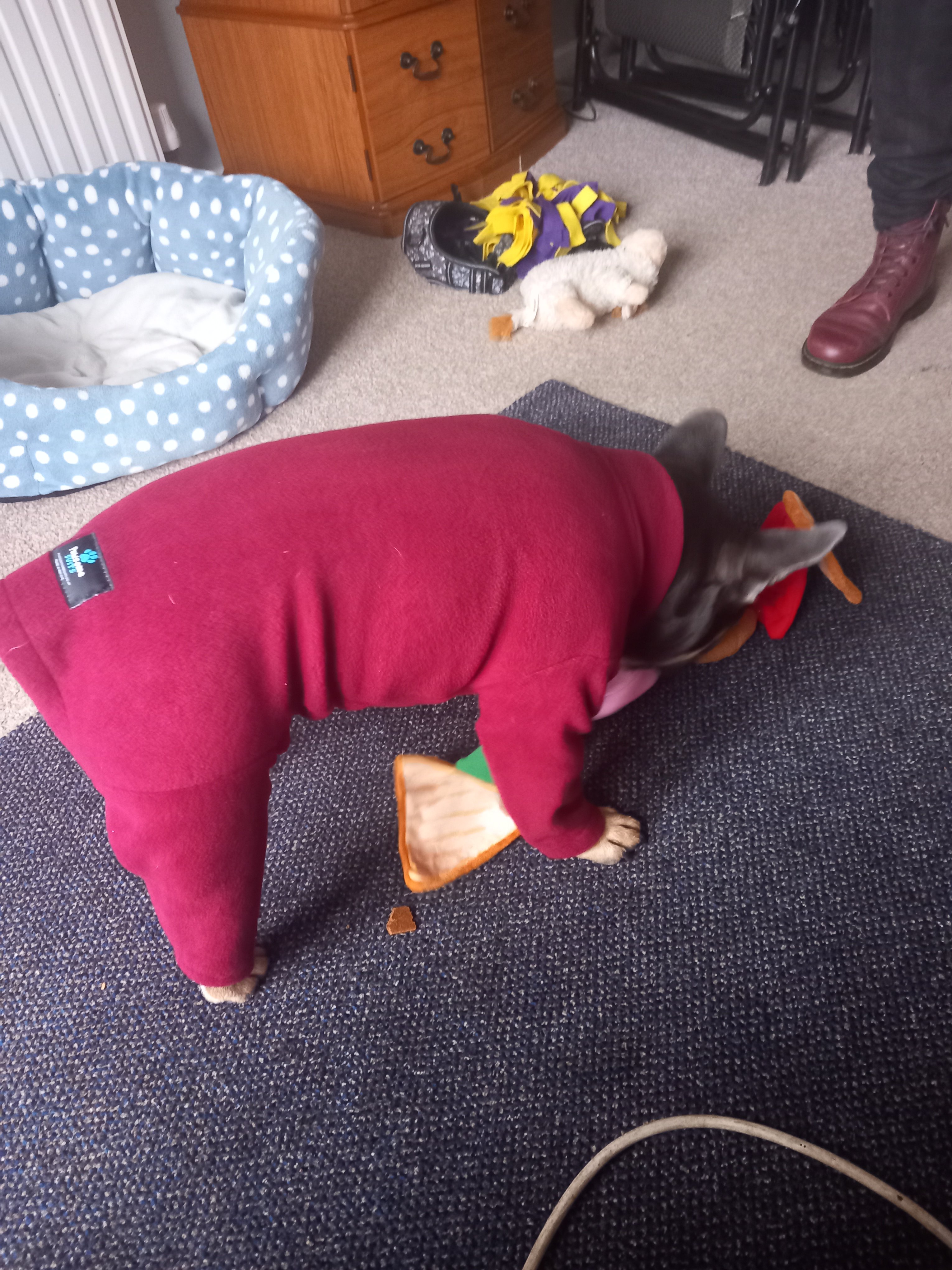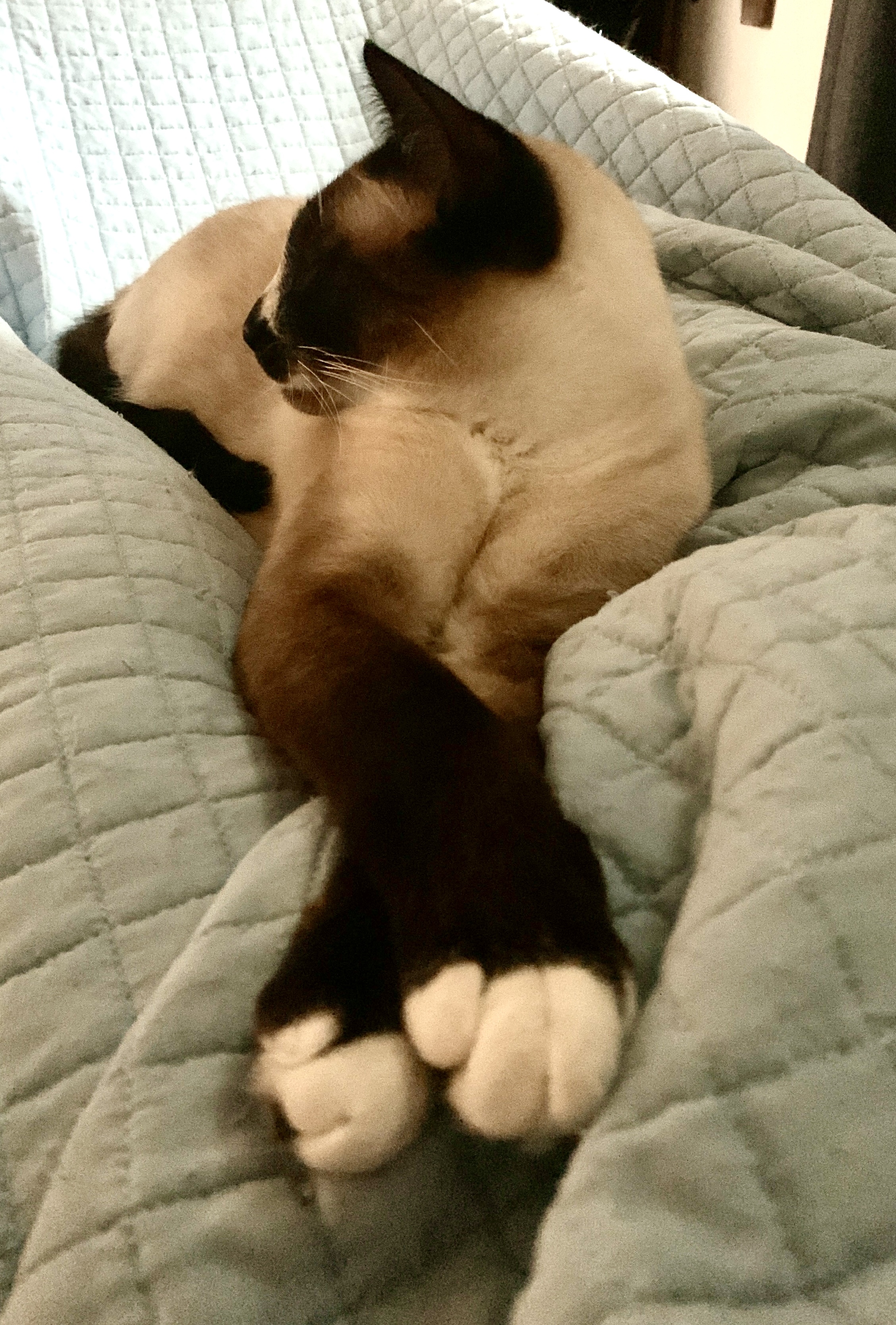 Rocky got this new thing of sleeping by my feet. The problem is if I move my feet at night he bites them. So I am often awoken by the terror biting my big toe. Then it turns into a game at 3am where I keep tapping him with my foot and he tries to bite me. They are not the full power bites but not exactly what I need going on when I already deal with insomnia. He seems to enjoy it though.