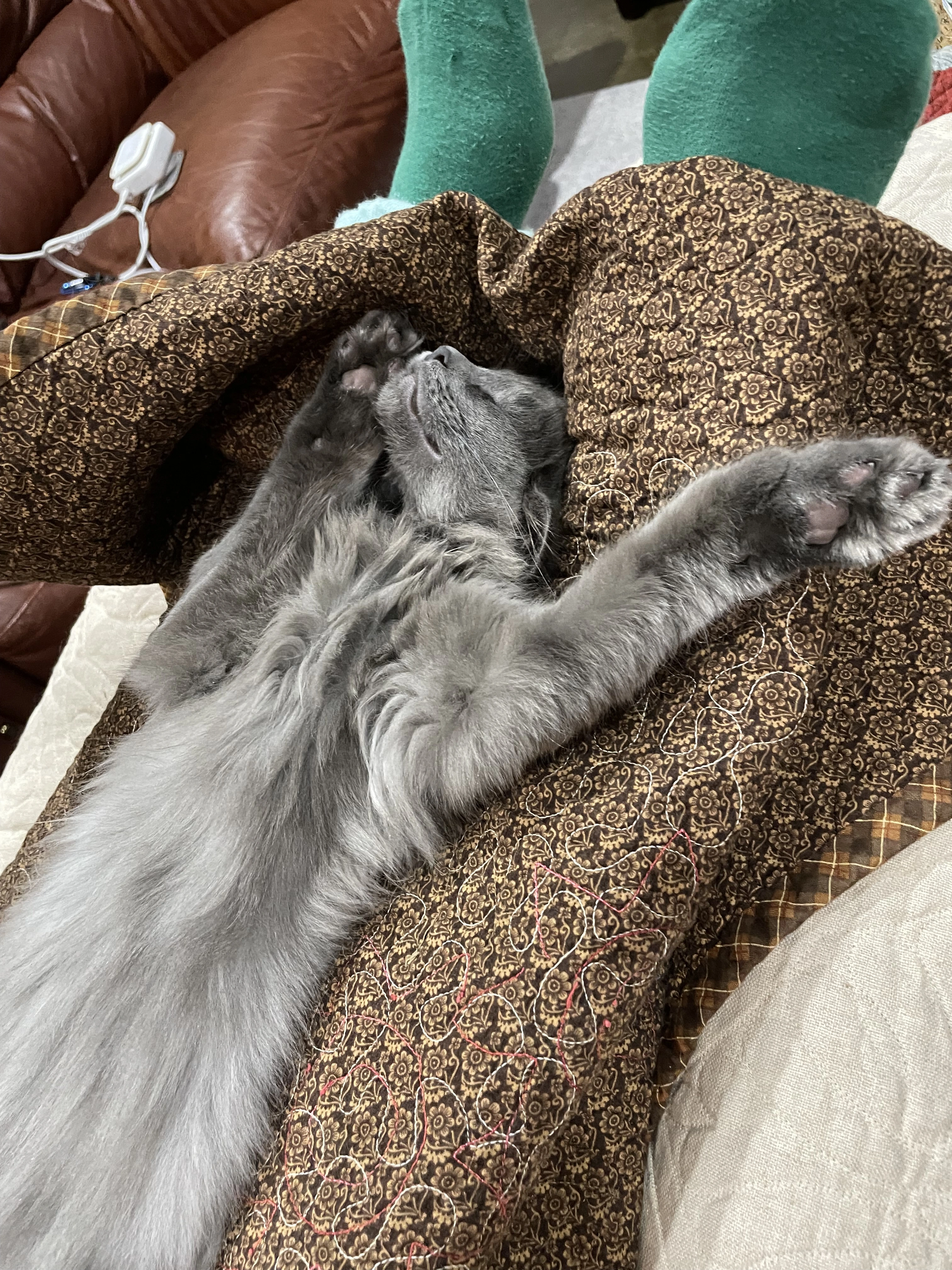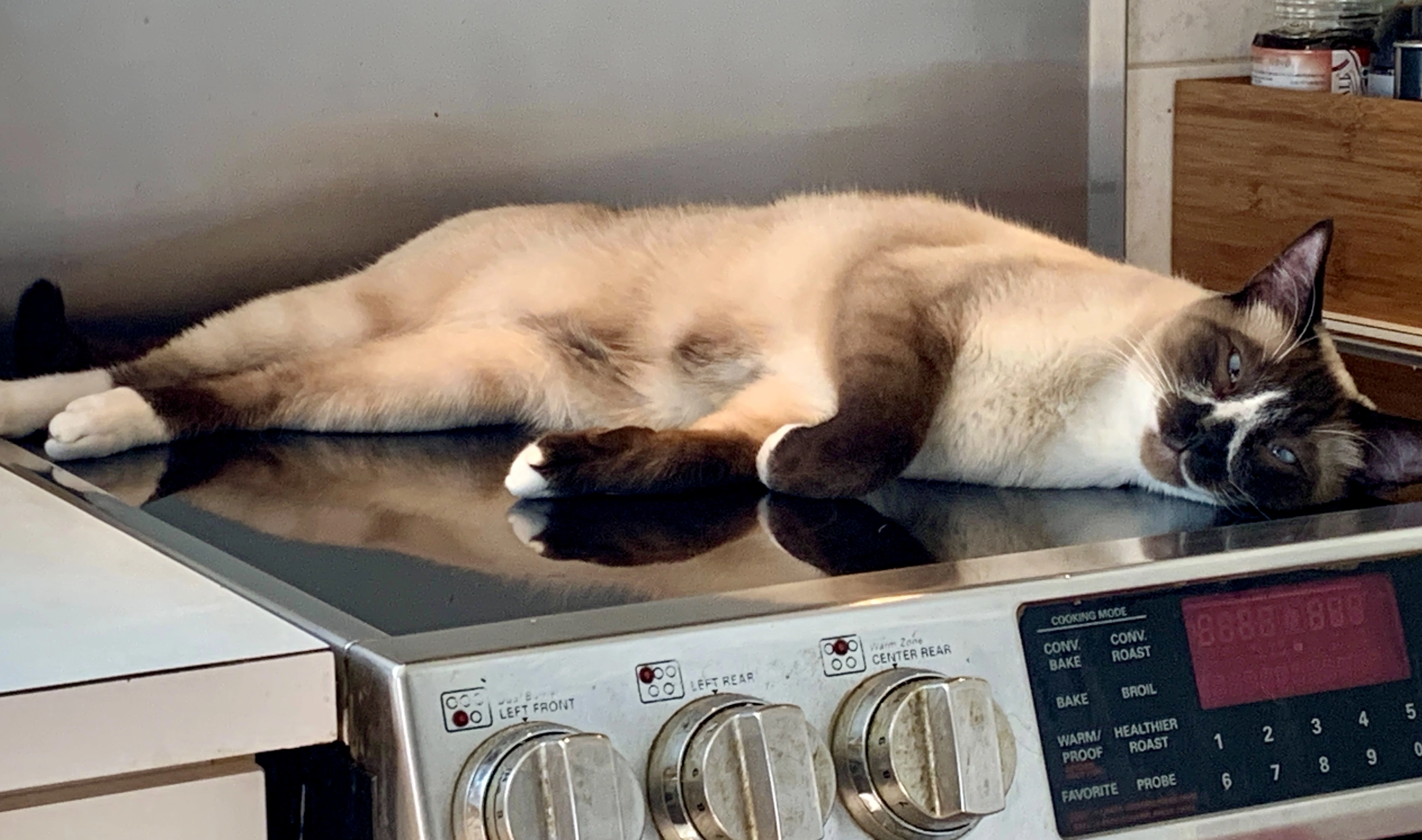 I gotta leave an area open when I’m preparing food as rock raccoon always needs to know what’s going on. Mind you he won’t eat human food he’s a pure kibble killer. I do brush him regularly but I’m sure I consume cat hair the way he watches me prepare food.