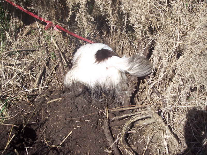 I'm not sure if I posted this one before. Dundee has made a practice of grabbing a shoe or sock of whoever is preparing to leave the house and running around with it. He has one of Mrs. ducs here.