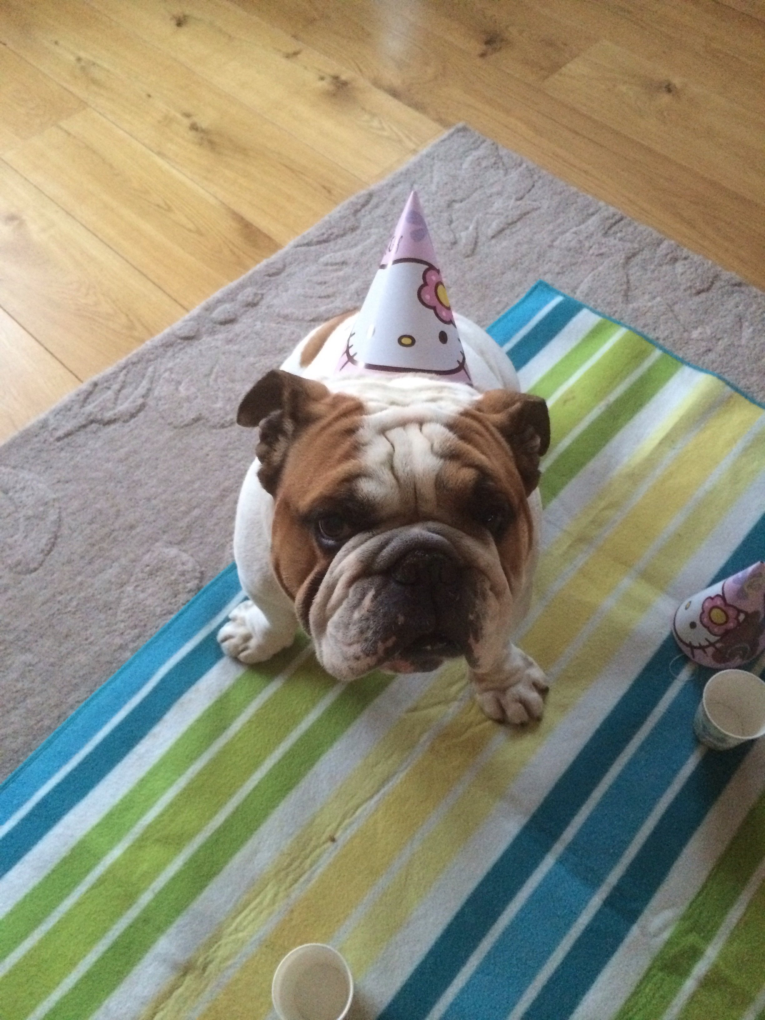 Posts 1,637 Likes 13,269 chunkythebulldog ·Jun 3, 2015 I could post pictures of Chunky all day long so here's a few to get going with Your name's not down you're not coming in. Chunky as bouncer at my housewarming party Celebrating his 7th birthday. Nice Hello Kitty party hat Guarding his new sister Hot under the collar in the Huddersfield sun