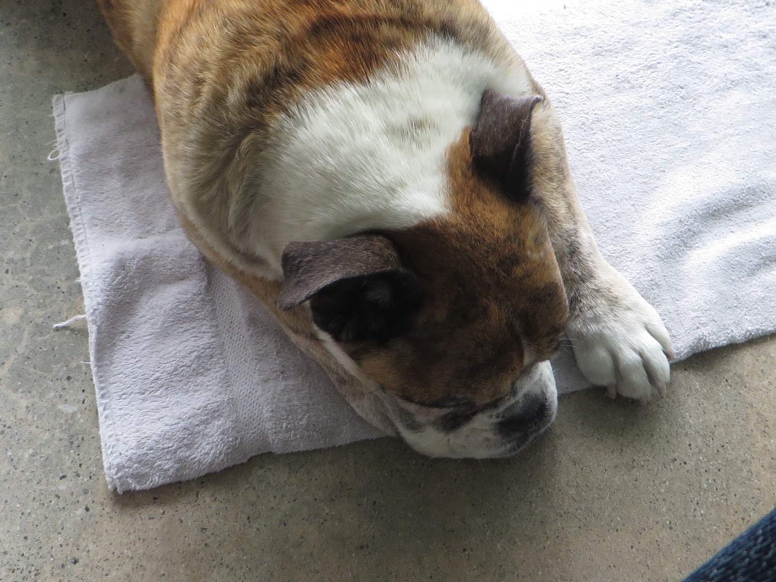 So after the major surgery last fall to correct the herniated disk in her neck, she had recovered and was mostly back to normal, but we noticed recently she had swollen lymph nodes, lack of energy, and loss of appetite. Checks of fluid drawn confirmed a type of lymphoma, so we had her into the vet again today to talk about the next steps. We decided to start her on the chemo today, so she is there getting her first course that will conclude in 25 weeks. At first it will be every week, then after 6 weeks it goes to treatments every 2 weeks.