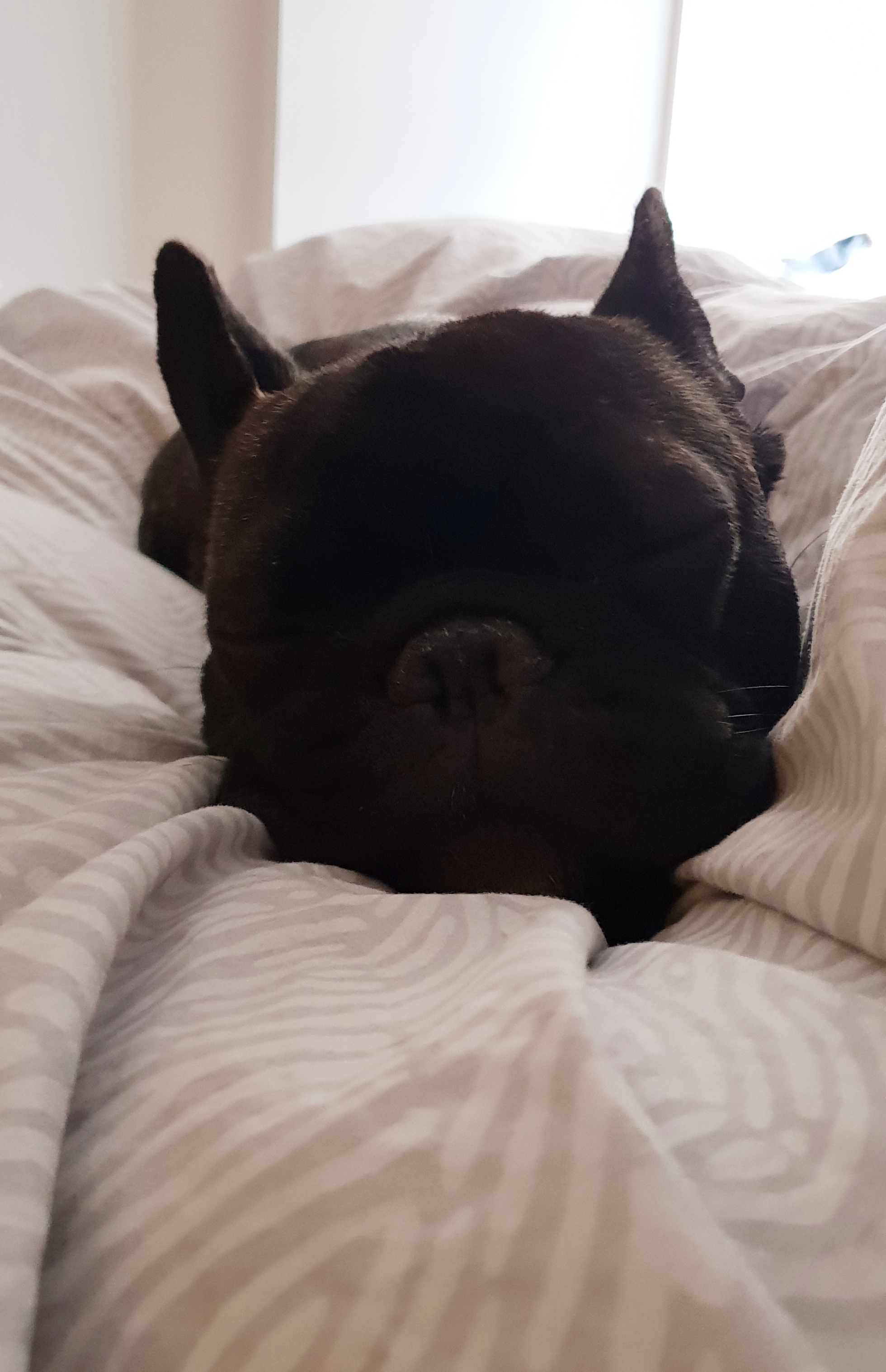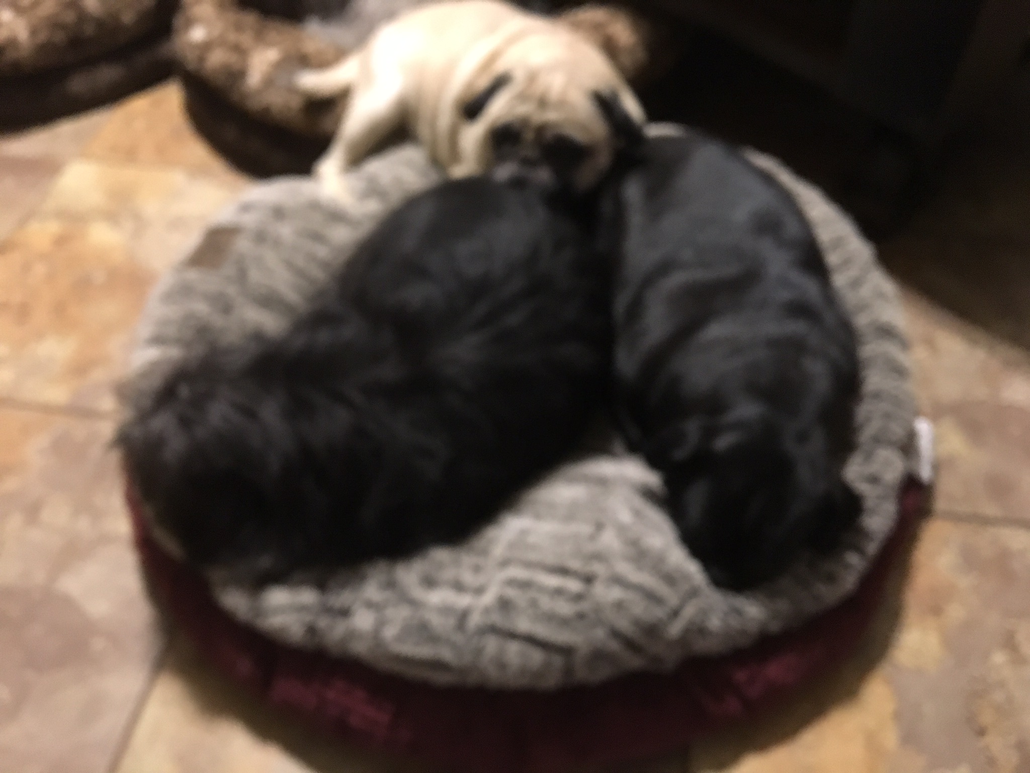 So we have 2 dogs...Remi is the grandson of Raven, and as you can see he's a cutie...snapped this because he doesn't normally sleep with his tongue out. 🥰