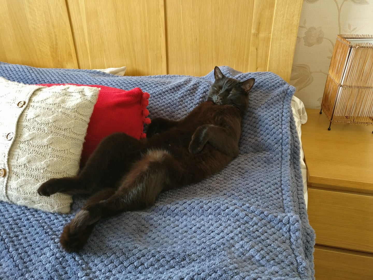 This is how I found our cat, Bernard, the other day after he had been out all night. This made me quite jealous as I was off to work 馃榿