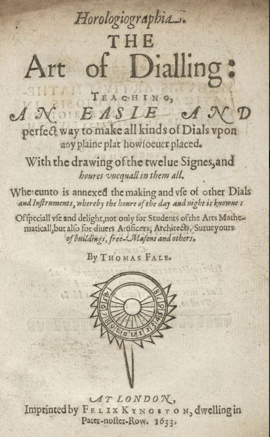 The Art of Dialling: teaching, an easie and perfect way to make all kinds of Dials upon any plaine plat howsoever placed. With the drawing of the twelve Signes, and houres unequall in them all. Whereunto is annexed the making and use of other Dials and Instruments, whereby the houre of the day and night is knowne: of speciall use and delight, not only for Students of the Arts Mathematicall, but also for divers Artificers, Architects, Surveyours of buildings, free-Masons and others.