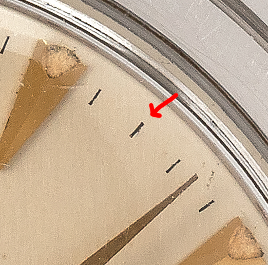 Furthermore, if you look at the outer ring of the minutes track near the 7 hour position, you can see the same thing.