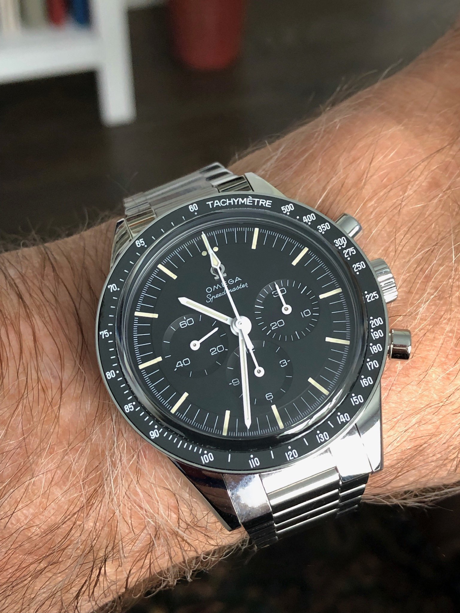 In particular I’d amplify that this watch has only become more aesthetically beautiful as it has settled into the collection. To the uninitiated, of course, most might never consciously register why this Speedmaster strikes a heightened look compared to a modern standard issue. But the “hot takes” offered in this and similar threads regarding the aesthetic nuances (dial depth, truly straight lugged case, the just-so coloration of lume, length of hash marks, etc.) all come together to achieve a fit, finish and overall aesthetic that isn’t matched by anything else in at least my collection or that I can think of seeing in the flesh.