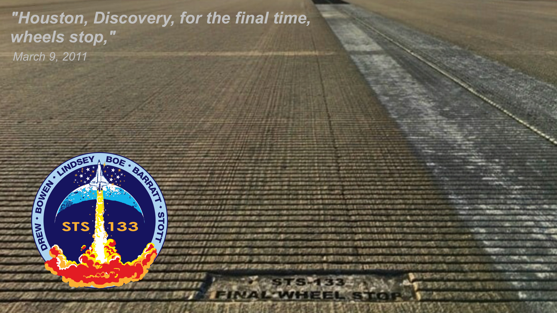 “Houston, Discovery, for the final time, wheels stop,”