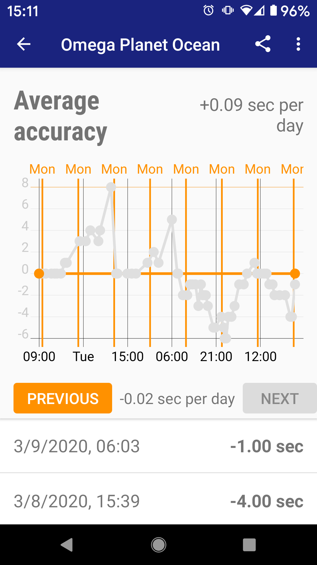 My Planet Ocean LMLE runs anywhere between -1 to +2 sec/day
