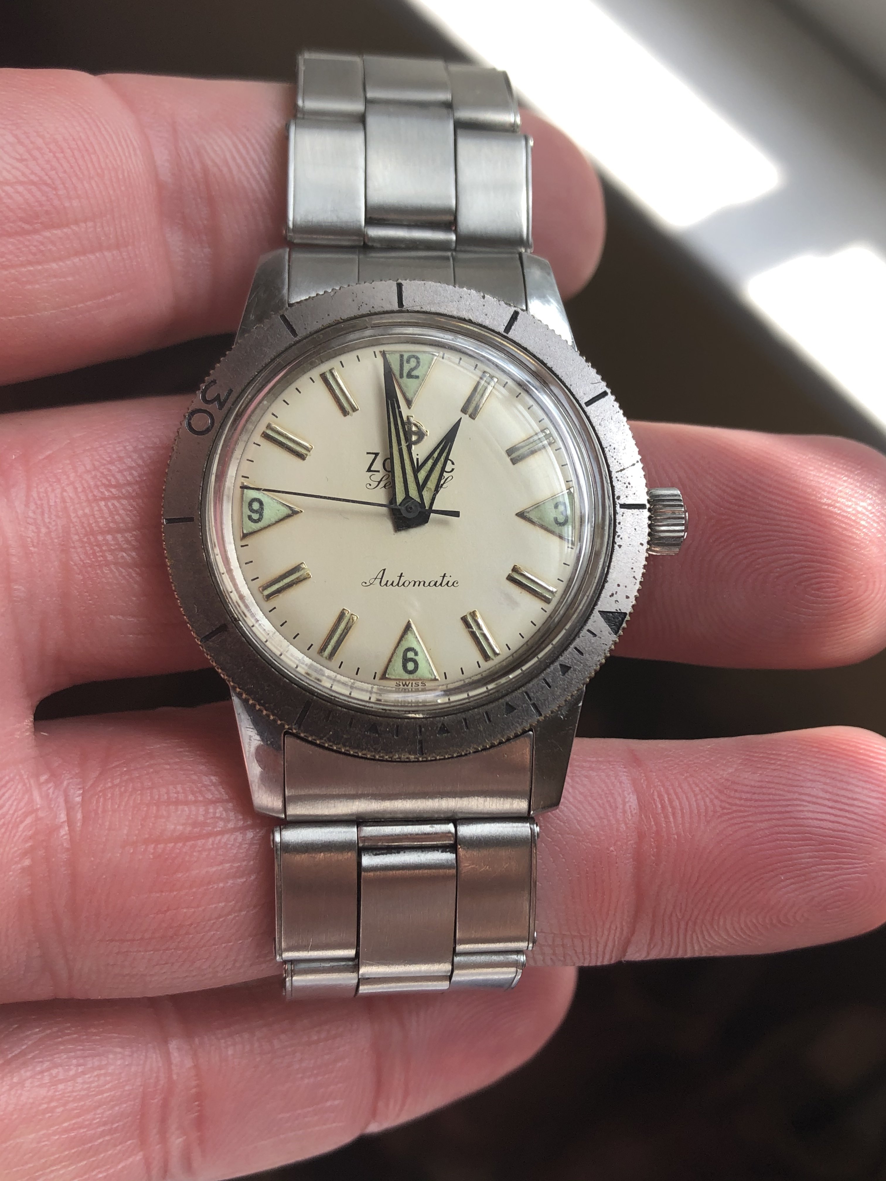 路路schizophrenic pizza orderer and watch collectorMost vintage omegas with radium lumes are not waterproof. That means the seal isn't air tight. This means stuff can get into the watch... and stuff can get out.