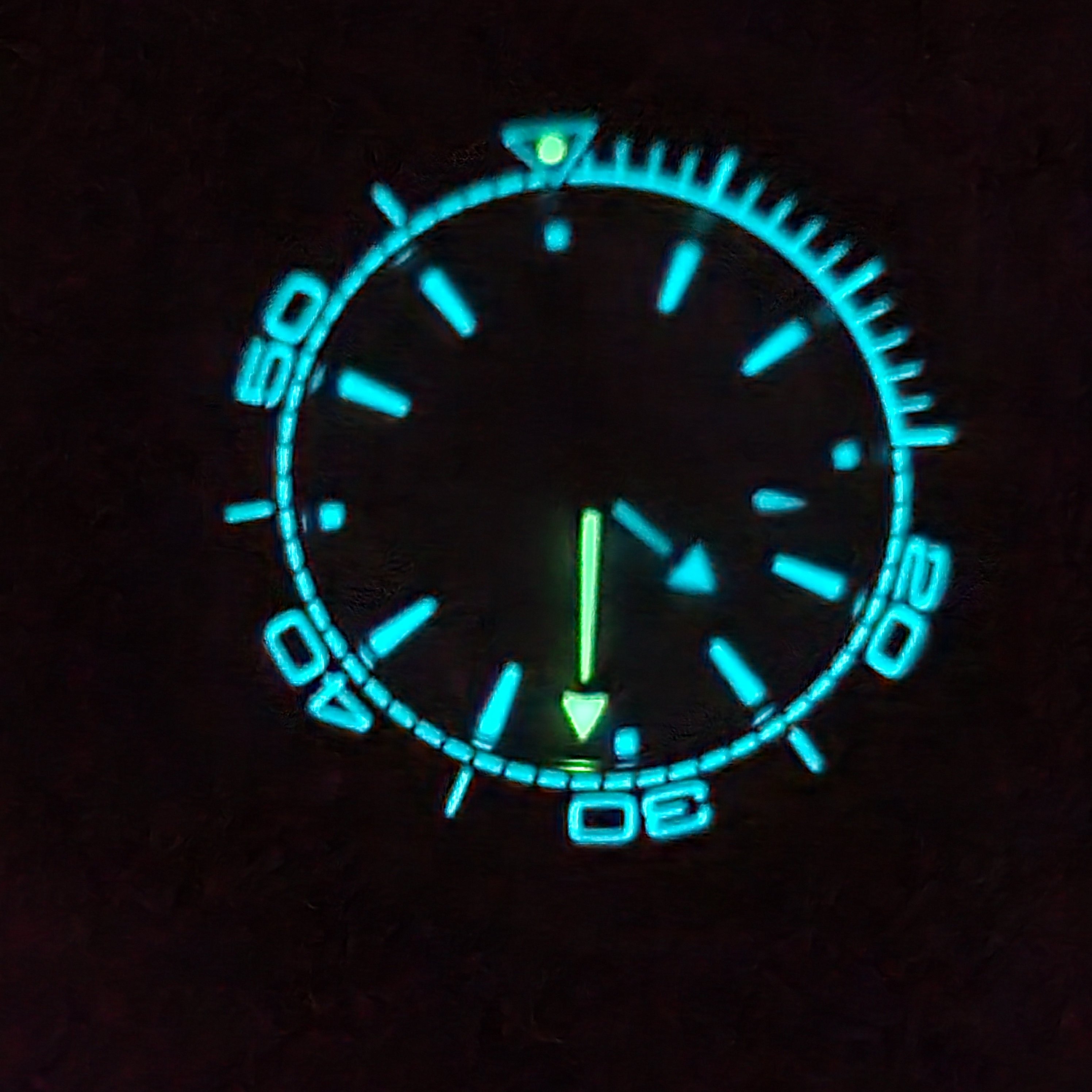 - Symmetrical bezel with readable minute divisions (rather than the inverted style) and luminous.