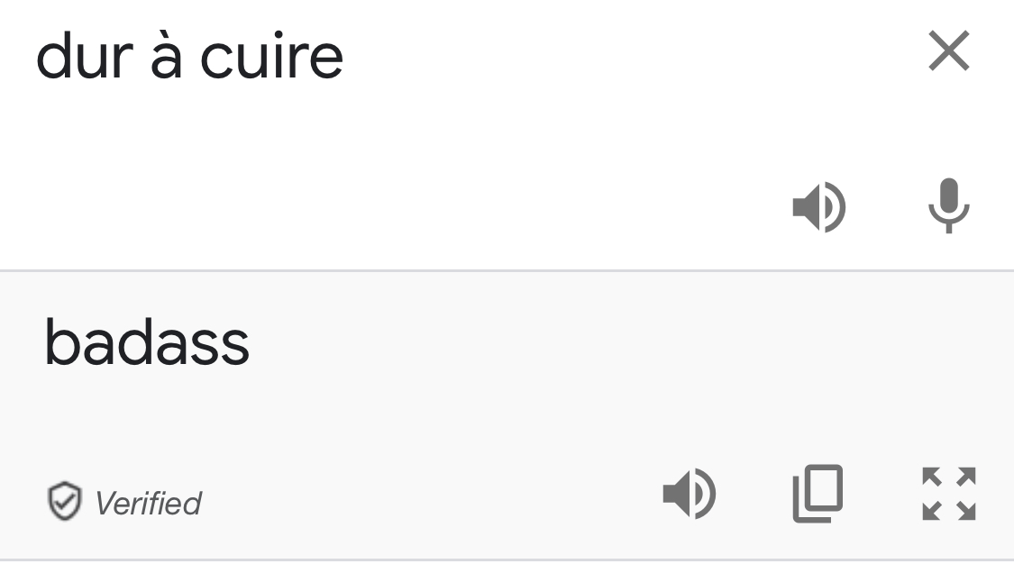 User name. Play on words. Dur à Cuire is French and Google translates it to Badass.