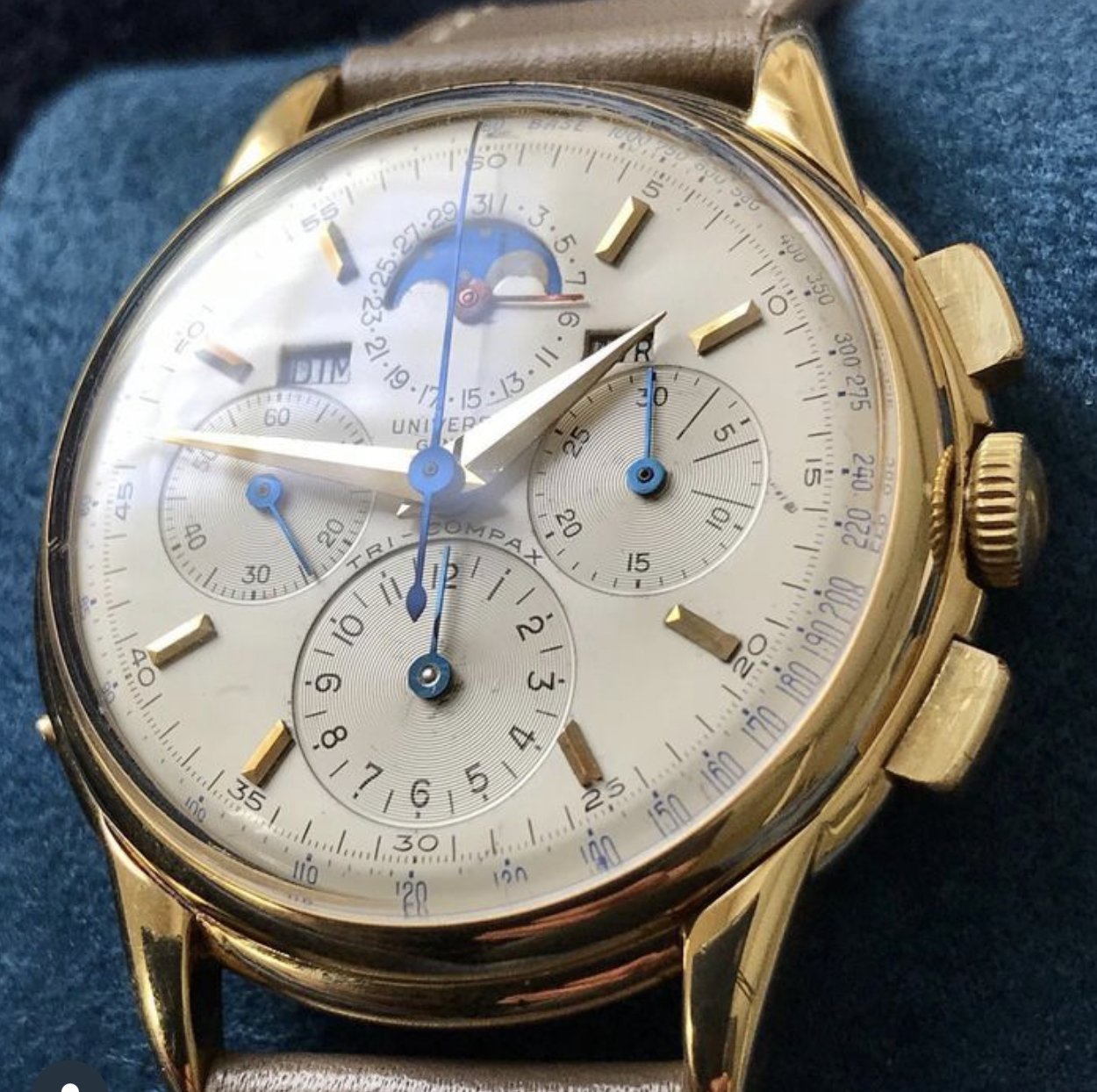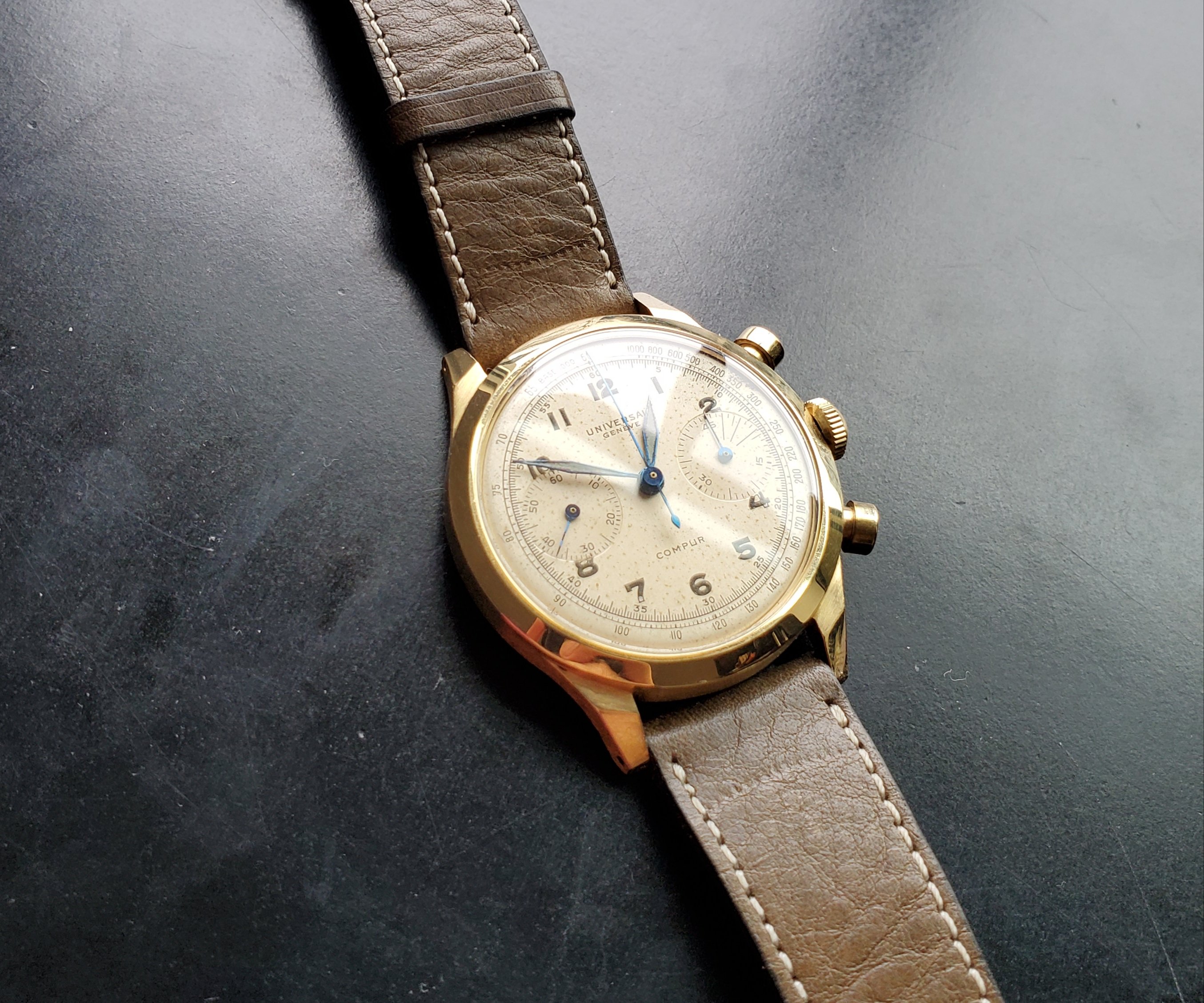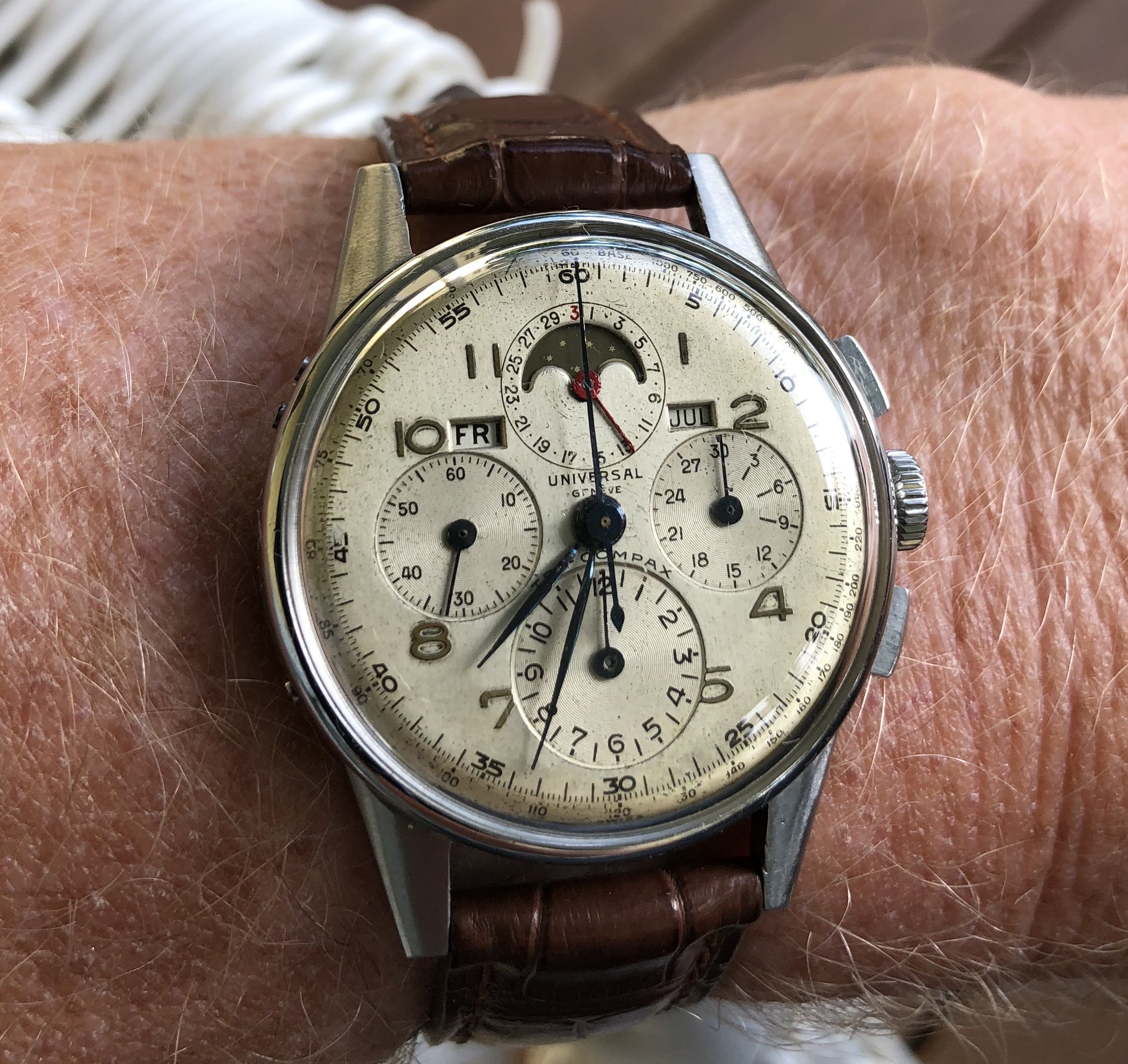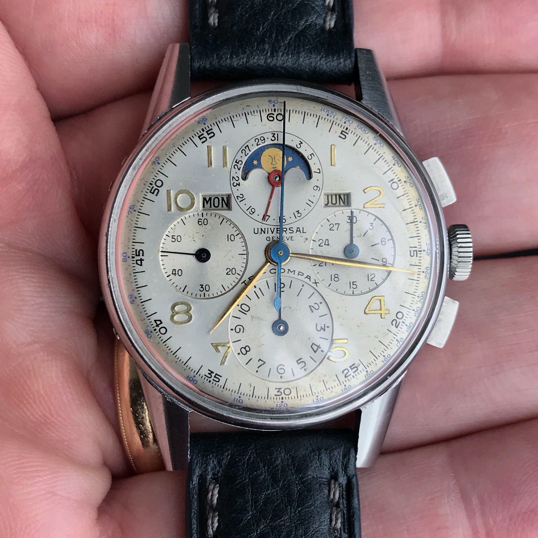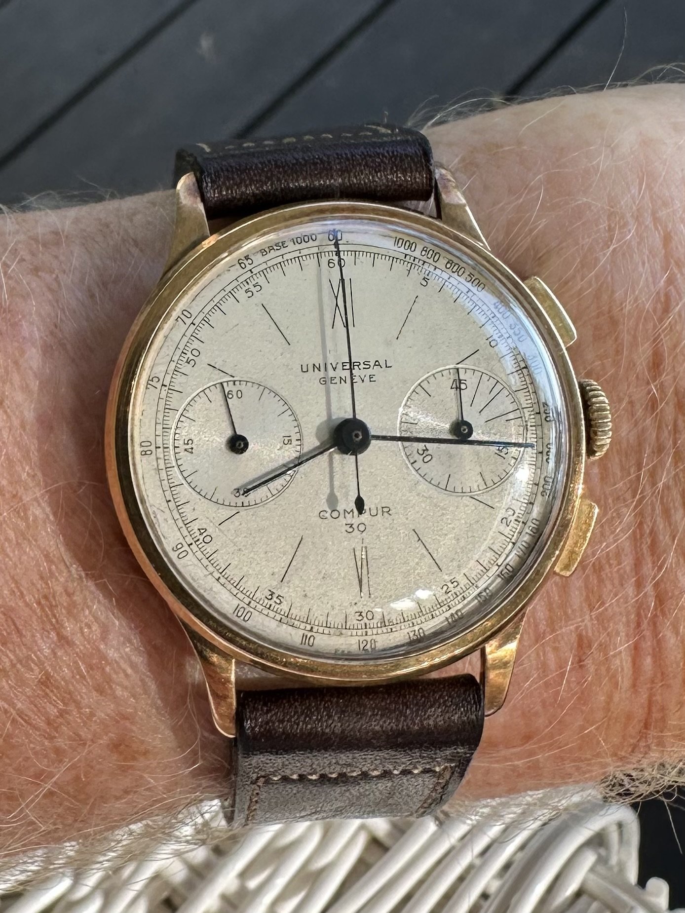 My story is a tale of three watches and begins on a lovely September afternoon in 2015, in the Paris 7th winding down after a week of business. Post lunch and a bottle of wine, a colleague took me to his brother’s vintage shop where in his window were two 40’s TriCompax. I immediately asked to see them. I was enthralled by their complexity and style. To this point I had not paid much attention to Vintage save Rolex and Speedmaster. I immediately inquired about purchasing one and he flatly refused to sell them to me. “You cannot get them serviced in the States” said he. After hanging round the shop I managed to pry my 2998-6 from him with a friends and family discount. My first vintage…but UG had set its hooks.