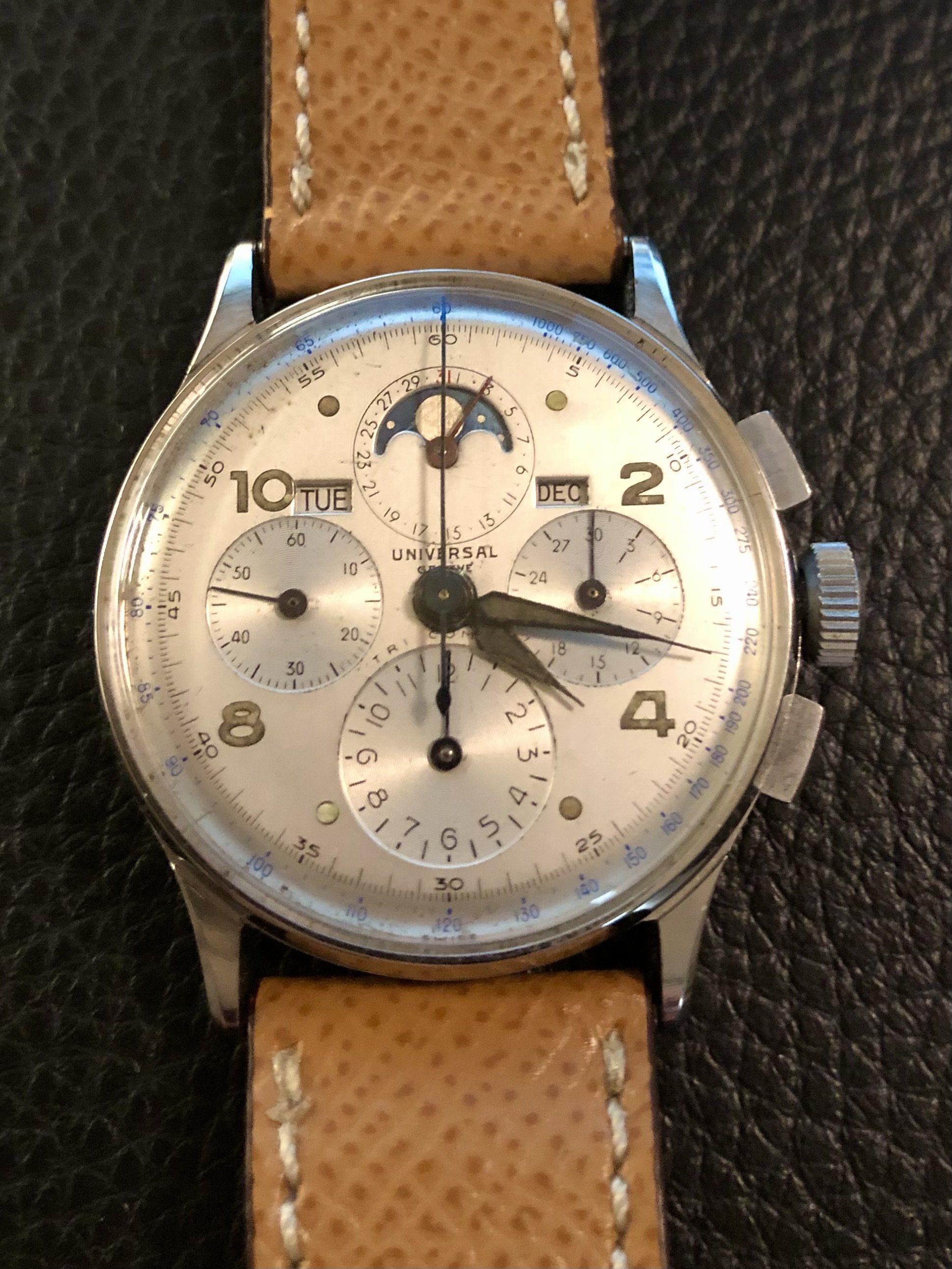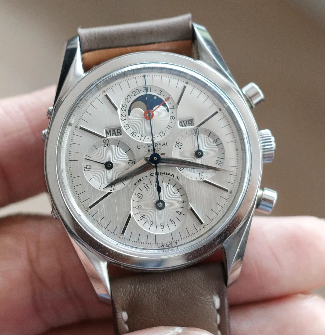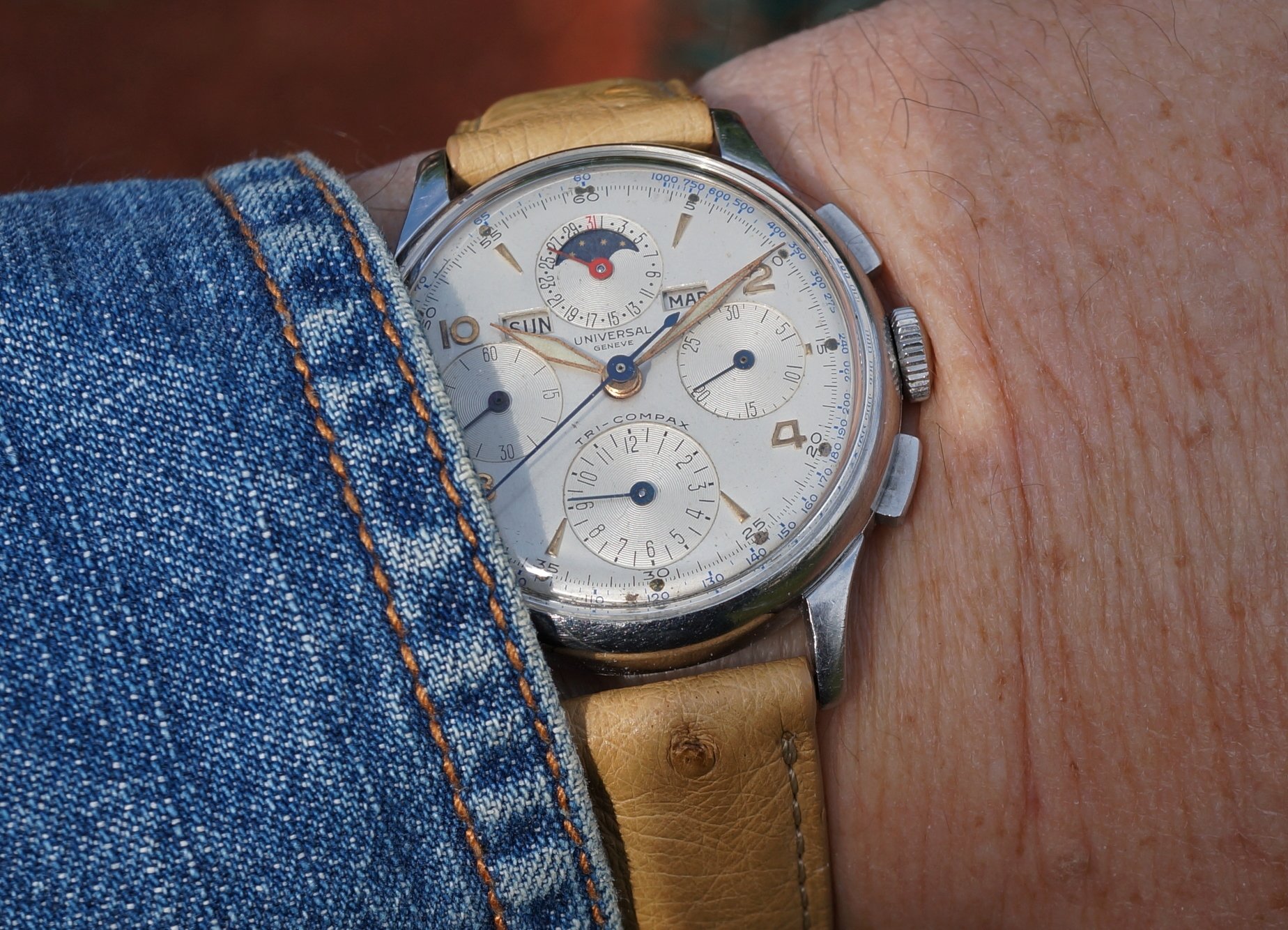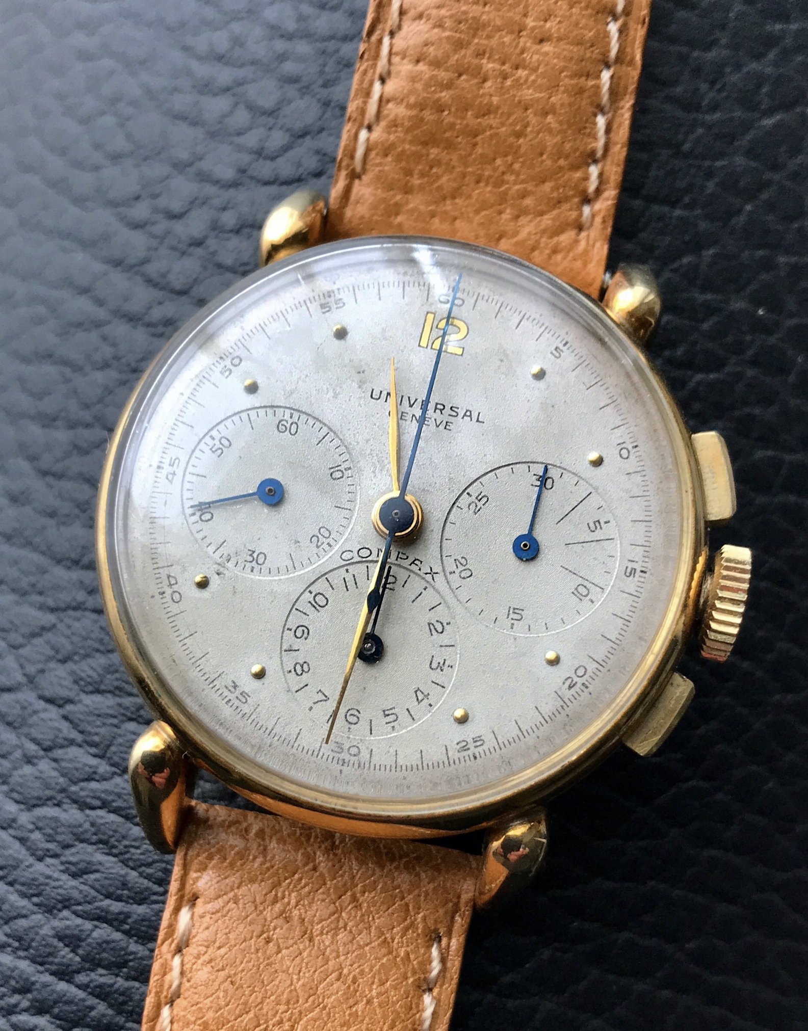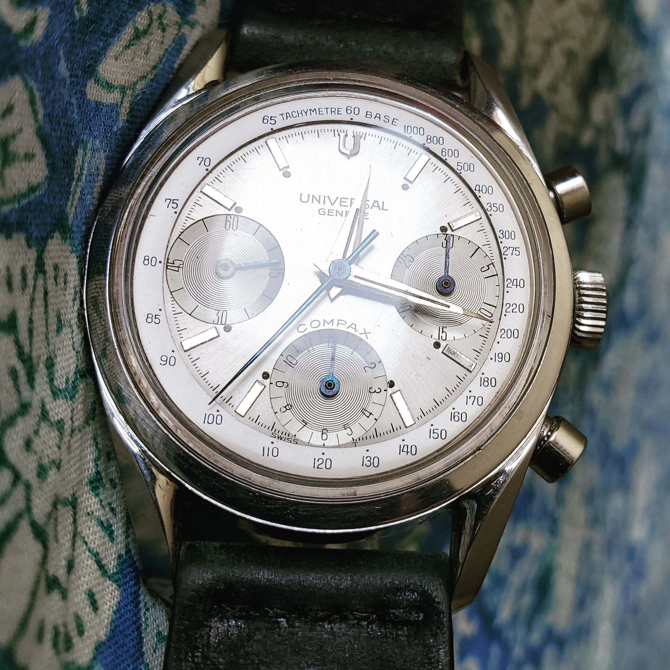 My story is a tale of three watches and begins on a lovely September afternoon in 2015, in the Paris 7th winding down after a week of business. Post lunch and a bottle of wine, a colleague took me to his brother’s vintage shop where in his window were two 40’s TriCompax. I immediately asked to see them. I was enthralled by their complexity and style. To this point I had not paid much attention to Vintage save Rolex and Speedmaster. I immediately inquired about purchasing one and he flatly refused to sell them to me. “You cannot get them serviced in the States” said he. After hanging round the shop I managed to pry my 2998-6 from him with a friends and family discount. My first vintage…but UG had set its hooks.