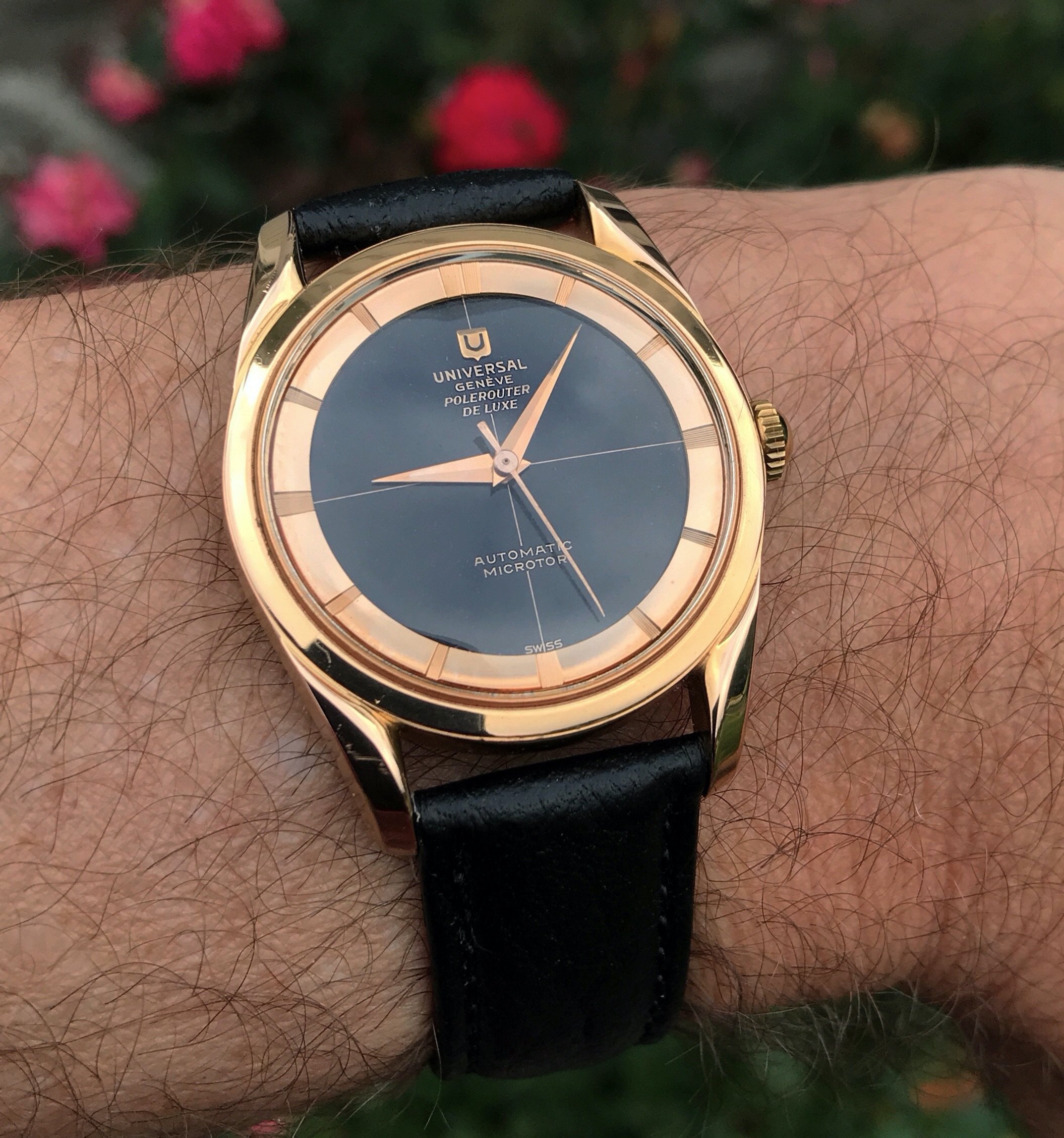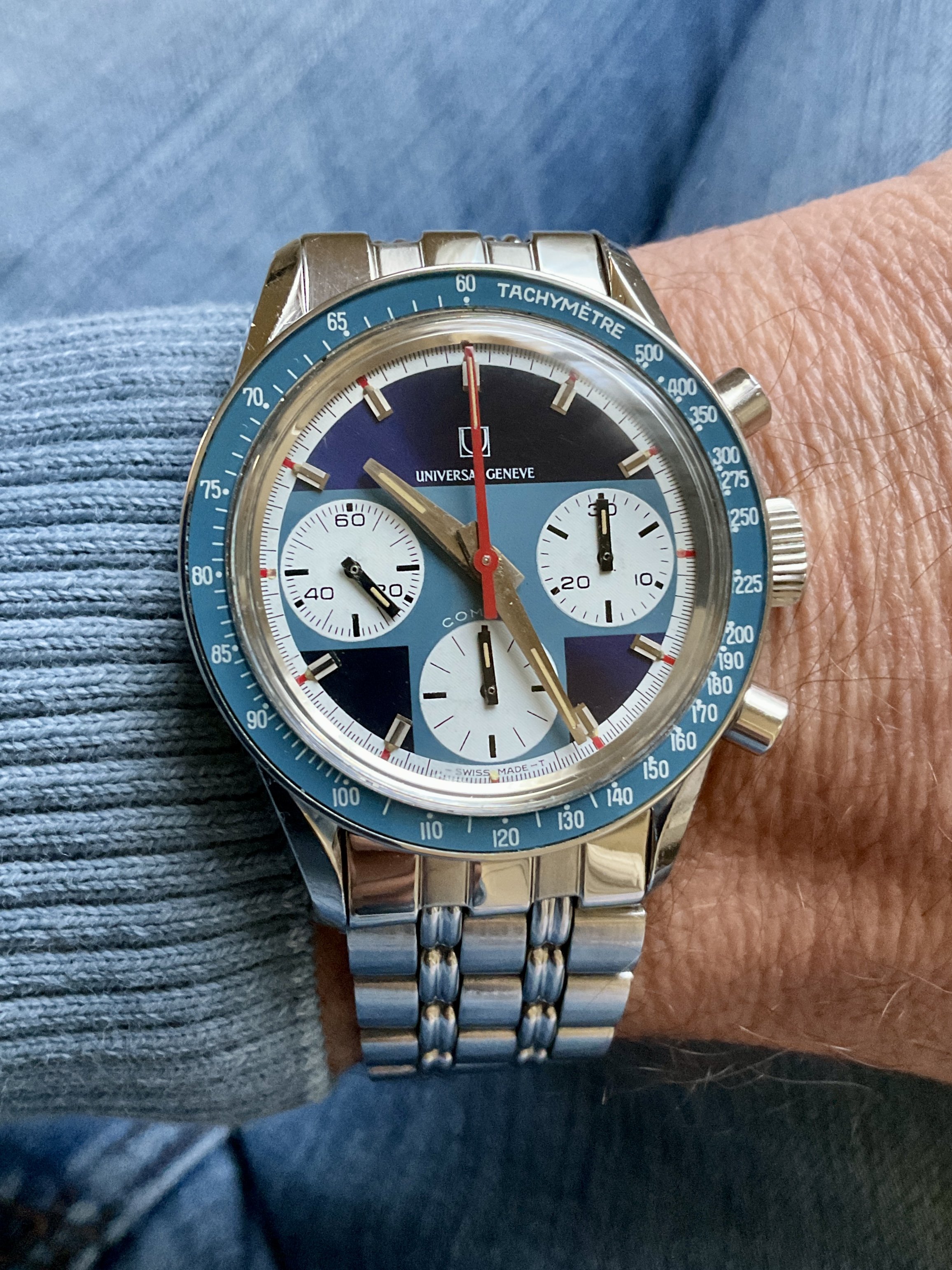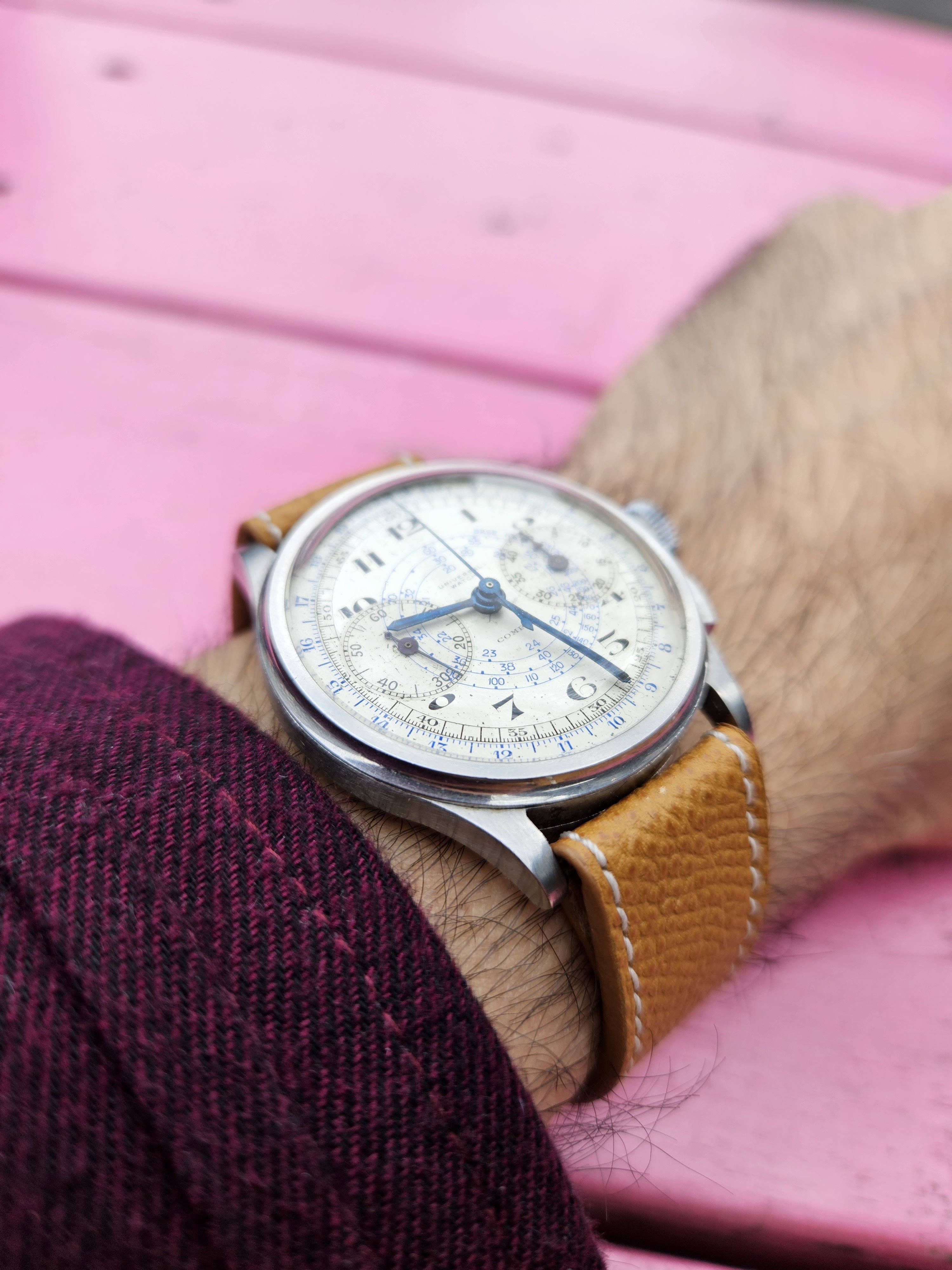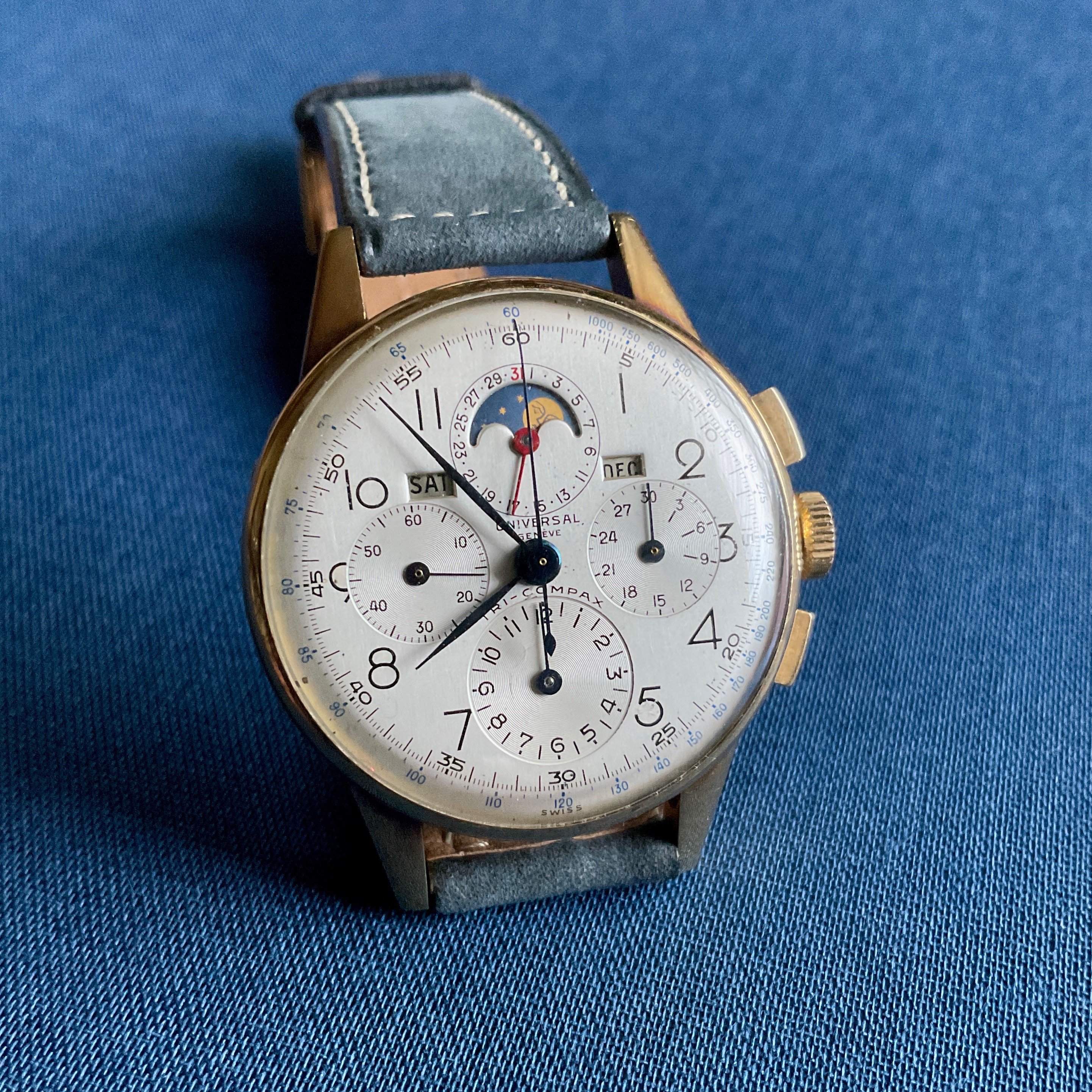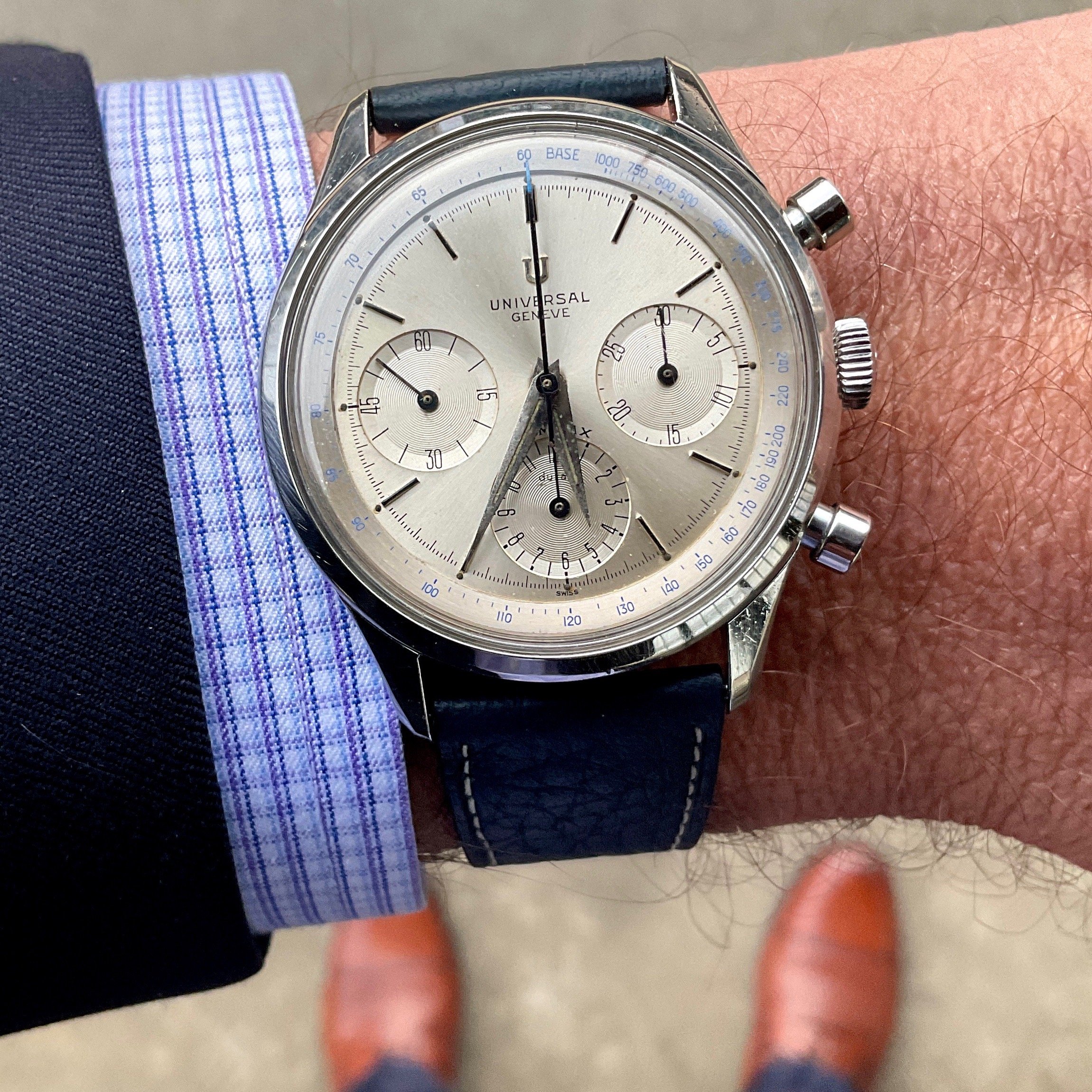 My story is a tale of three watches and begins on a lovely September afternoon in 2015, in the Paris 7th winding down after a week of business. Post lunch and a bottle of wine, a colleague took me to his brother’s vintage shop where in his window were two 40’s TriCompax. I immediately asked to see them. I was enthralled by their complexity and style. To this point I had not paid much attention to Vintage save Rolex and Speedmaster. I immediately inquired about purchasing one and he flatly refused to sell them to me. “You cannot get them serviced in the States” said he. After hanging round the shop I managed to pry my 2998-6 from him with a friends and family discount. My first vintage…but UG had set its hooks.