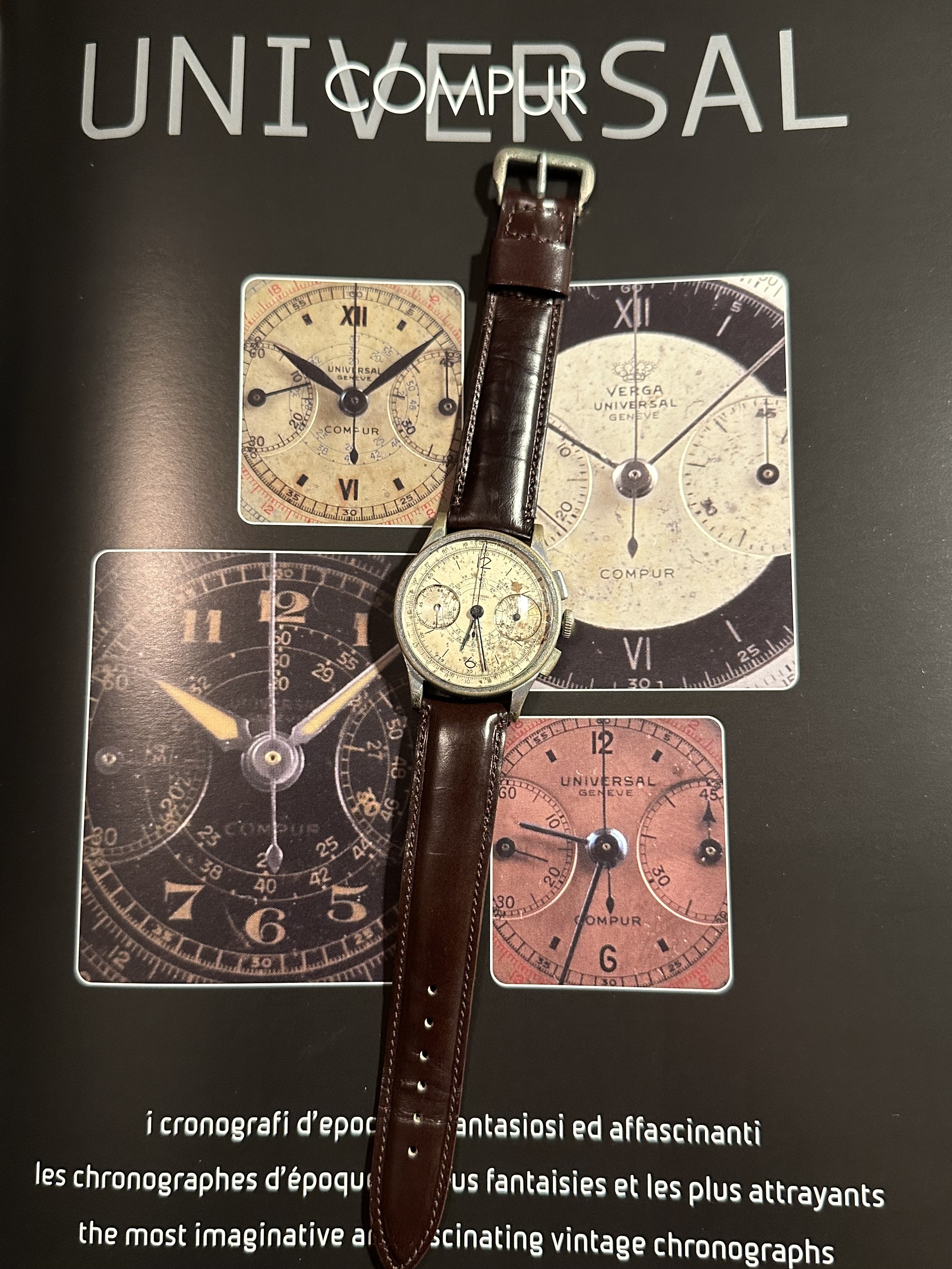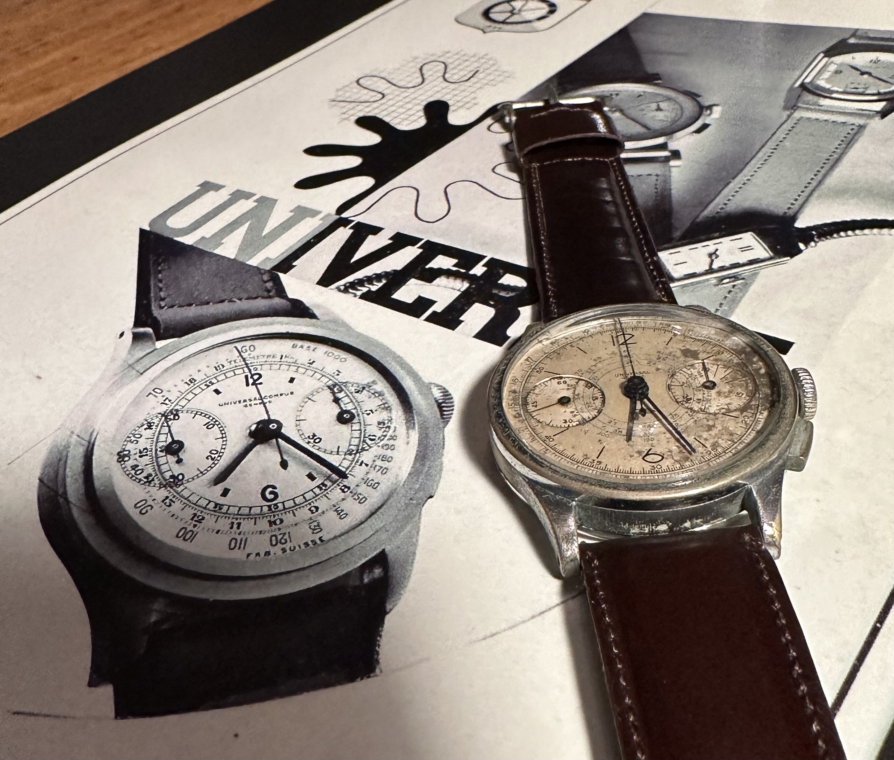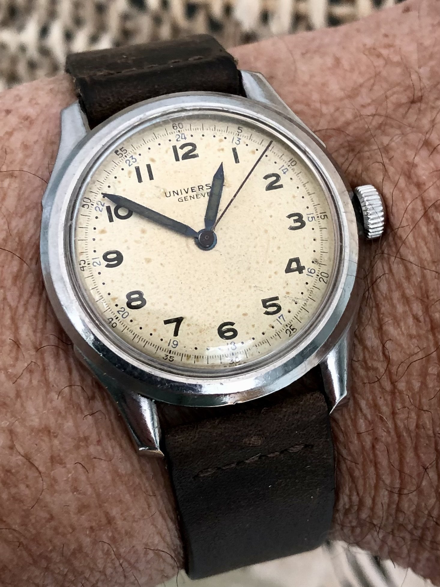 Hodinkee was giving the bounce to a very nice film Compax up for auction. The writer (I paraphrase) ) said that UG is mainly known for their chronographs and designs from the 40’s and 50’s and that few are talking about them these days. Fighting words, especially coming from the Dink who relentlessly pumped the brand back in the day, …so let’s talk about how we came to appreciate the brand.