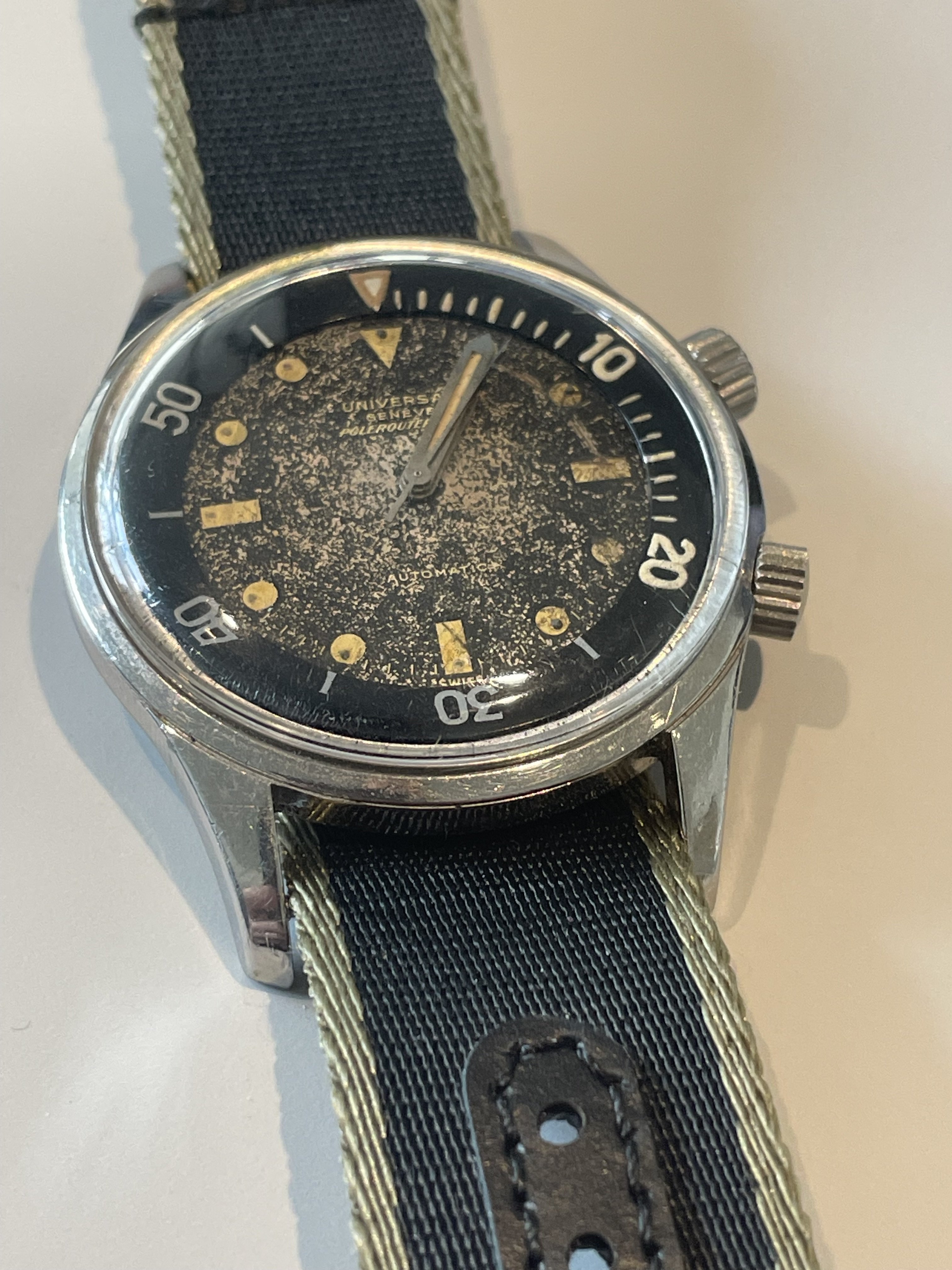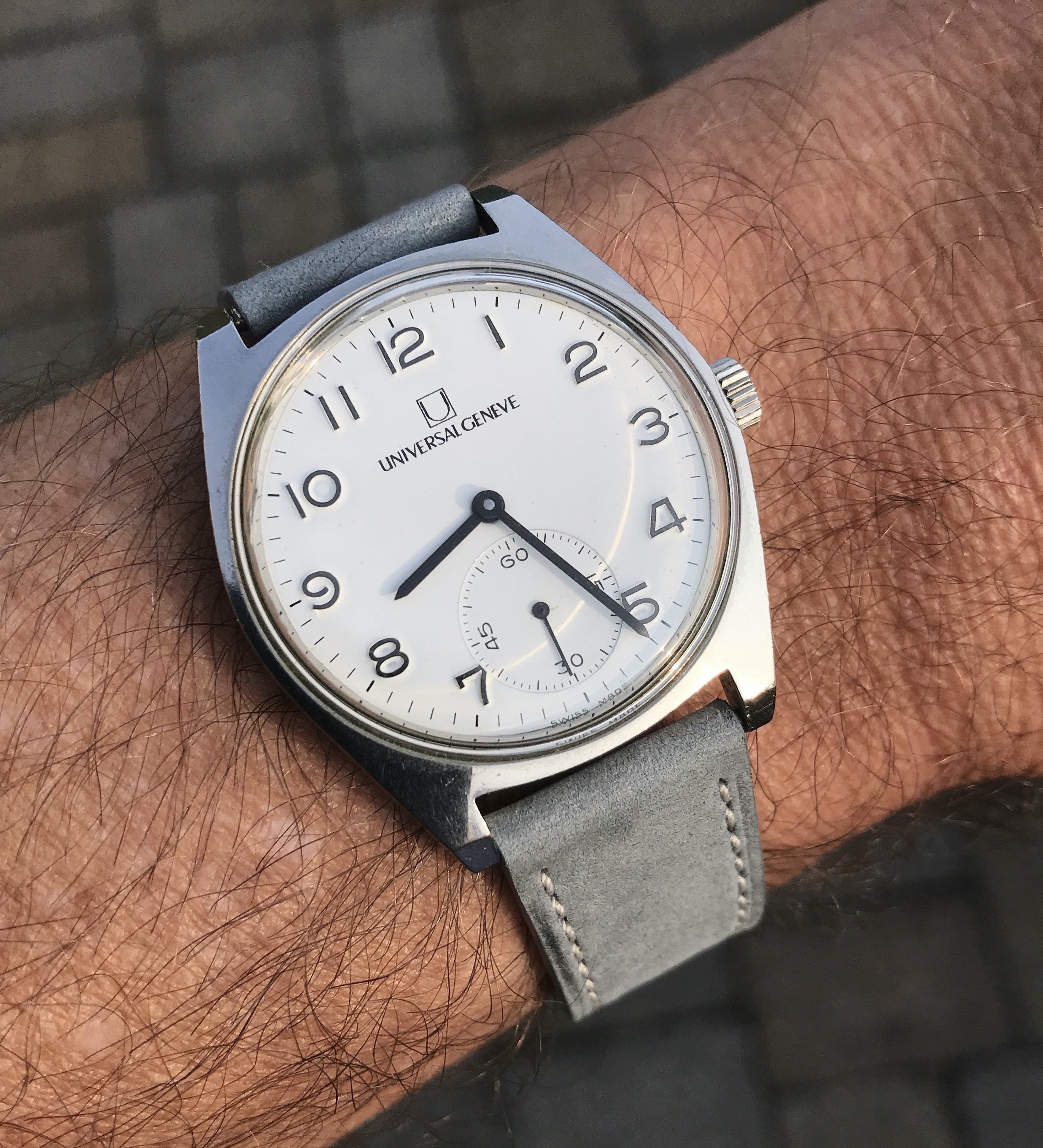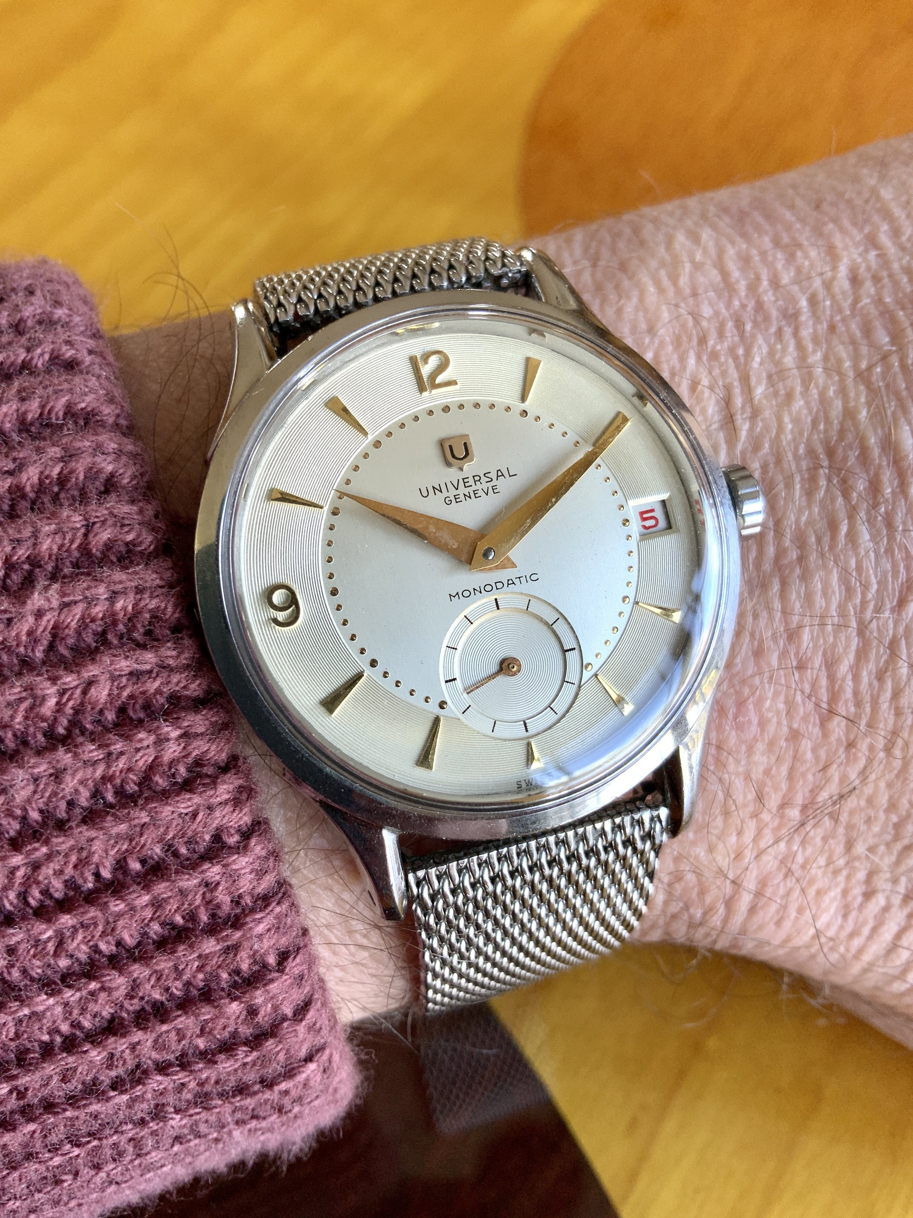 Hodinkee was giving the bounce to a very nice film Compax up for auction. The writer (I paraphrase) ) said that UG is mainly known for their chronographs and designs from the 40’s and 50’s and that few are talking about them these days. Fighting words, especially coming from the Dink who relentlessly pumped the brand back in the day, …so let’s talk about how we came to appreciate the brand.