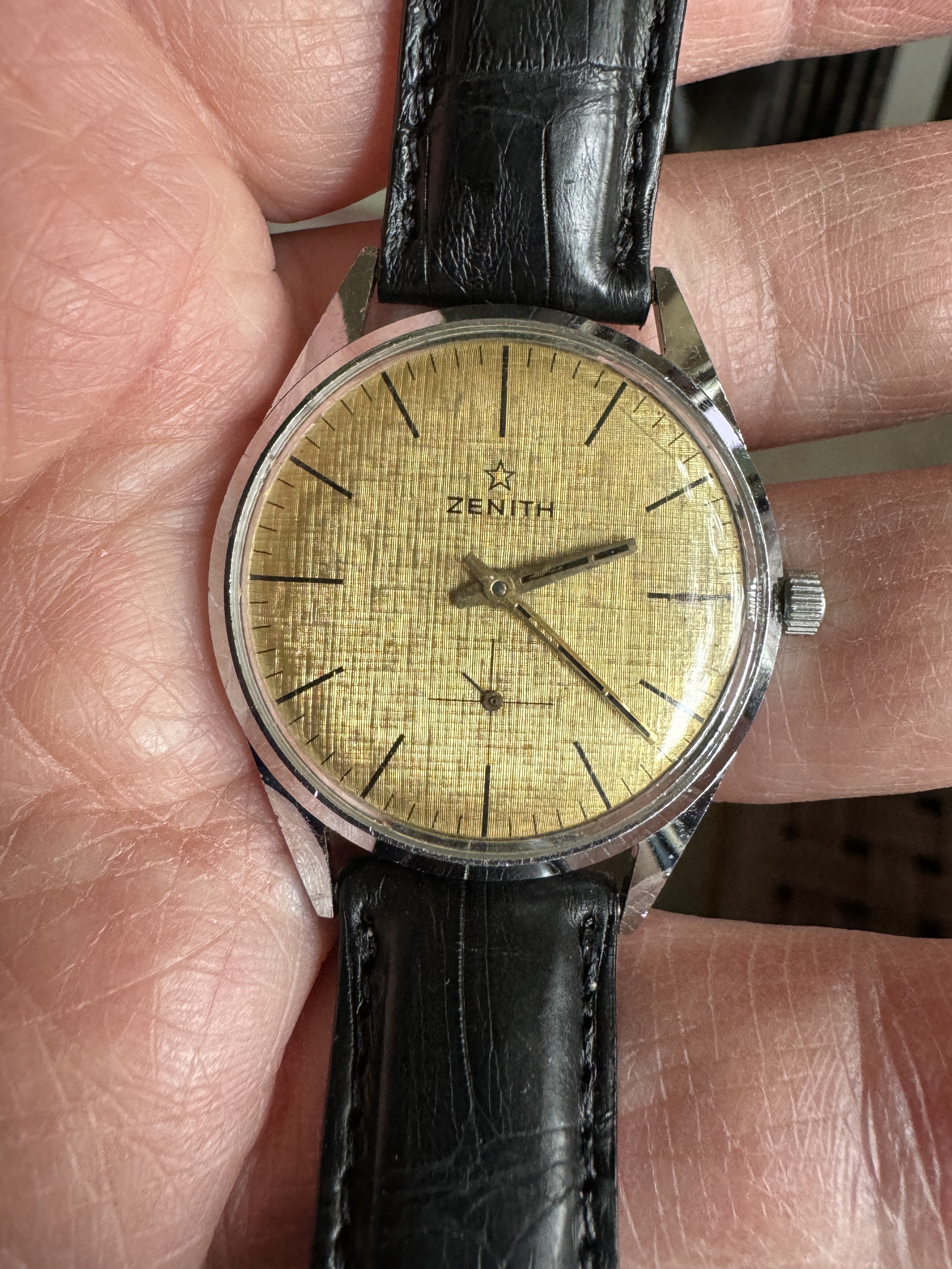He got it home, got some other photos, and called his dad to tell him about this crazy watch find. His dad, a retired manager at an enormous petrochemical refinery and decidedly NOT a watch guy, said “what brand is it? You know what, my parents gave me a watch from them years ago. I think I still have it, I’ll text you a photo when I find it.” He found it in his sock drawer, and sent this picture: